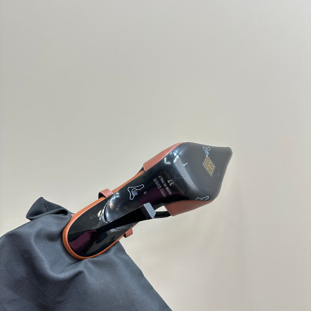 SL JEANNE SLINGBACK PUMPS BRICK CALFSKIN