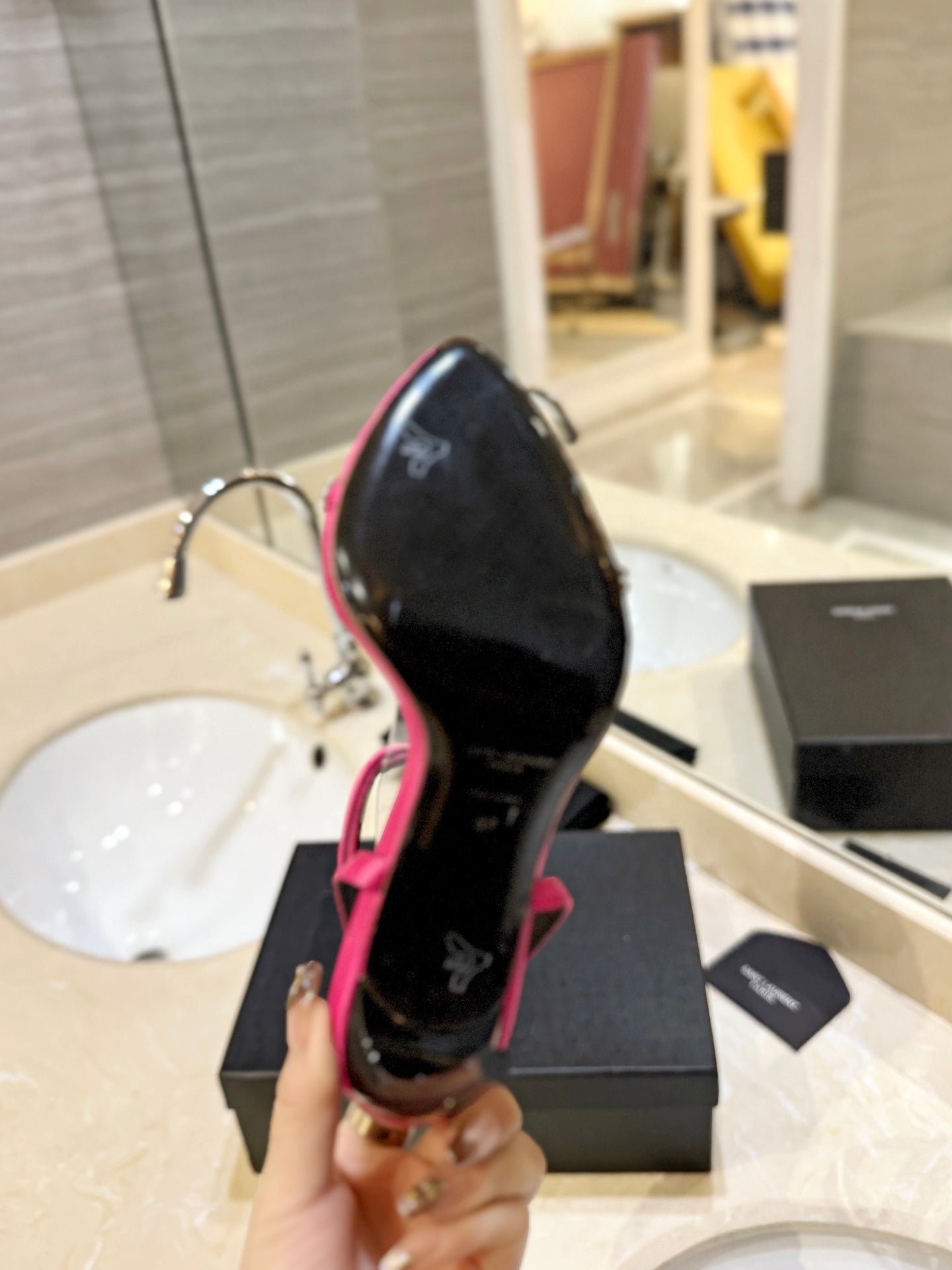 SL RHINESTONE HEELED SANDALS BRIGHT PINK SATIN
