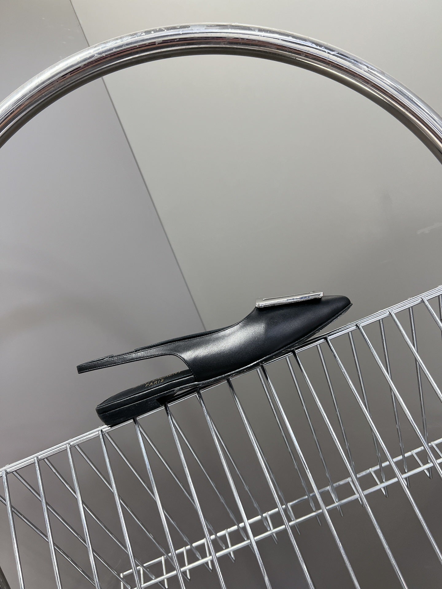 SL SQUARE BUCKLE SLINGBACK BLACK CALFSKIN