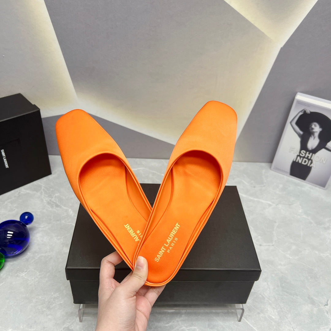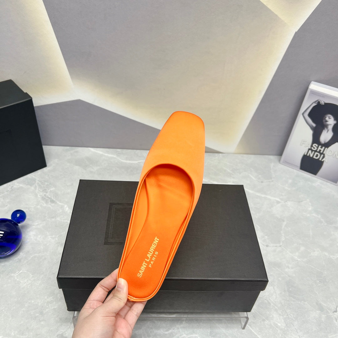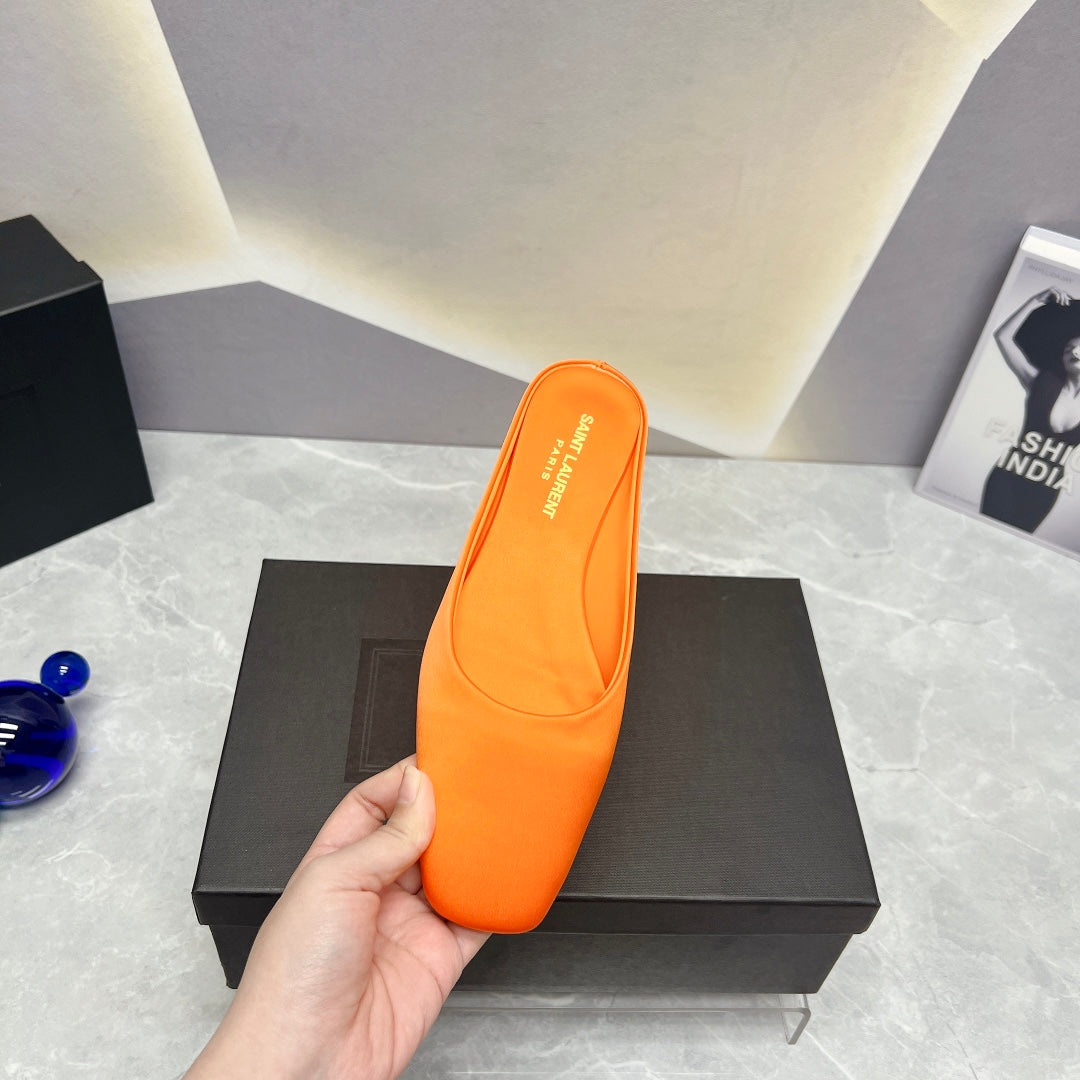 SL SQUARE TOE FLAT MULES TIGER SATIN