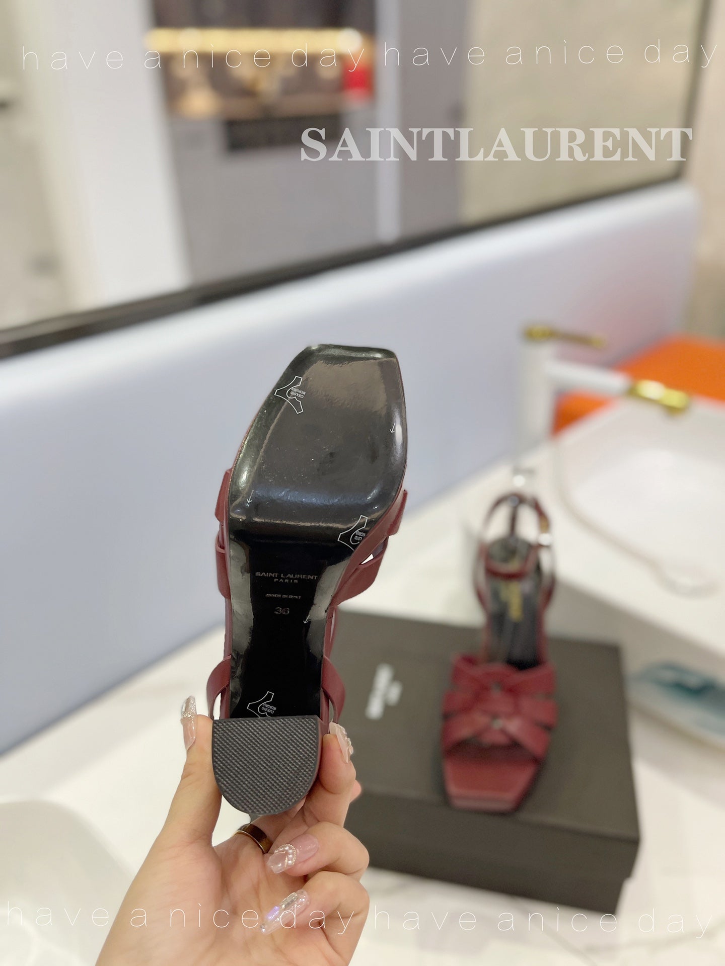 SL TRIBUTE FLATFORM SANDALS BERRY CALFSKIN