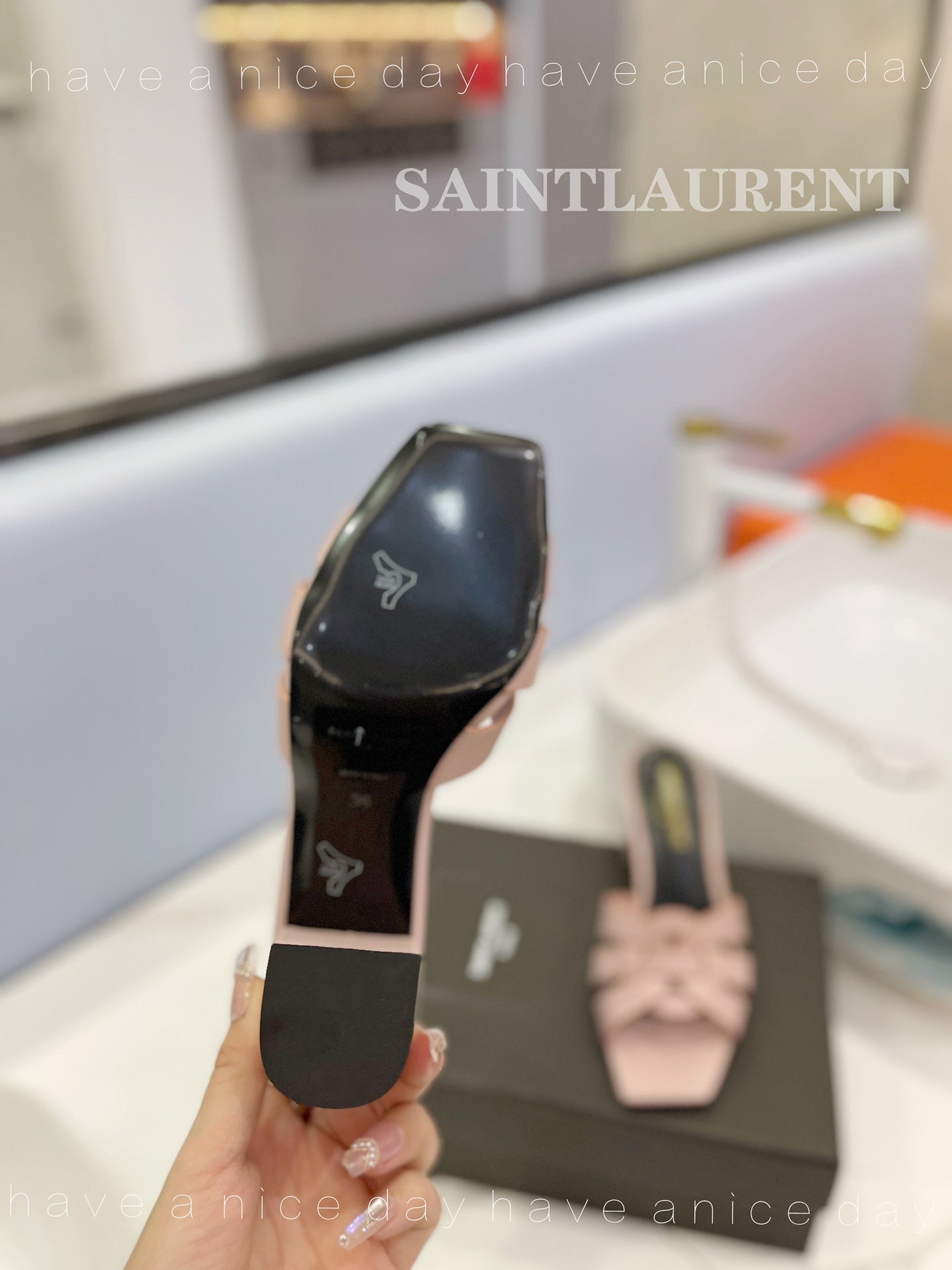 SL TRIBUTE MULES PASTEL PINK CALFSKIN