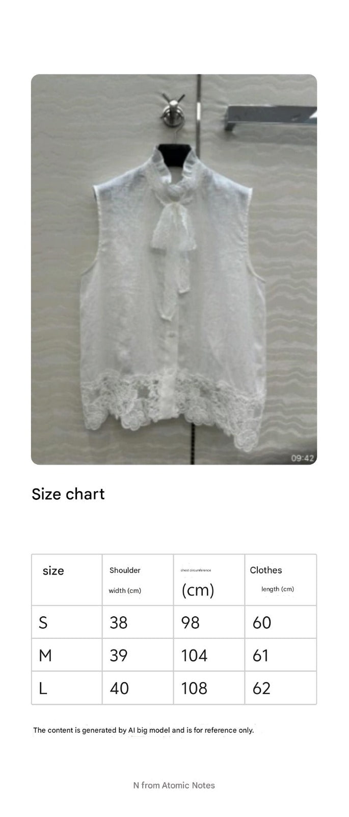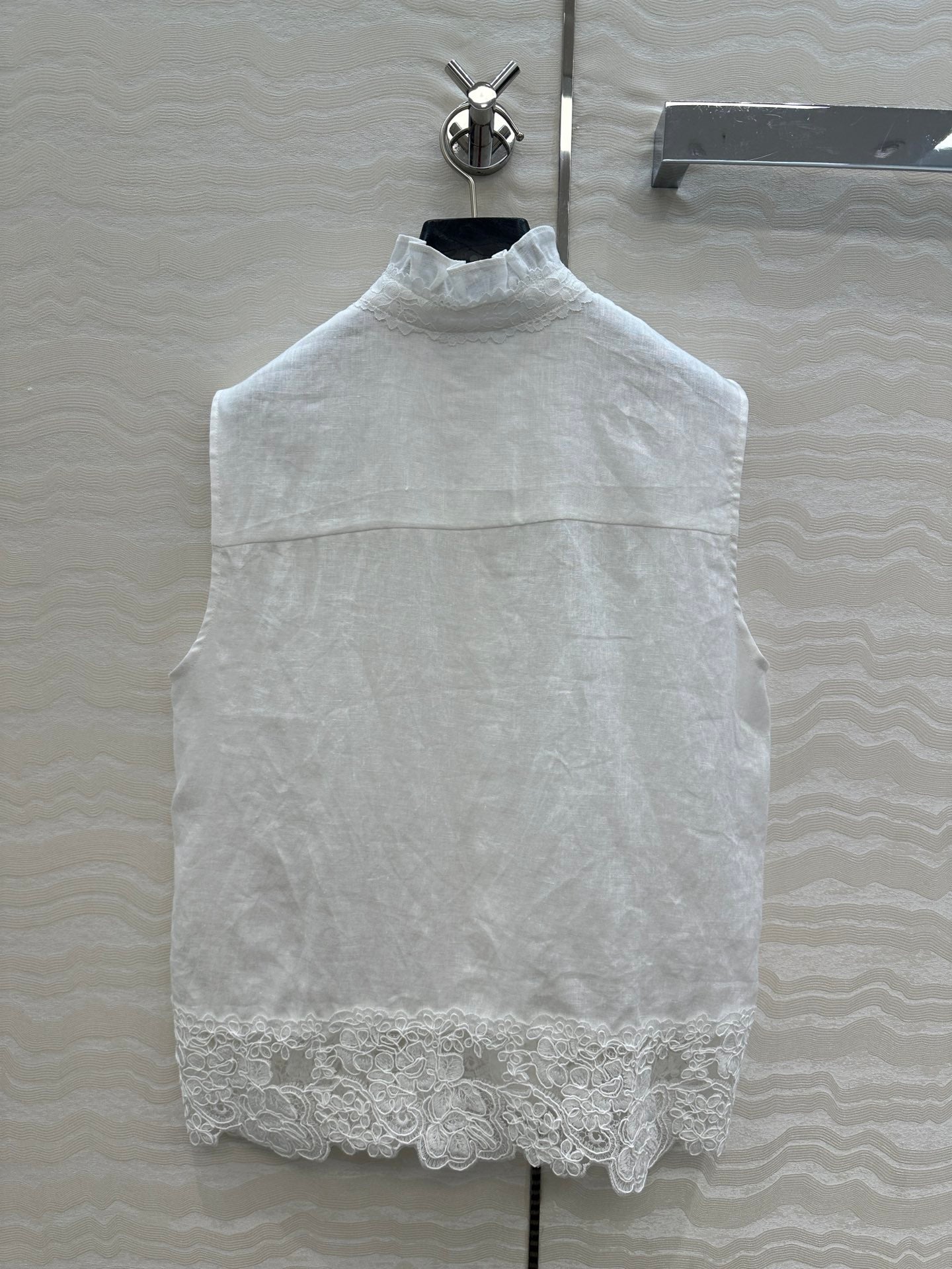 SLEEVELESS BLOUSE IN WHITE LINEN LACE TRIM AND NECK TIE