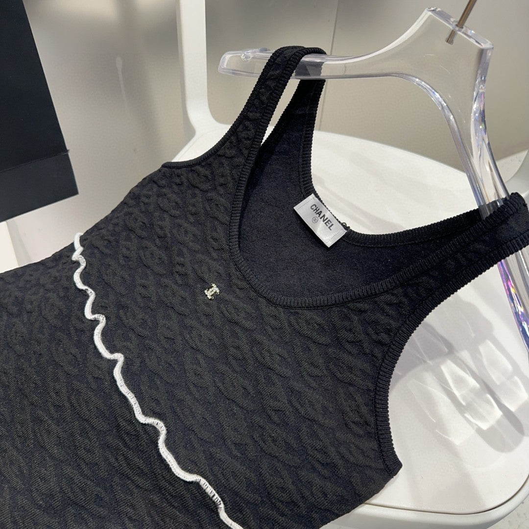 SLEEVELESS TOP 640632 IN BLACK COTTON RAISED LOGO