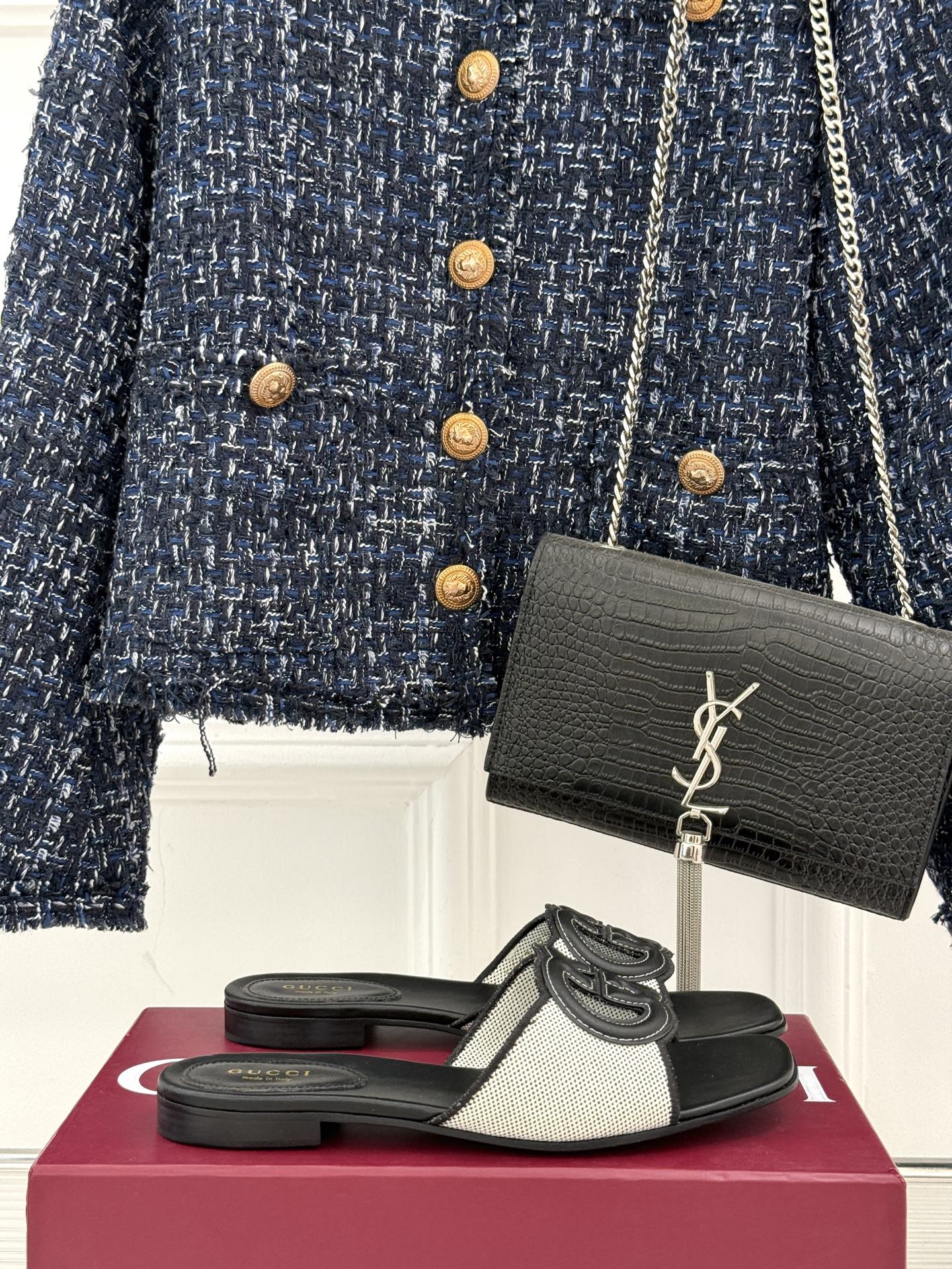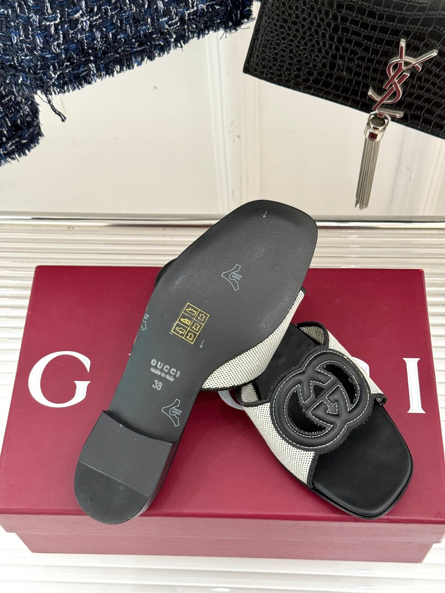 SLIDE SANDALS IN BLACK AND WHITE CALFSKIN