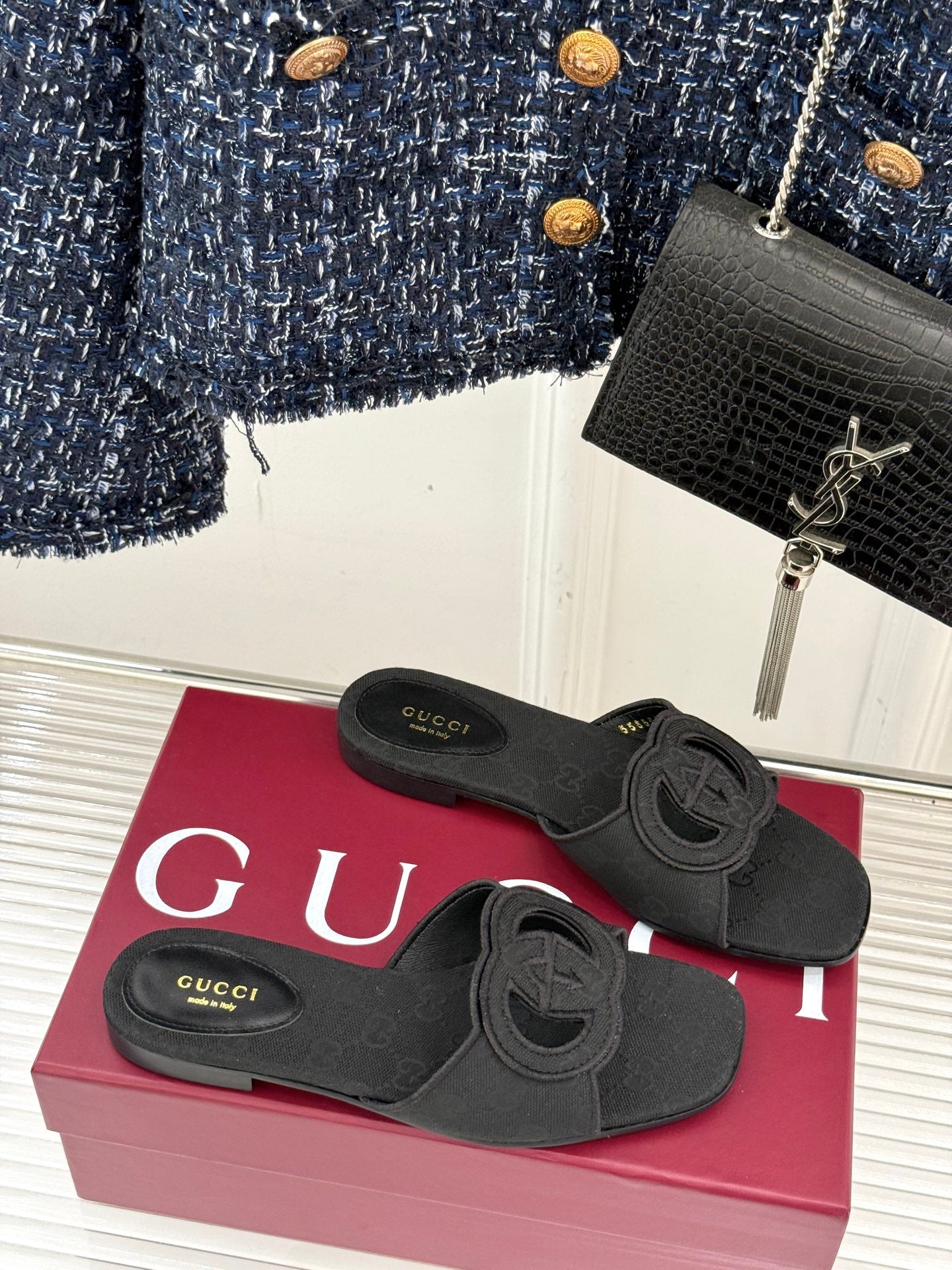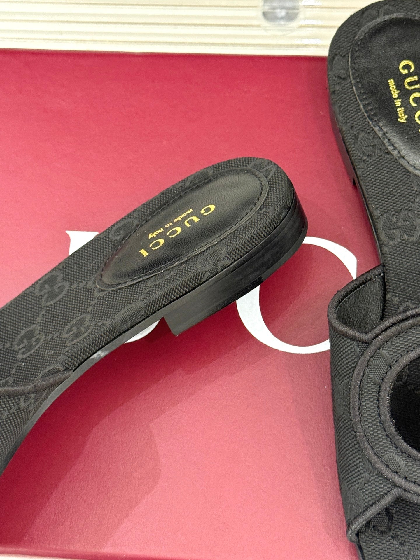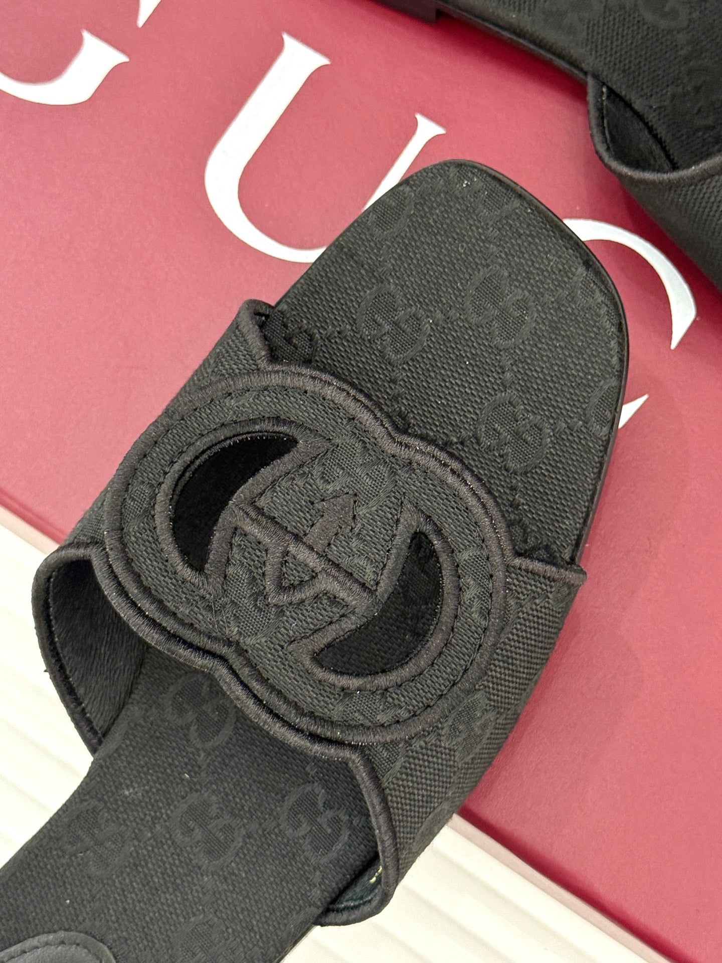 SLIDE SANDALS IN BLACK FABRIC EMBOSSED LOGO STYLE 1