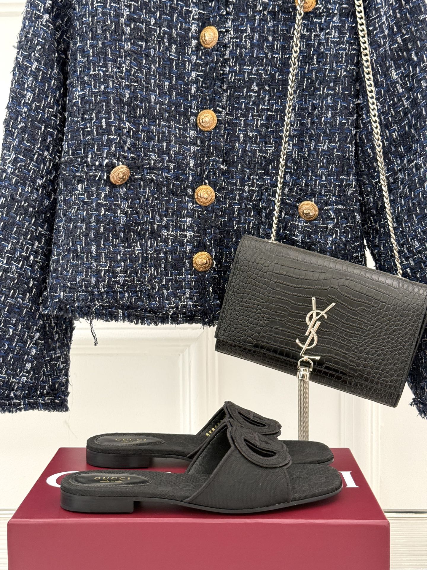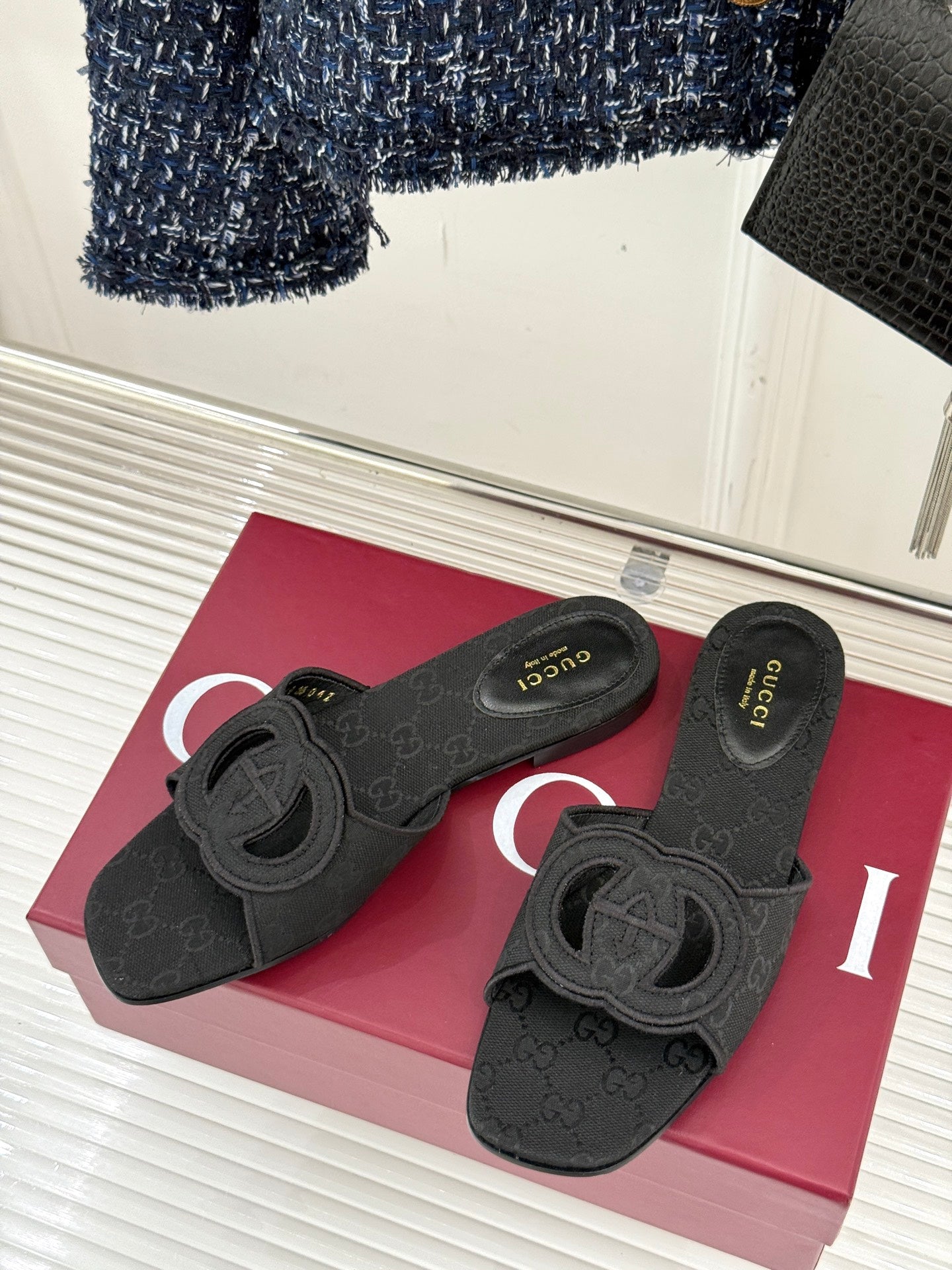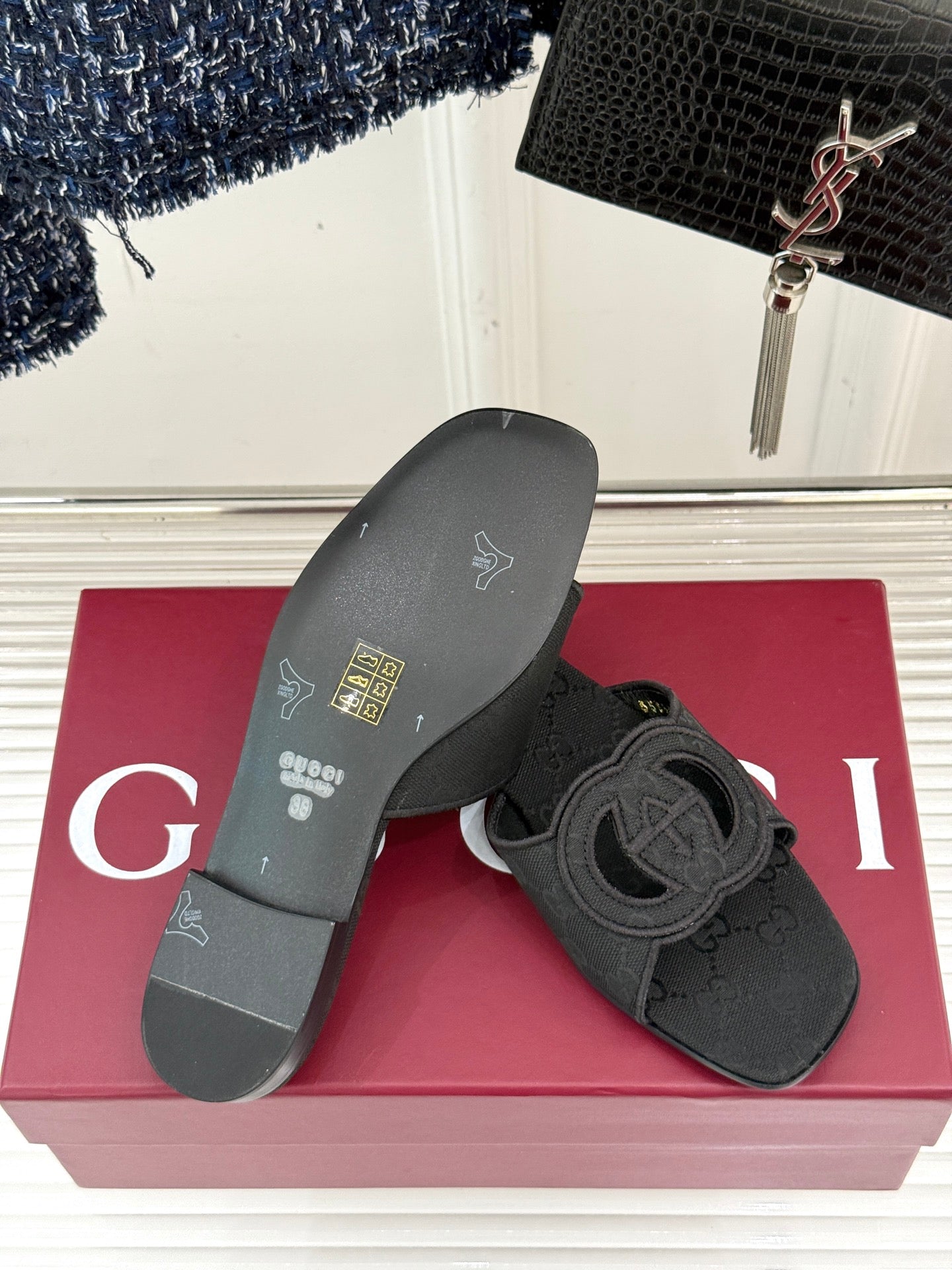 SLIDE SANDALS IN BLACK FABRIC EMBOSSED LOGO STYLE 1