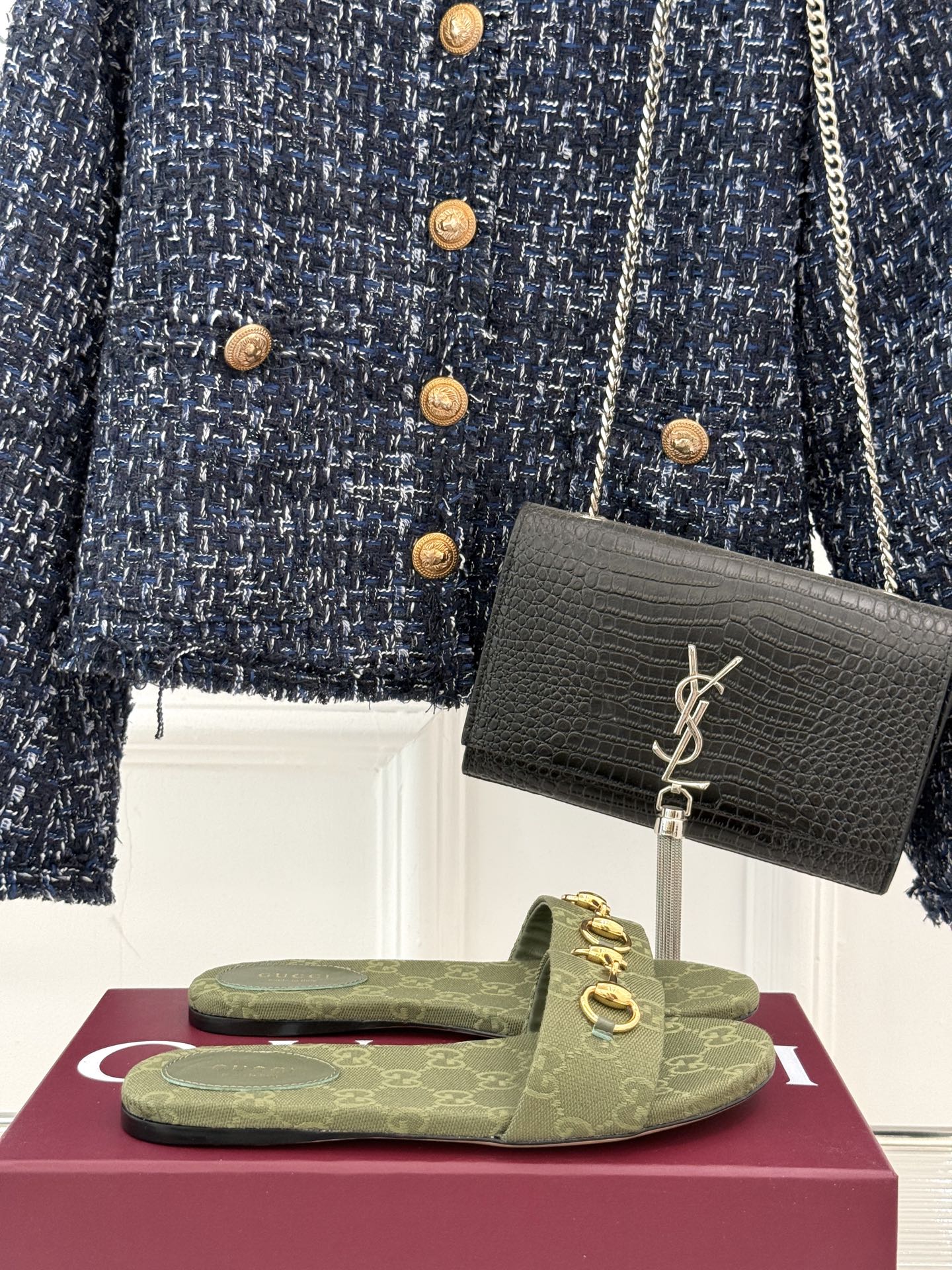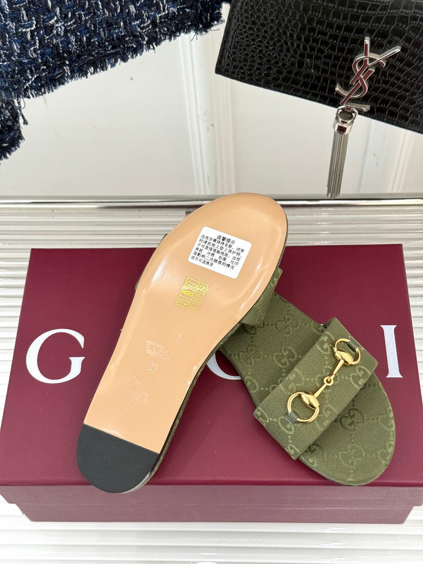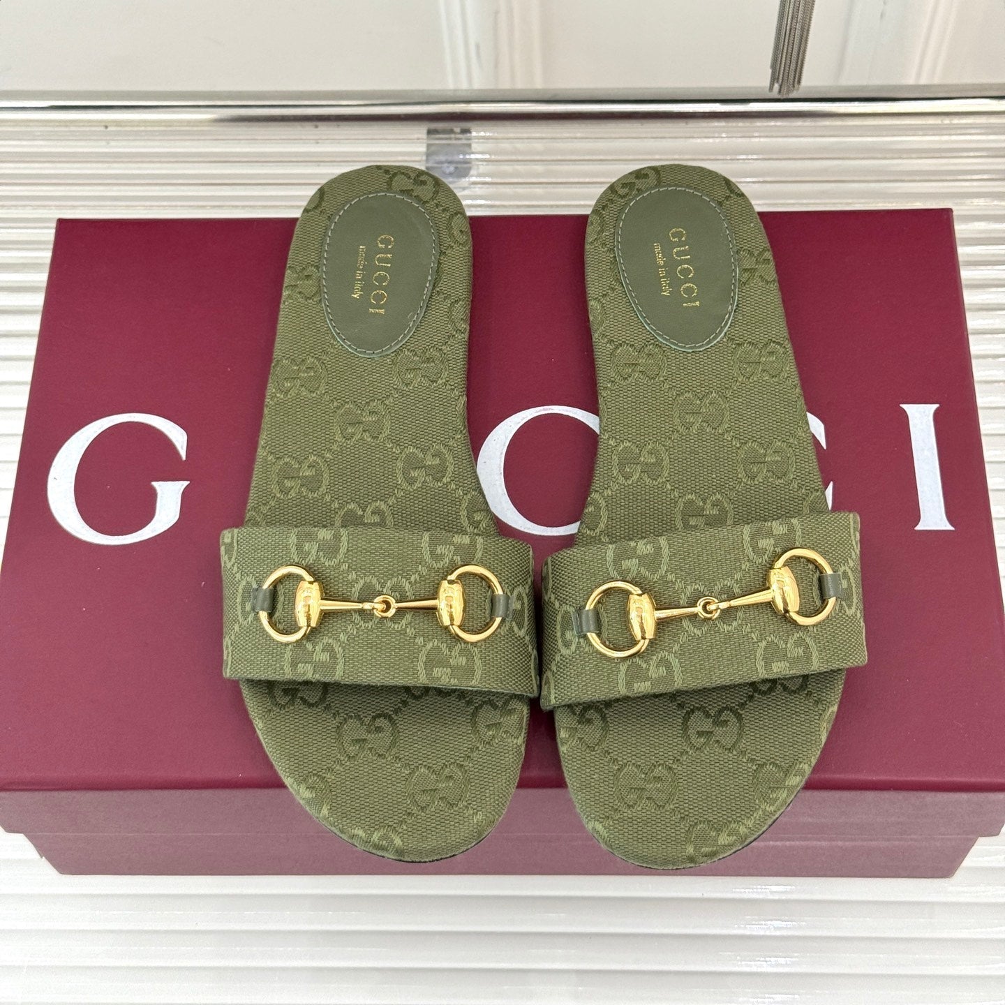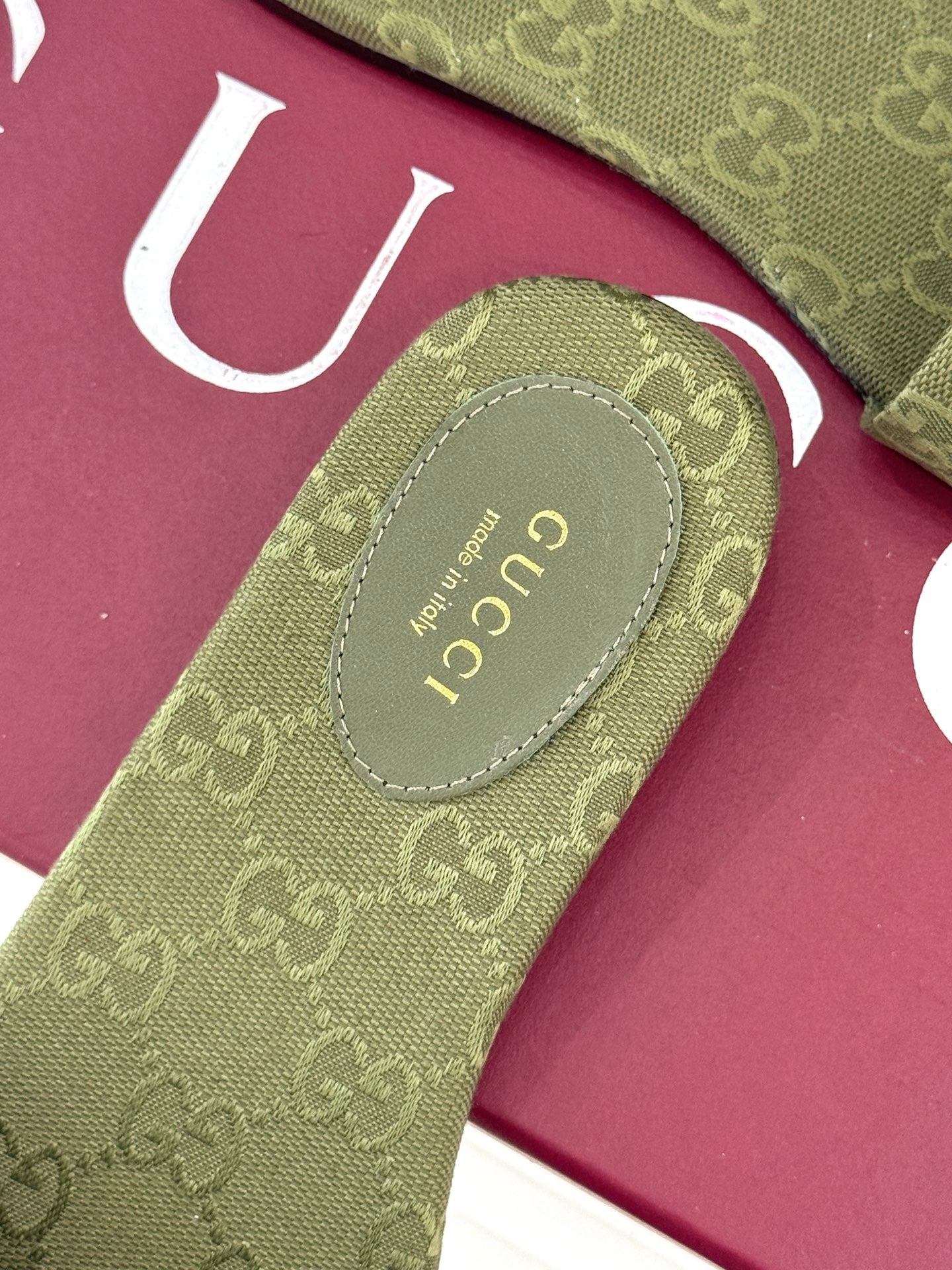 SLIDE SANDALS IN MOSS GREEN FABRIC EMBOSSED LOGO