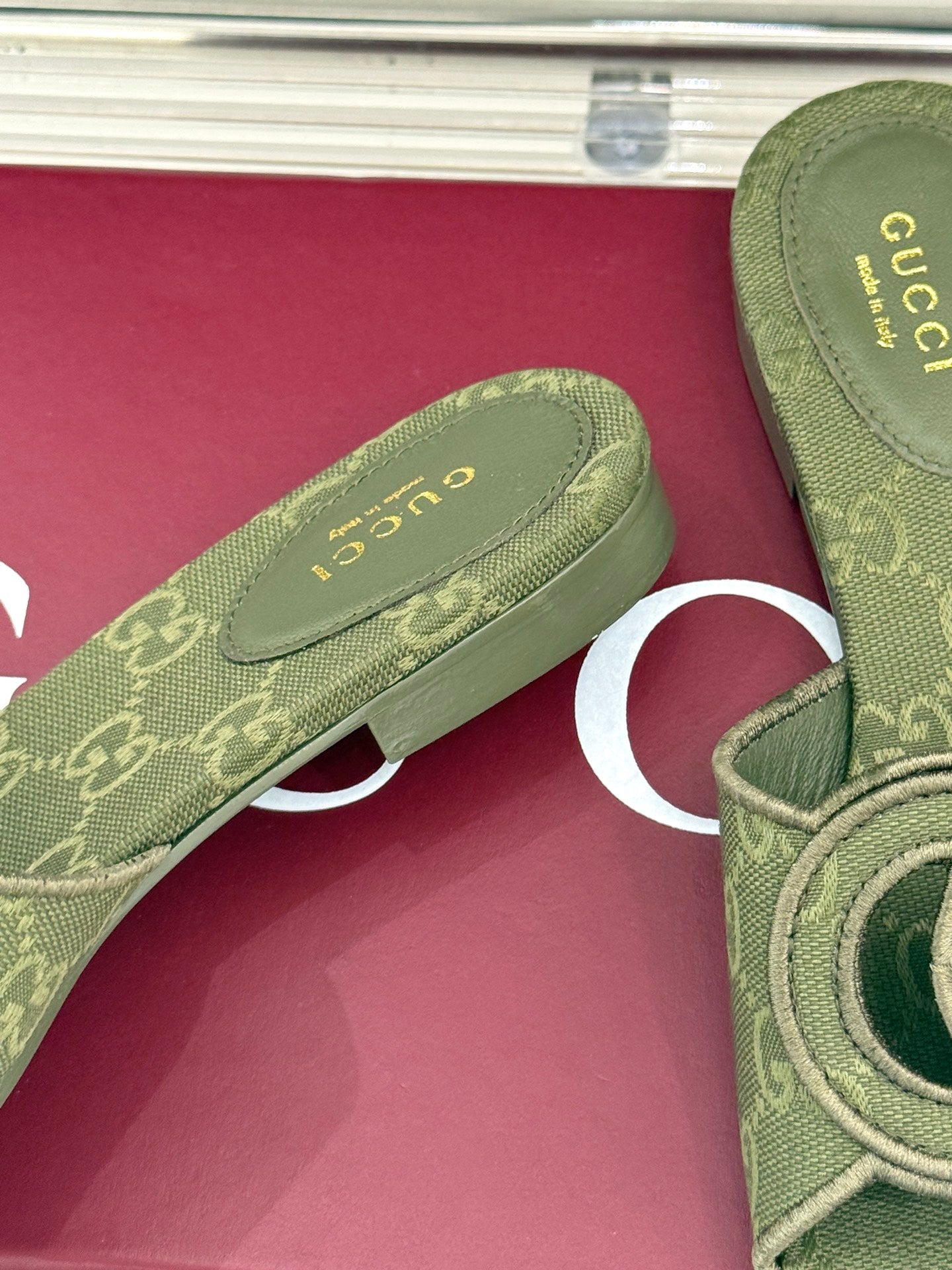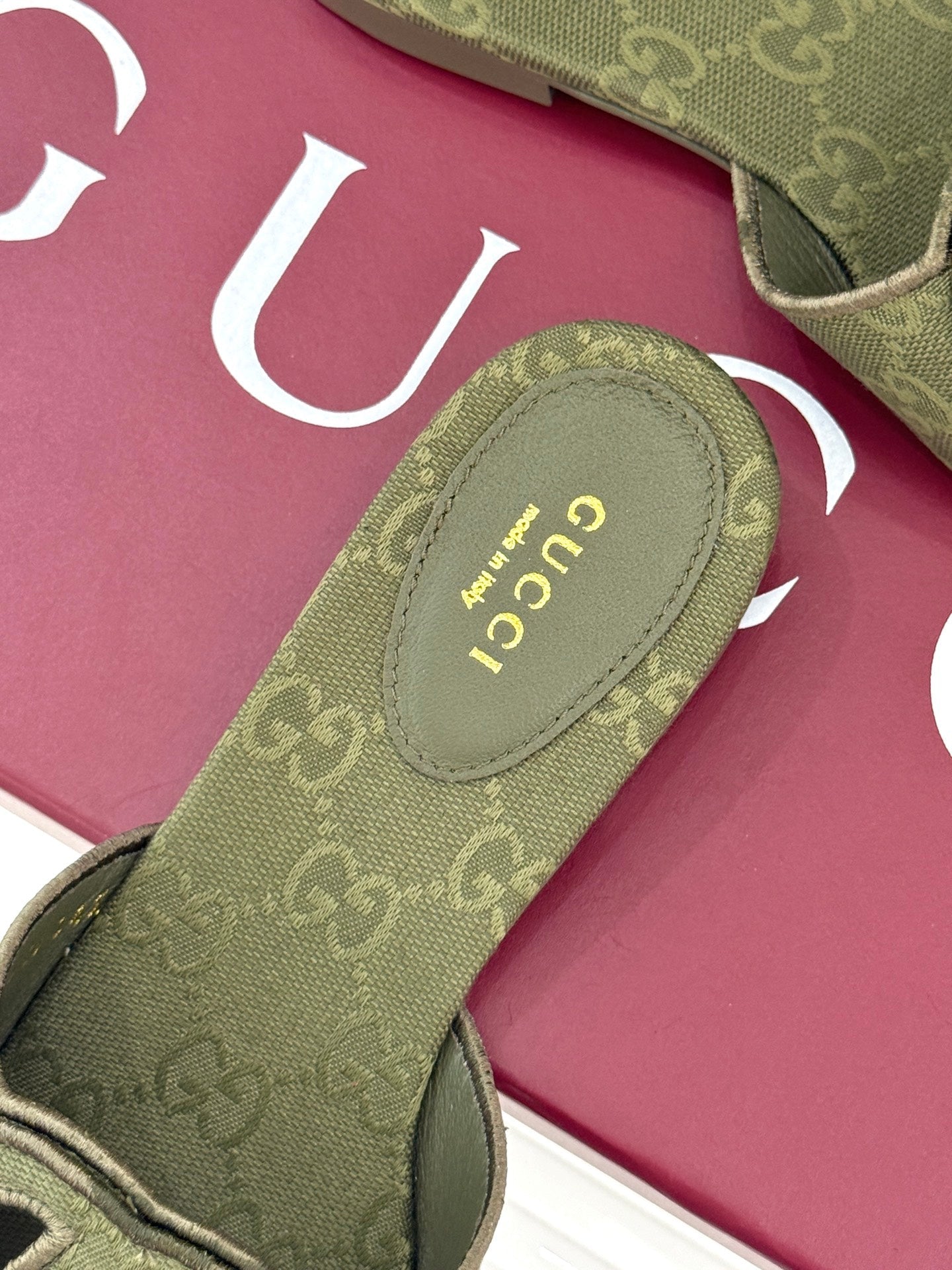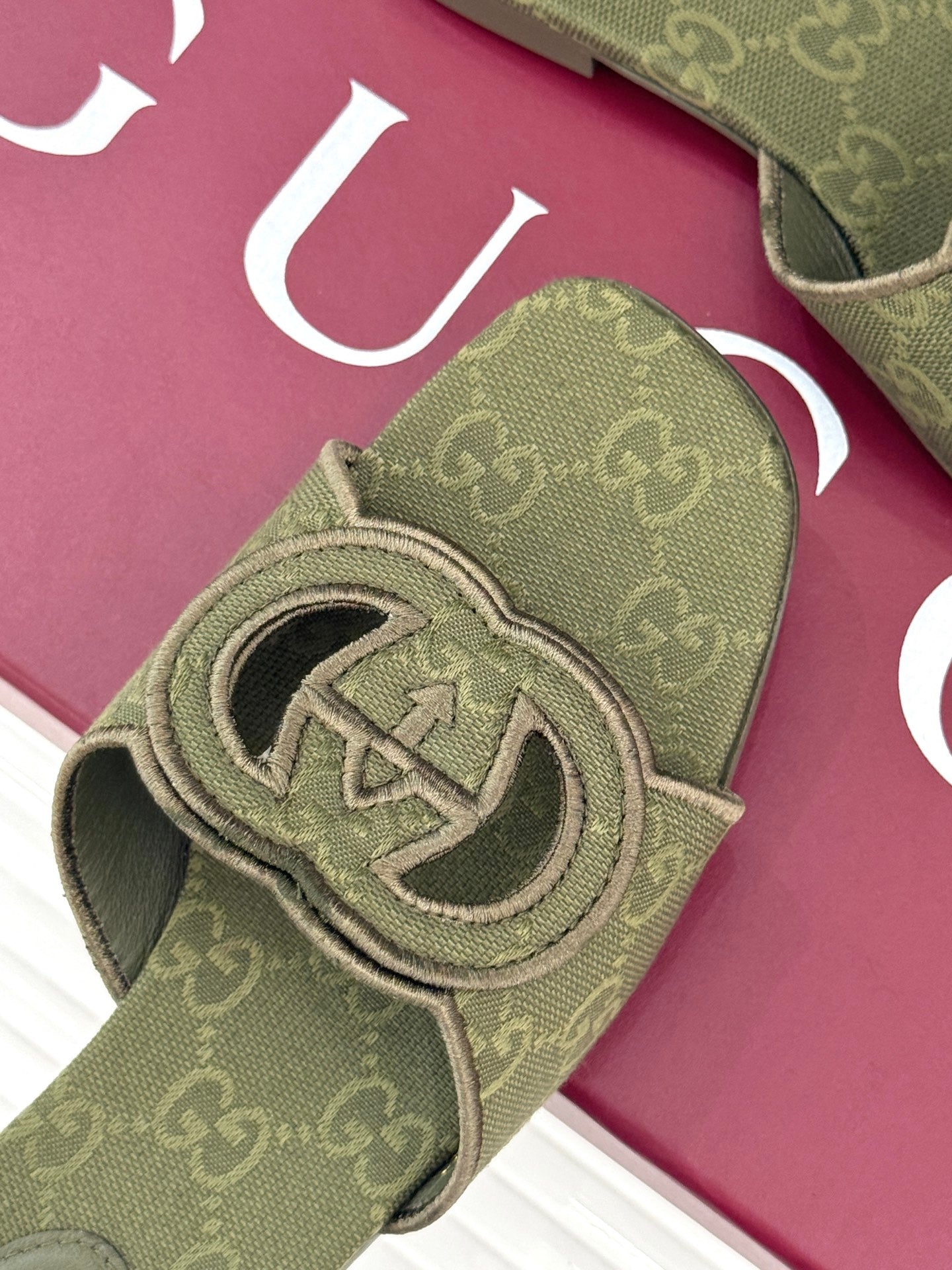 SLIDE SANDALS IN MOSS GREEN FABRIC EMBOSSED LOGO STYLE 2