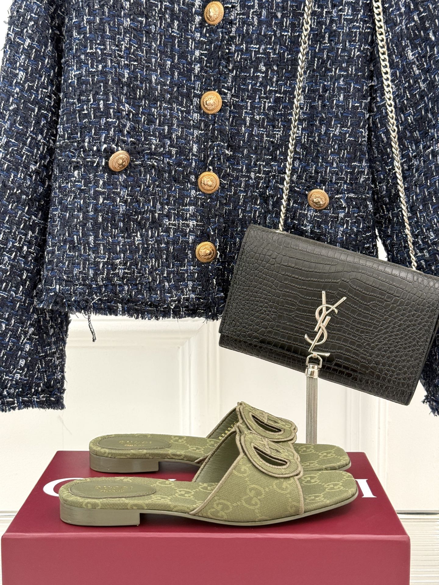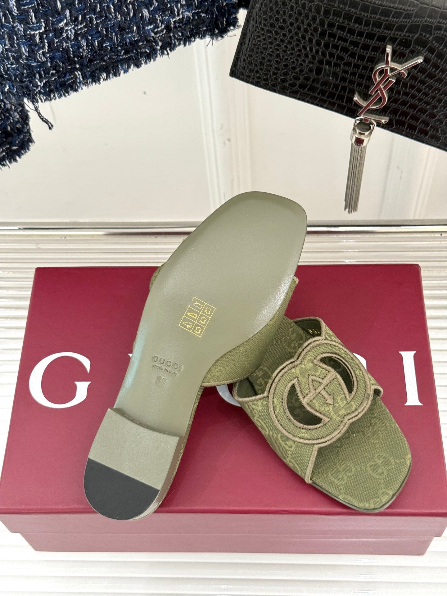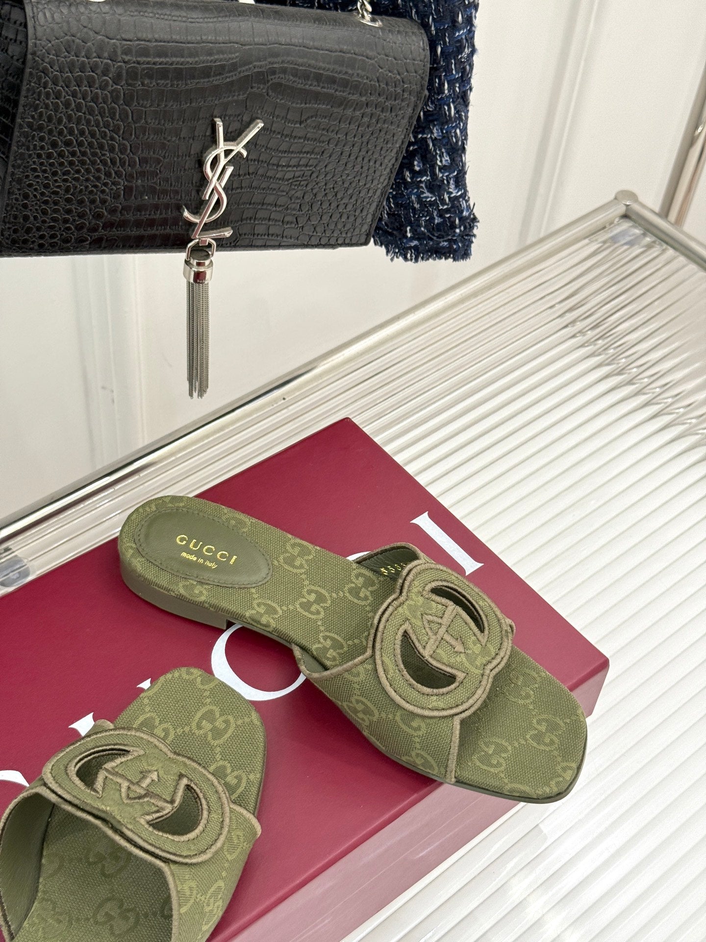 SLIDE SANDALS IN MOSS GREEN FABRIC EMBOSSED LOGO STYLE 2