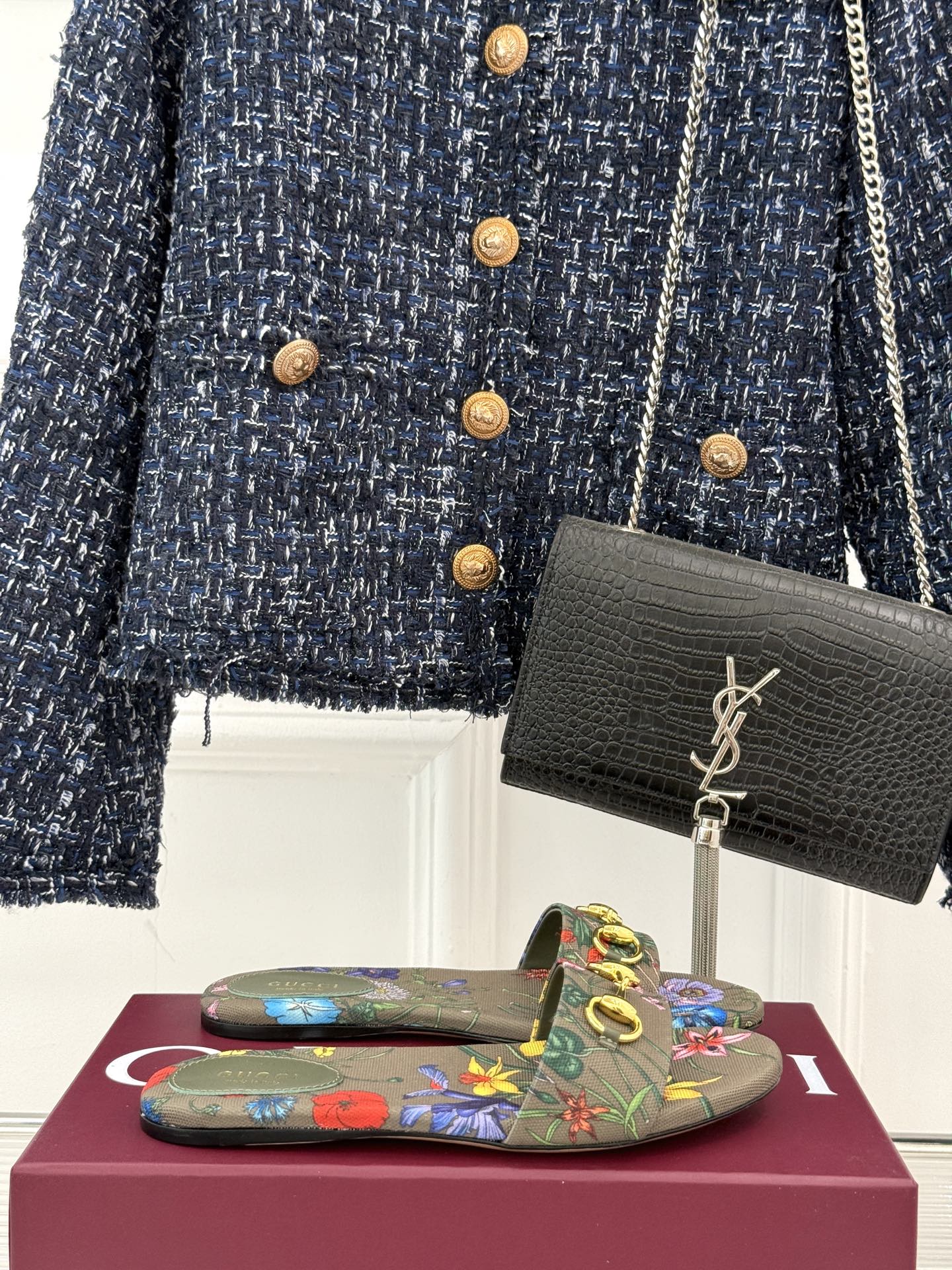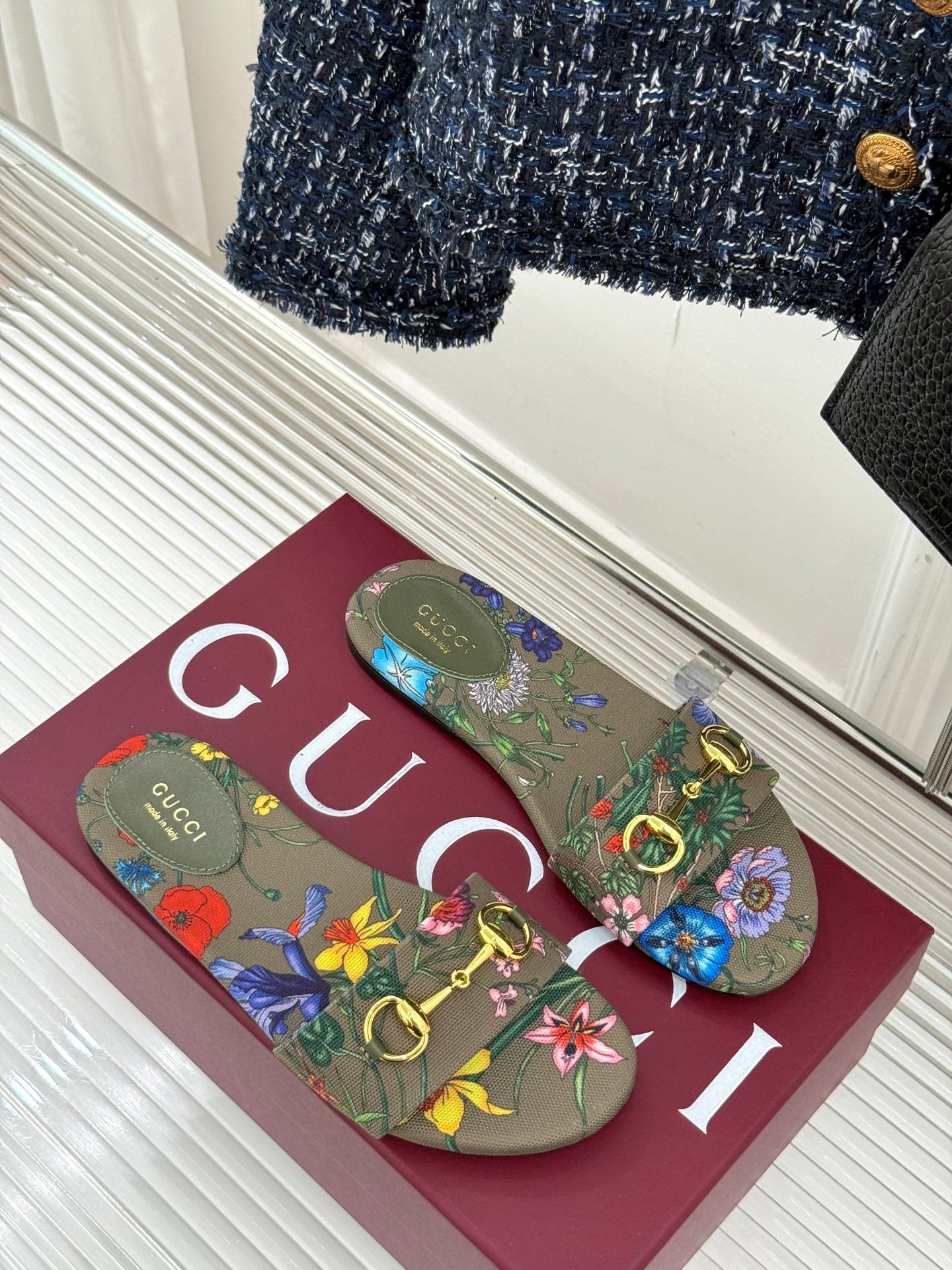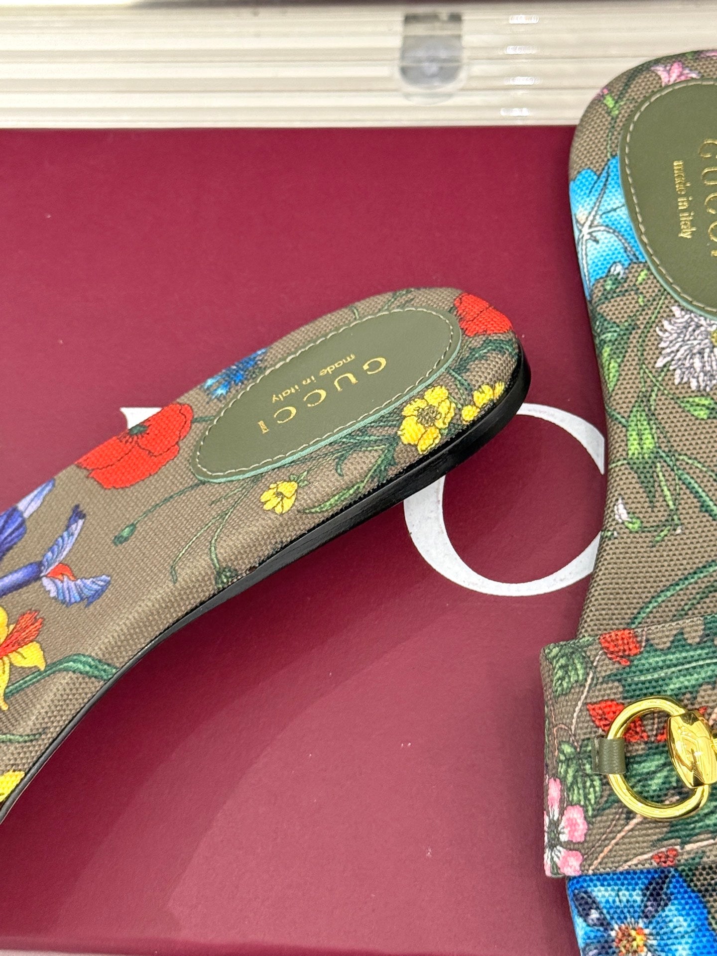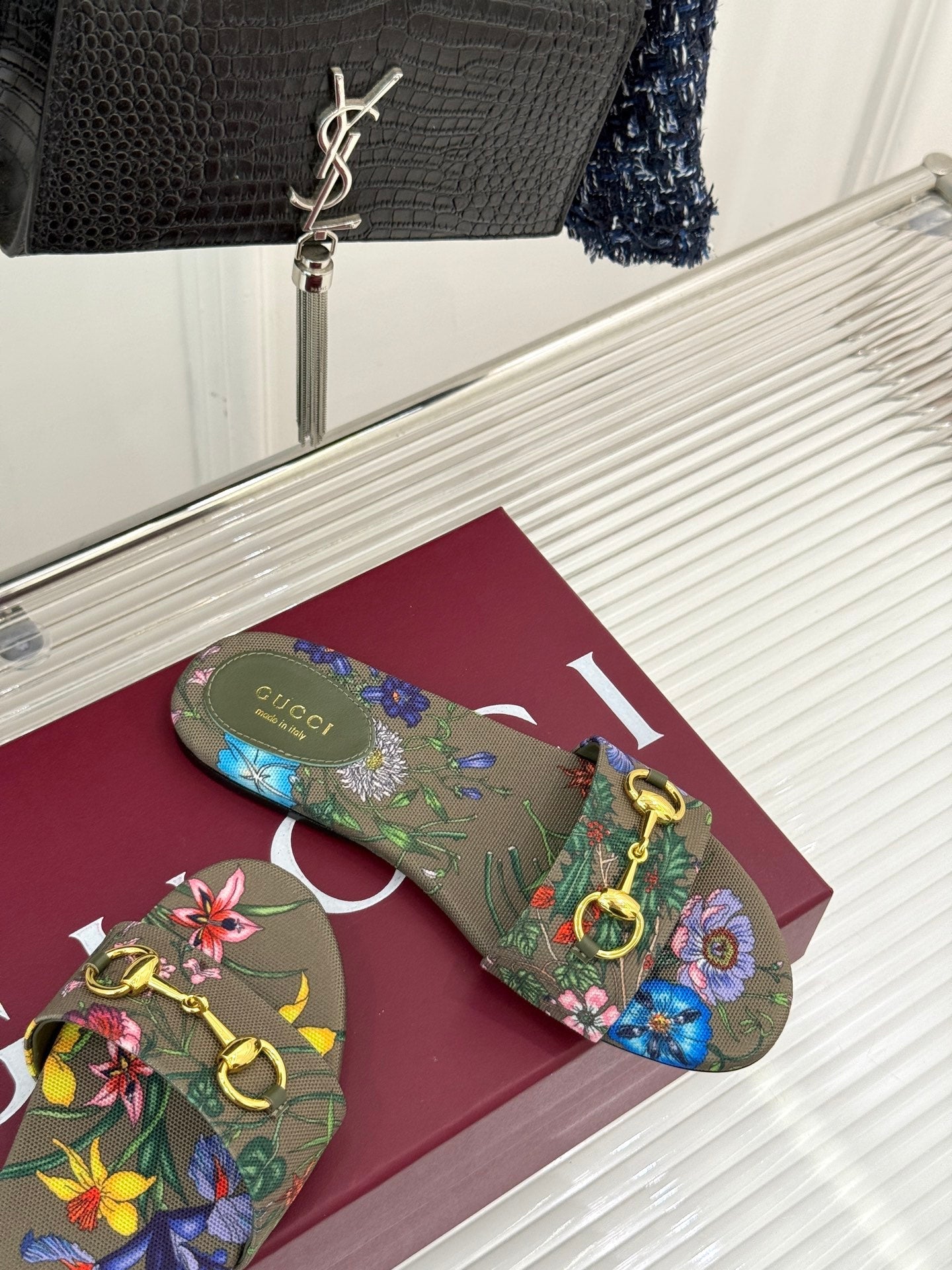 SLIDE SANDALS IN WARM BEIGE FABRIC FLORAL AND LEAF PRINT