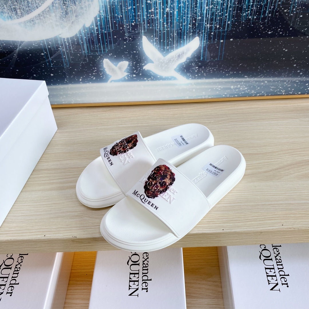 SLIDES SANDAL IN WHITE TPU WITH 3D SKULL PRINT STRAP
