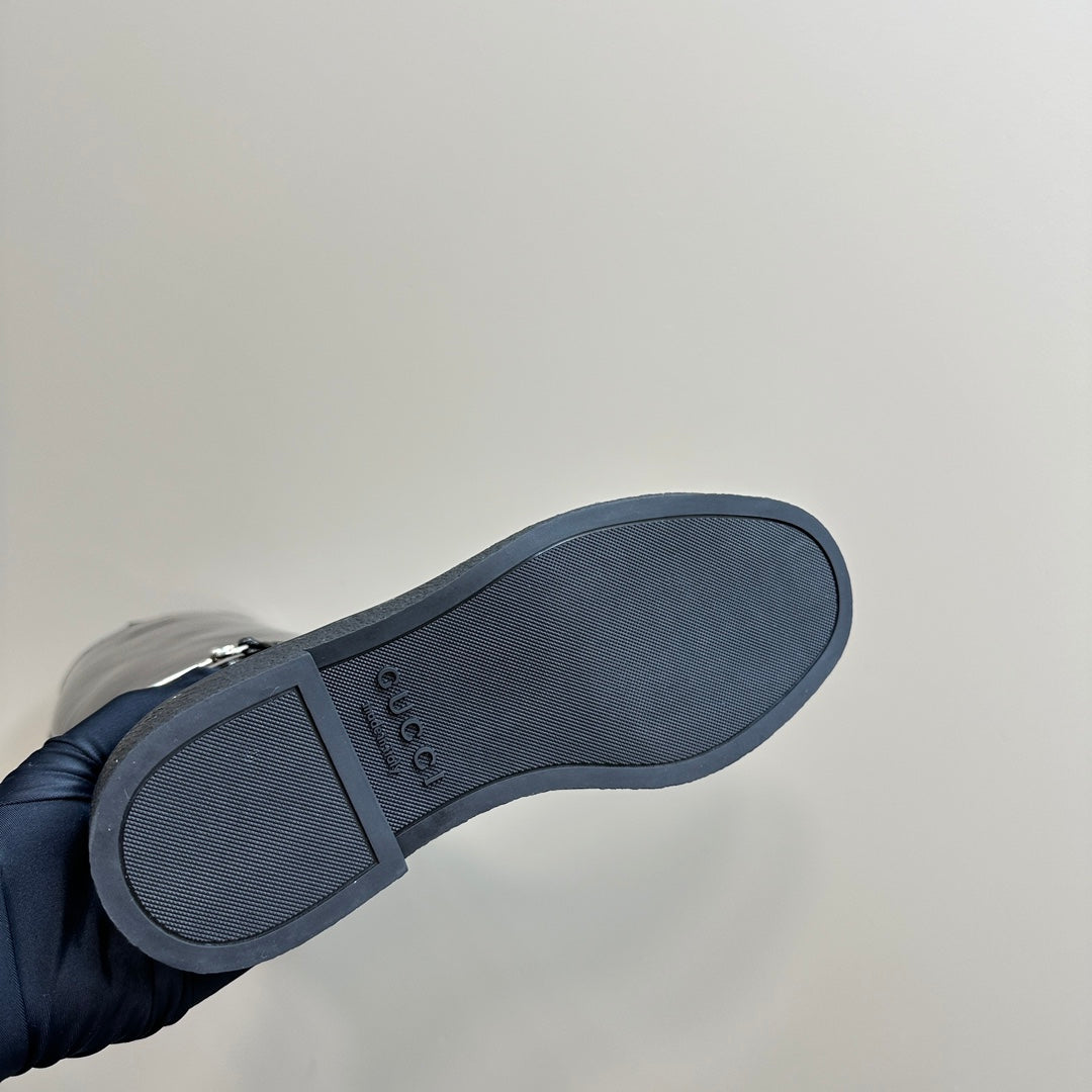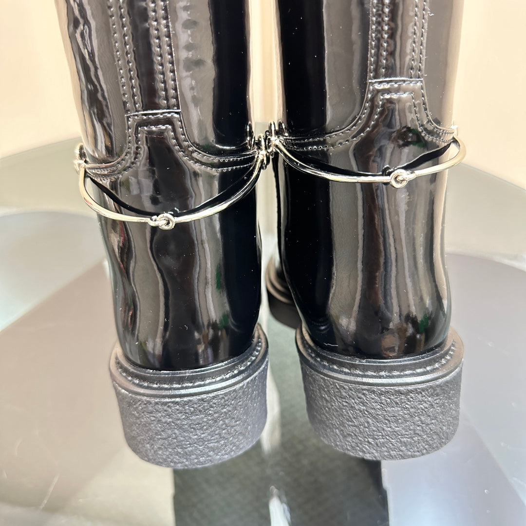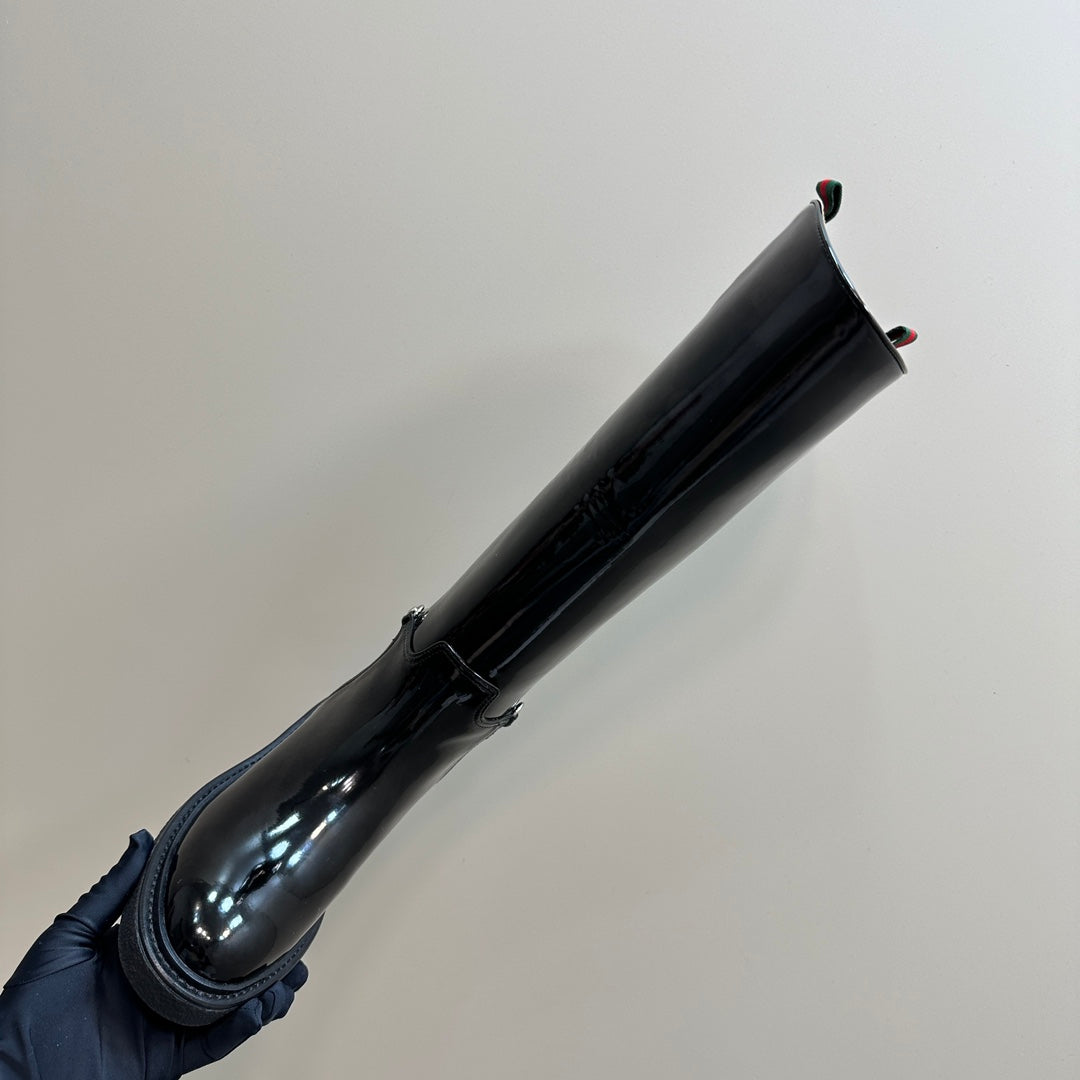 SLIM HORSEBIT KNEE BOOTS WITH WEB IN BLACK GLOSSY CALFSKIN