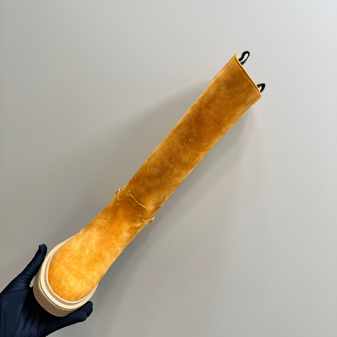 SLIM HORSEBIT KNEE BOOTS WITH WEB IN HONEY ORANGE SUEDE