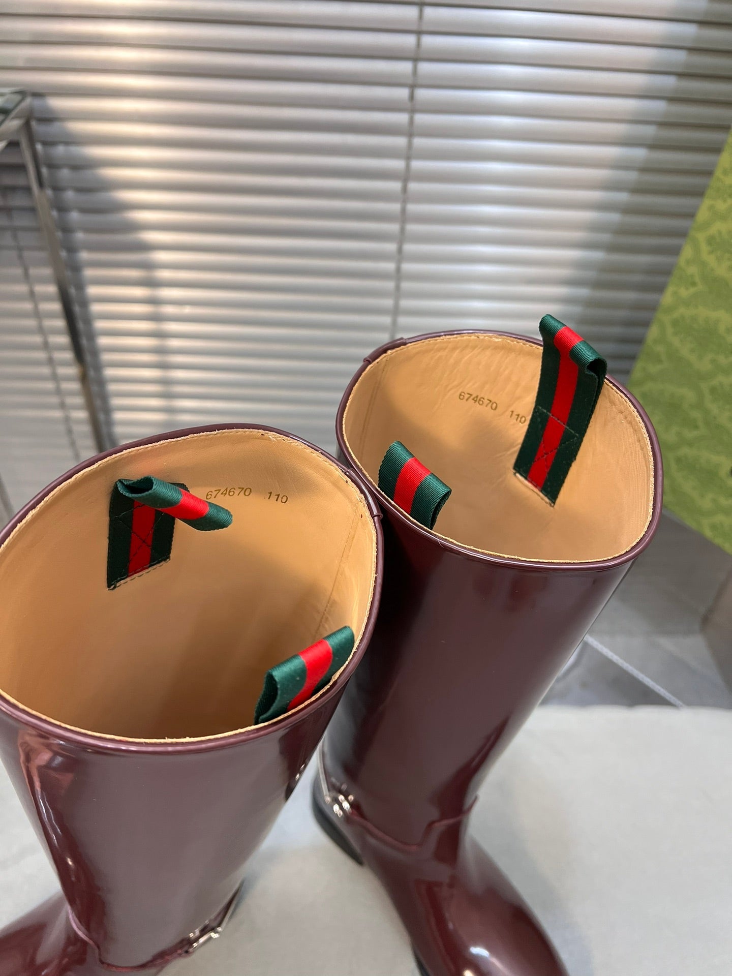 SLIM HORSEBIT KNEE BOOTS WITH WEB IN WINE RED GLOSSY CALFSKIN
