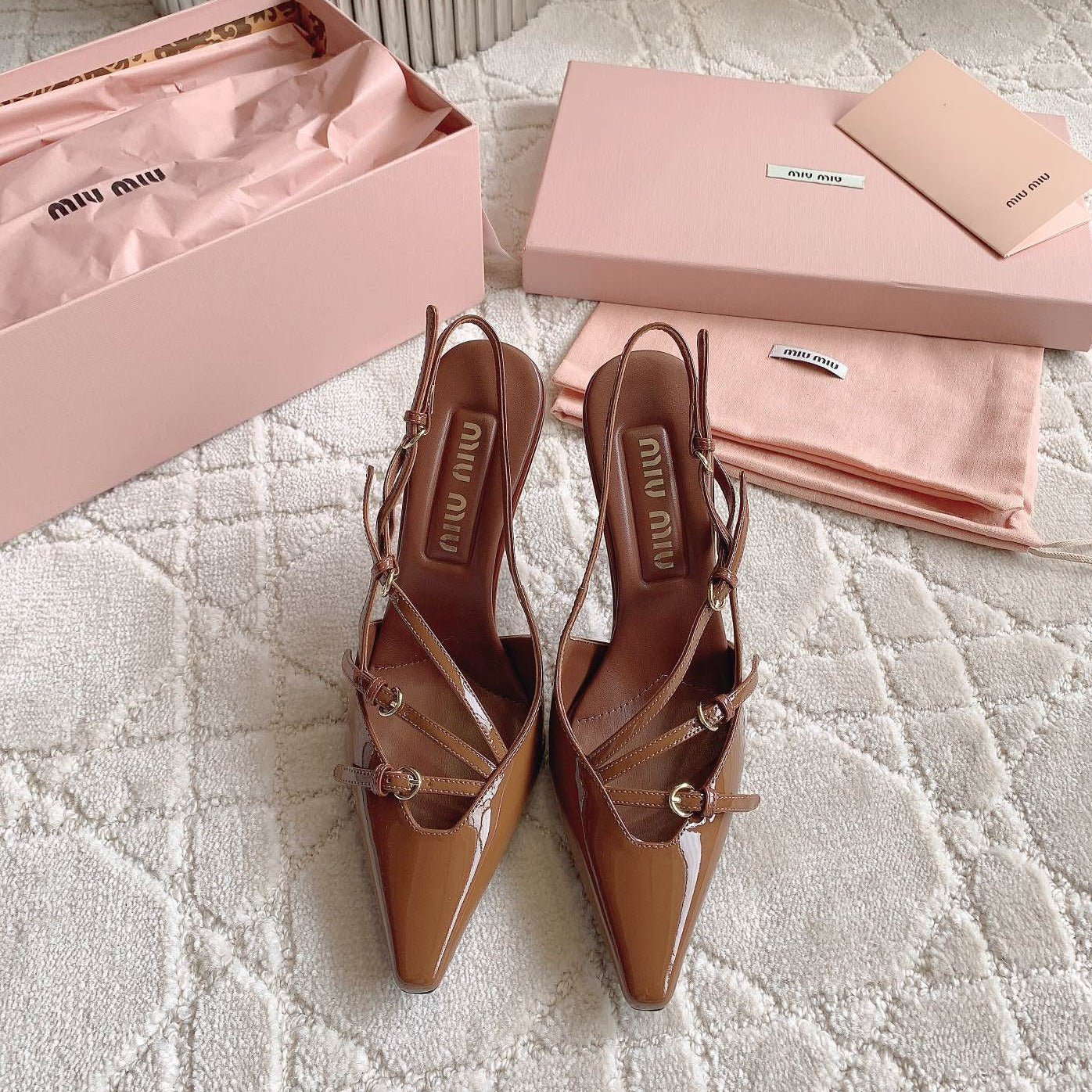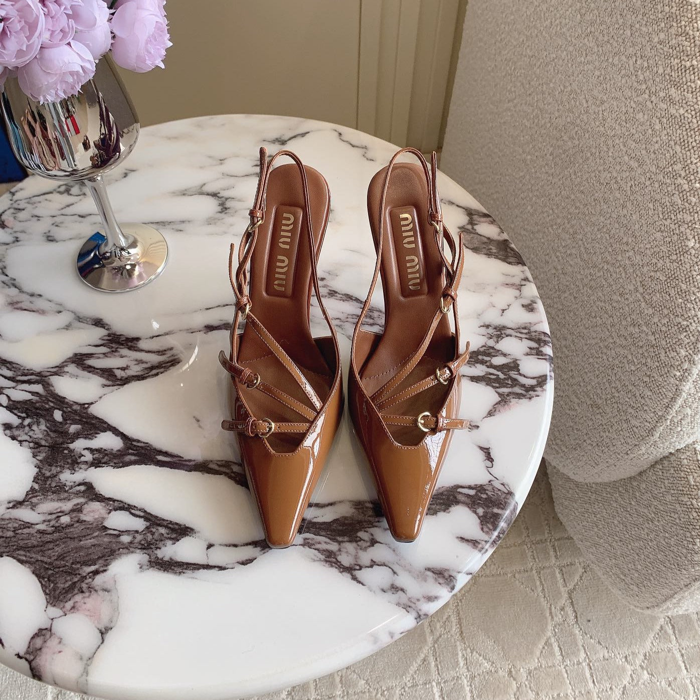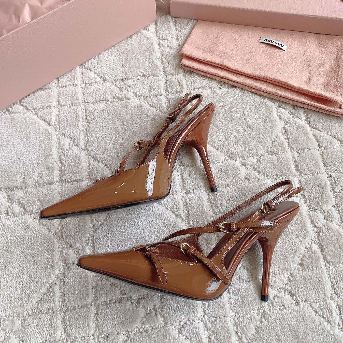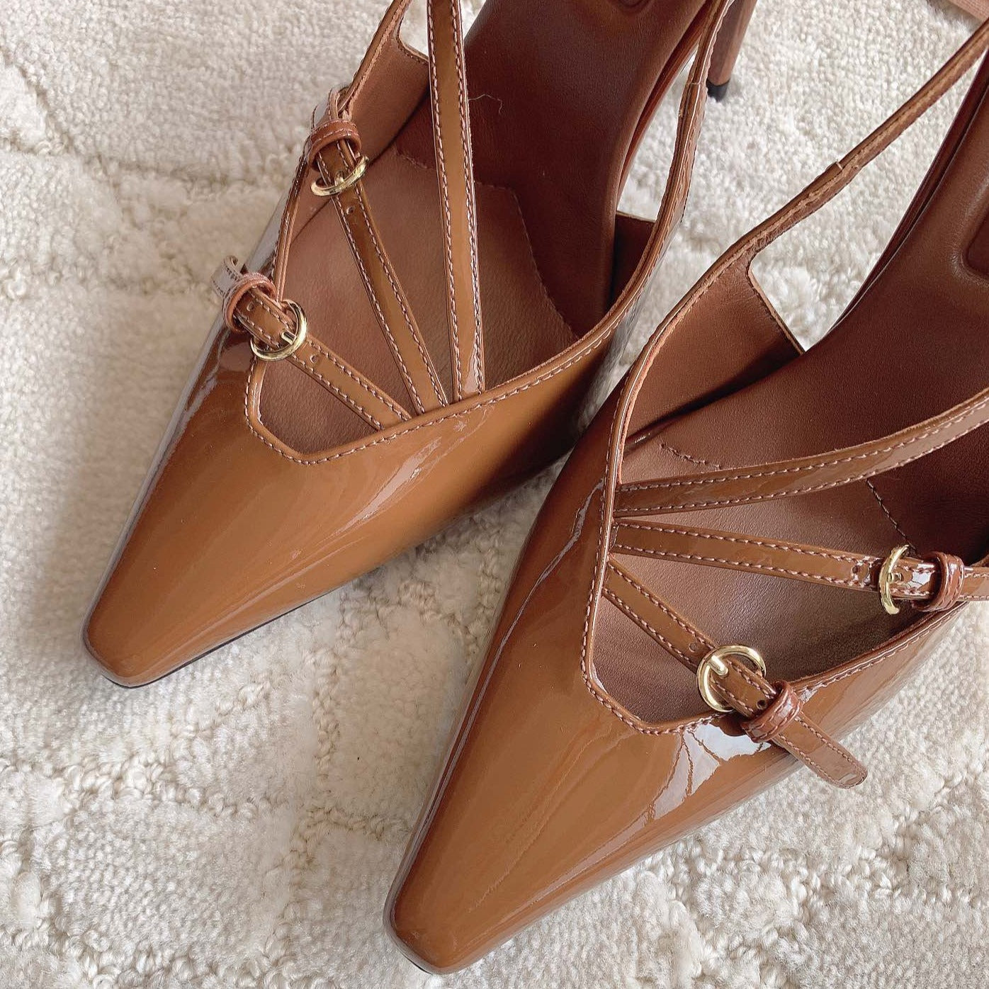 Slingback Ash Brown Leather With Stylized Cross Straps - High heels