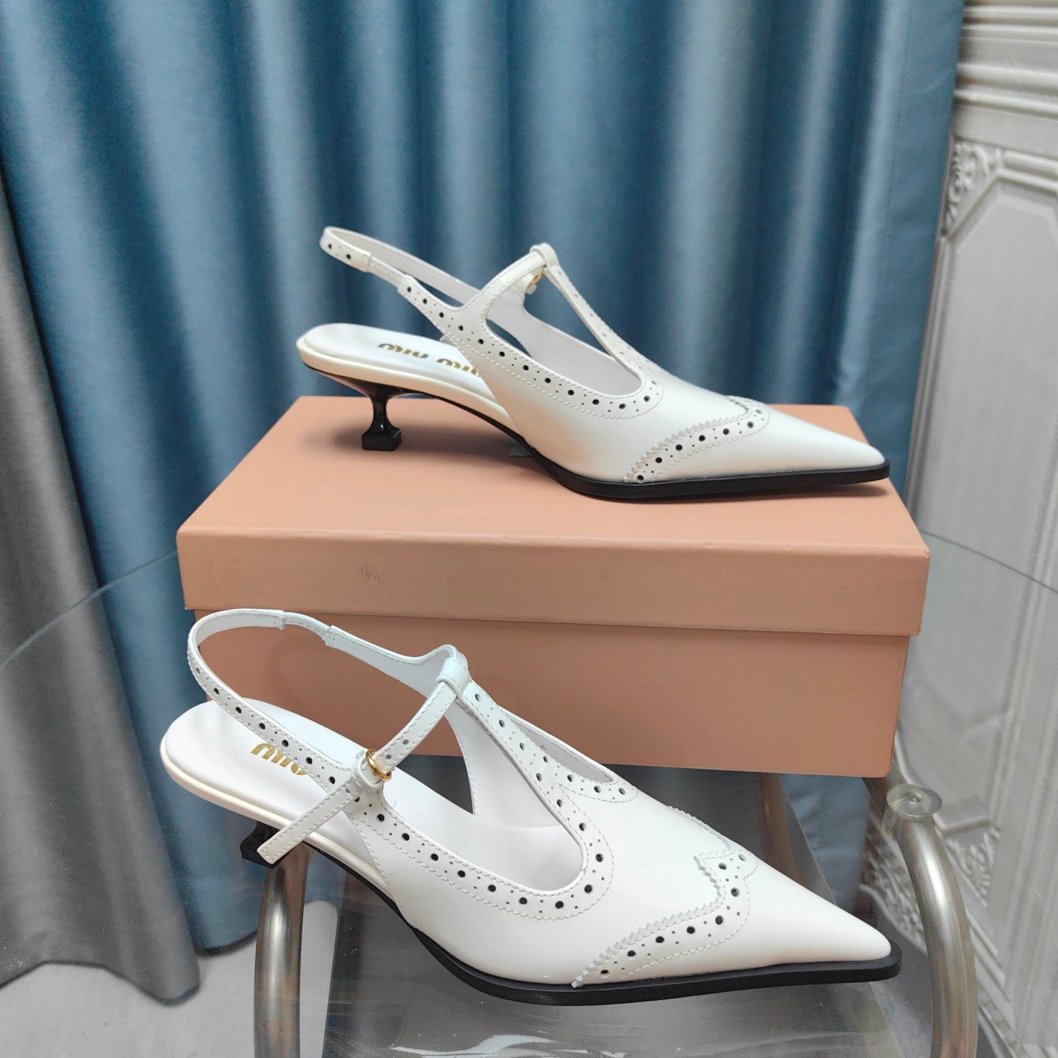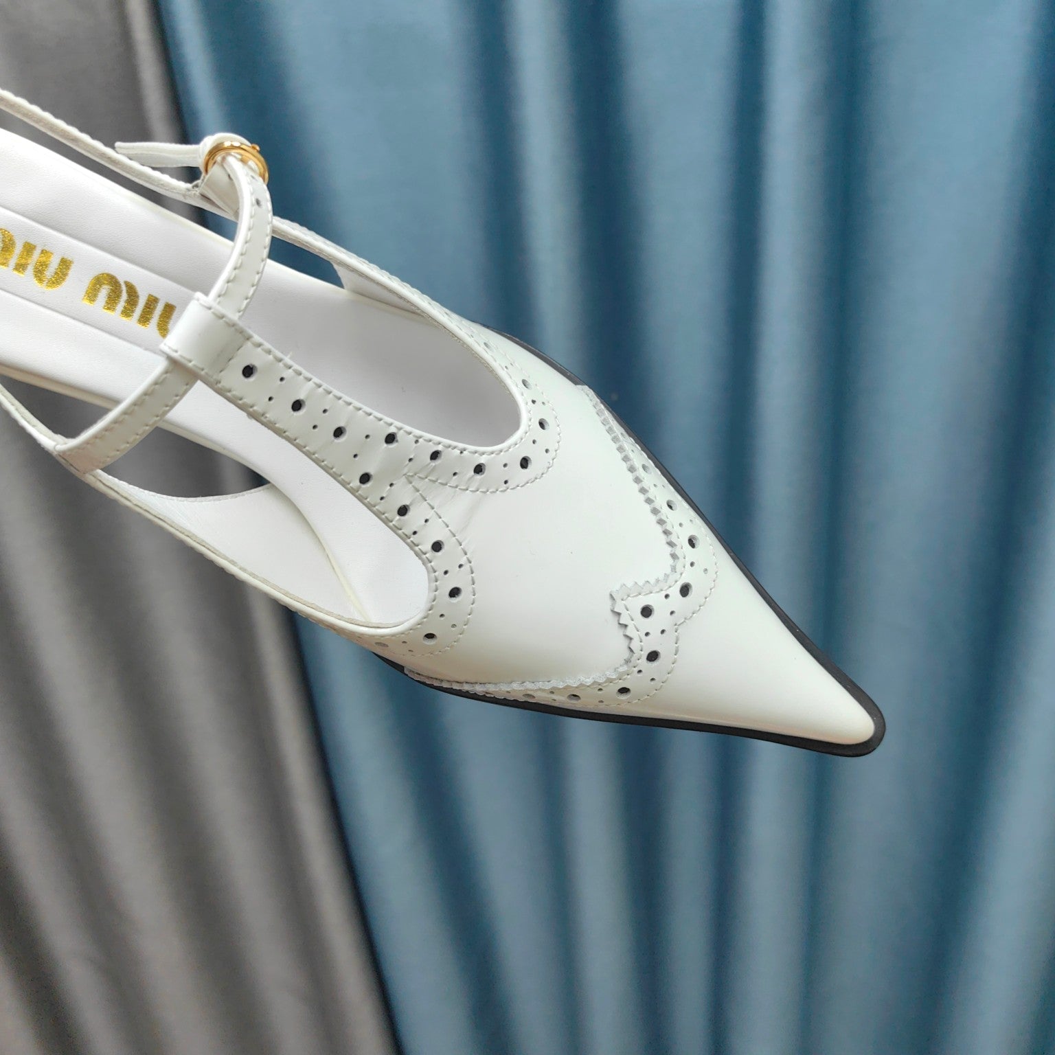 SLINGBACK WHITE LAMBSKIN WITH T- STRAPS