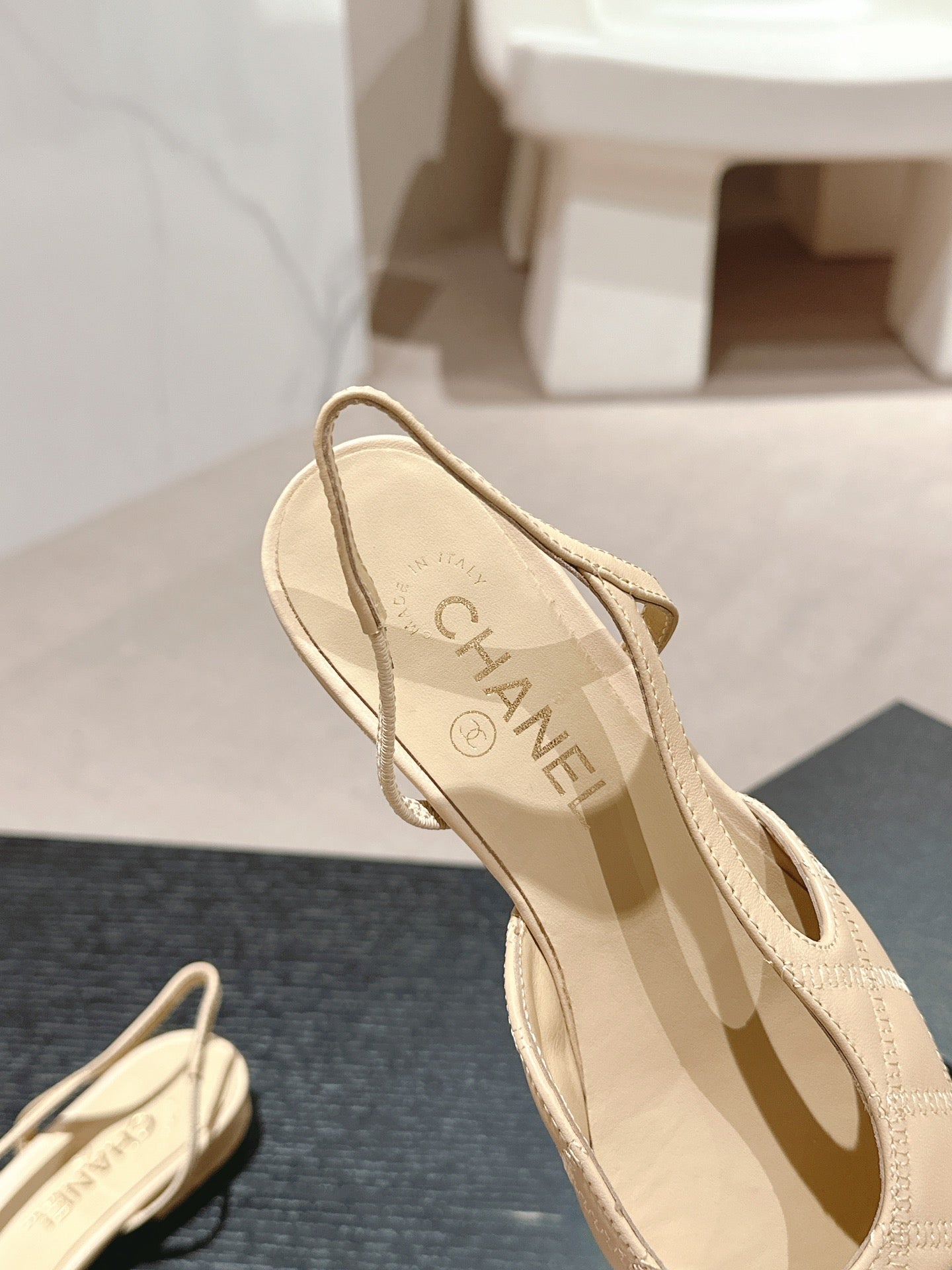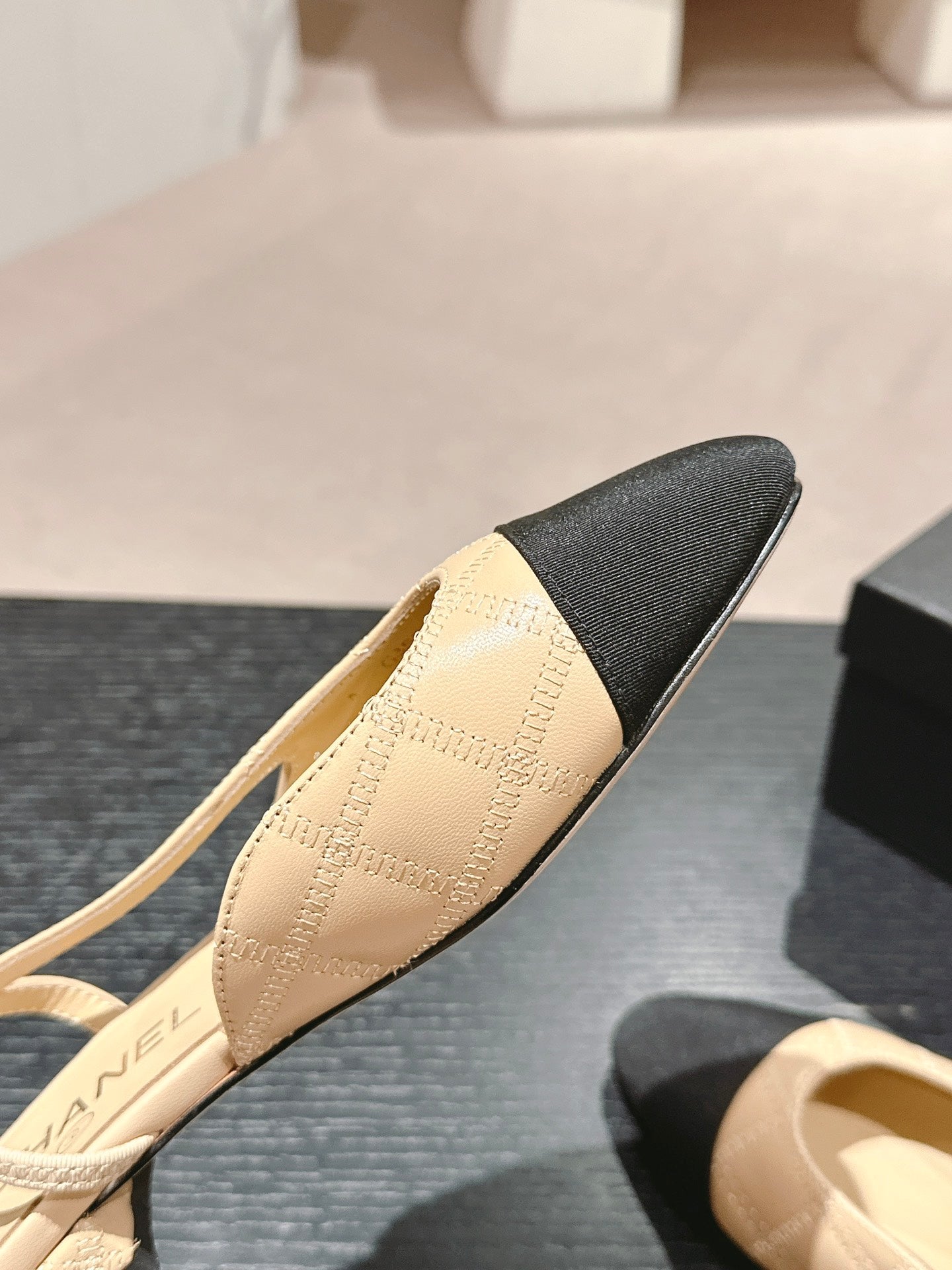 SLINGBACKS IN BEIGE CREAM LAMBSKIN AND BLACK SATIN