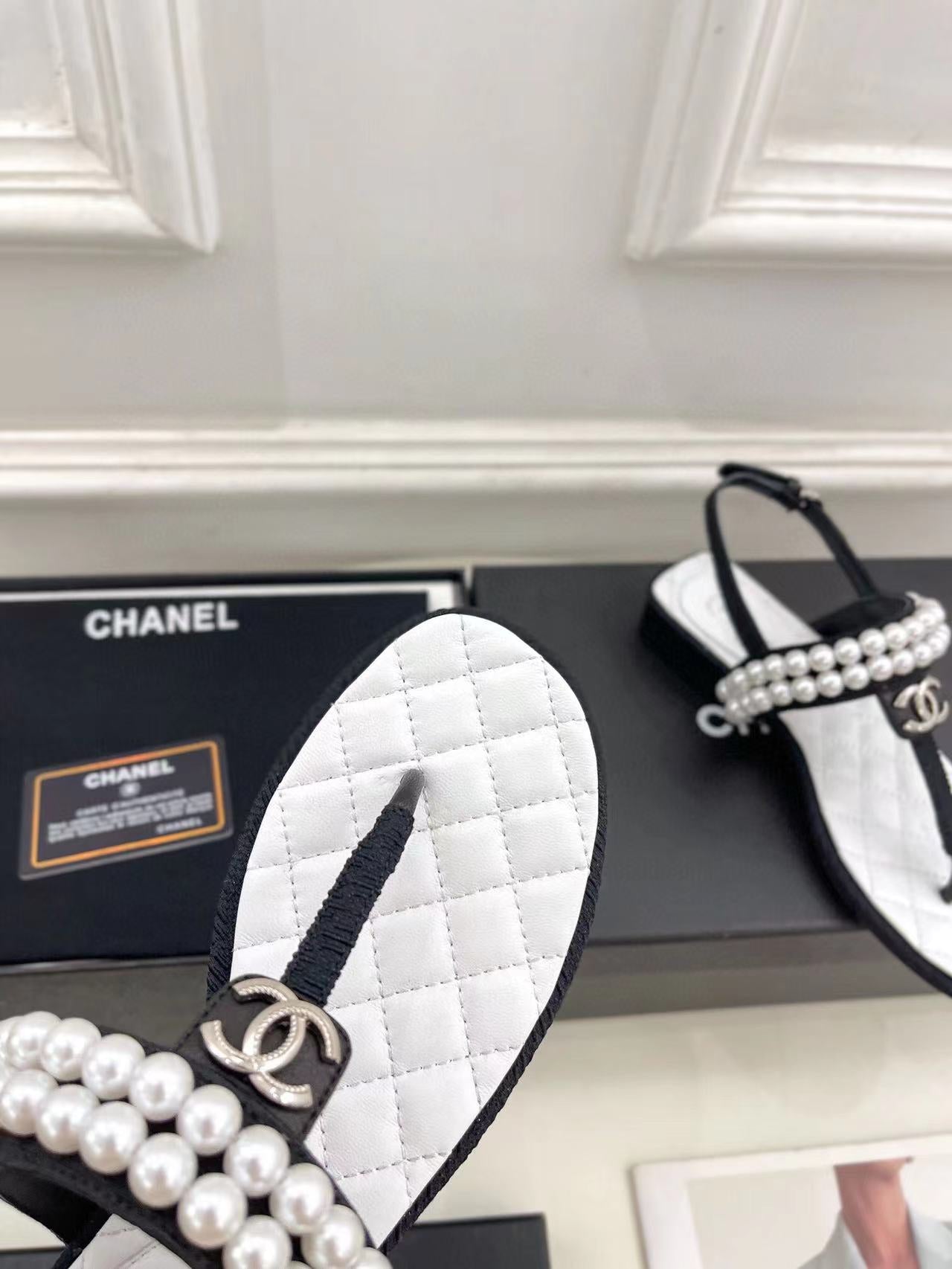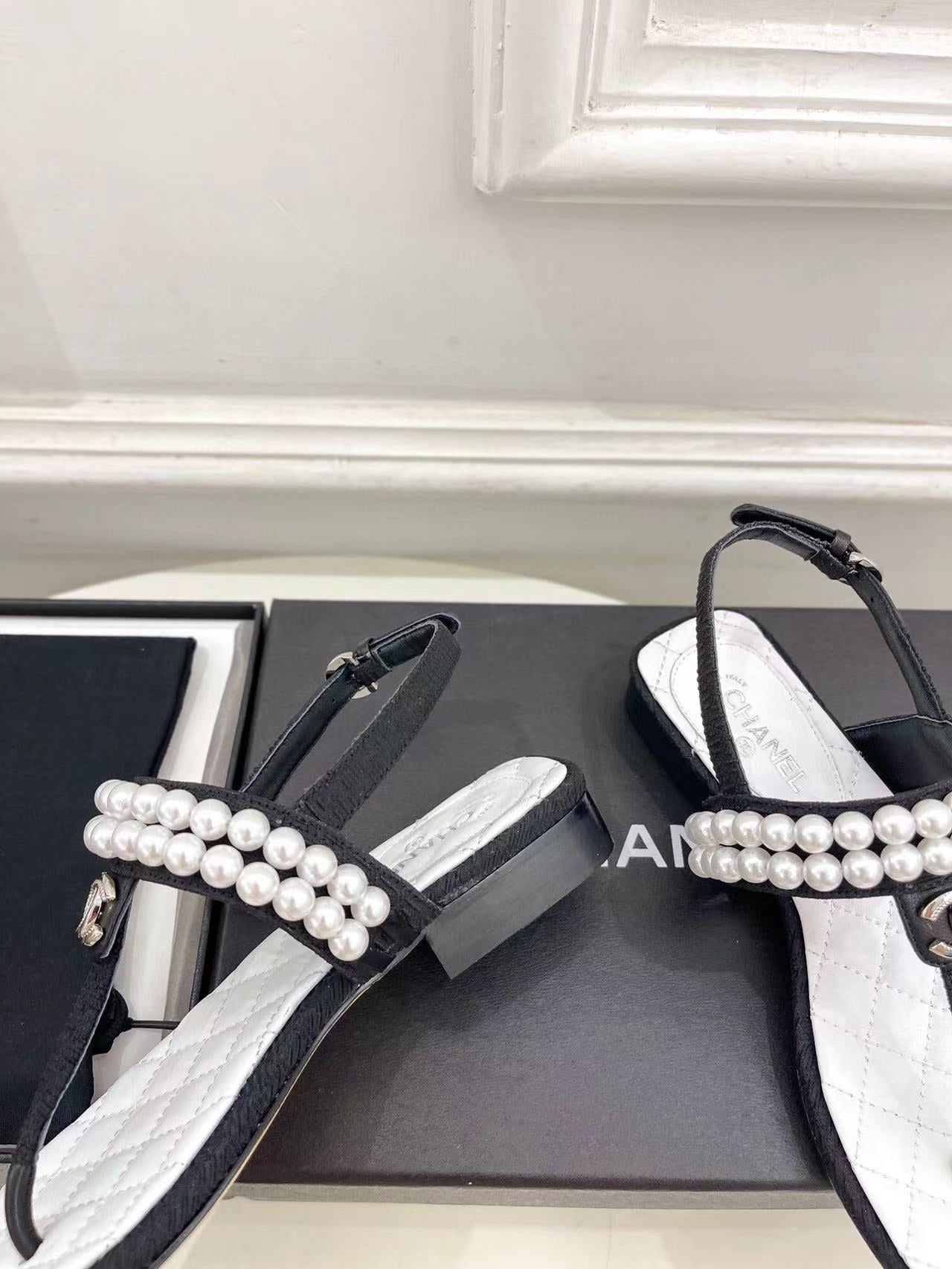 SLINGBACKS WHITE/Black LAMBS With PEARL