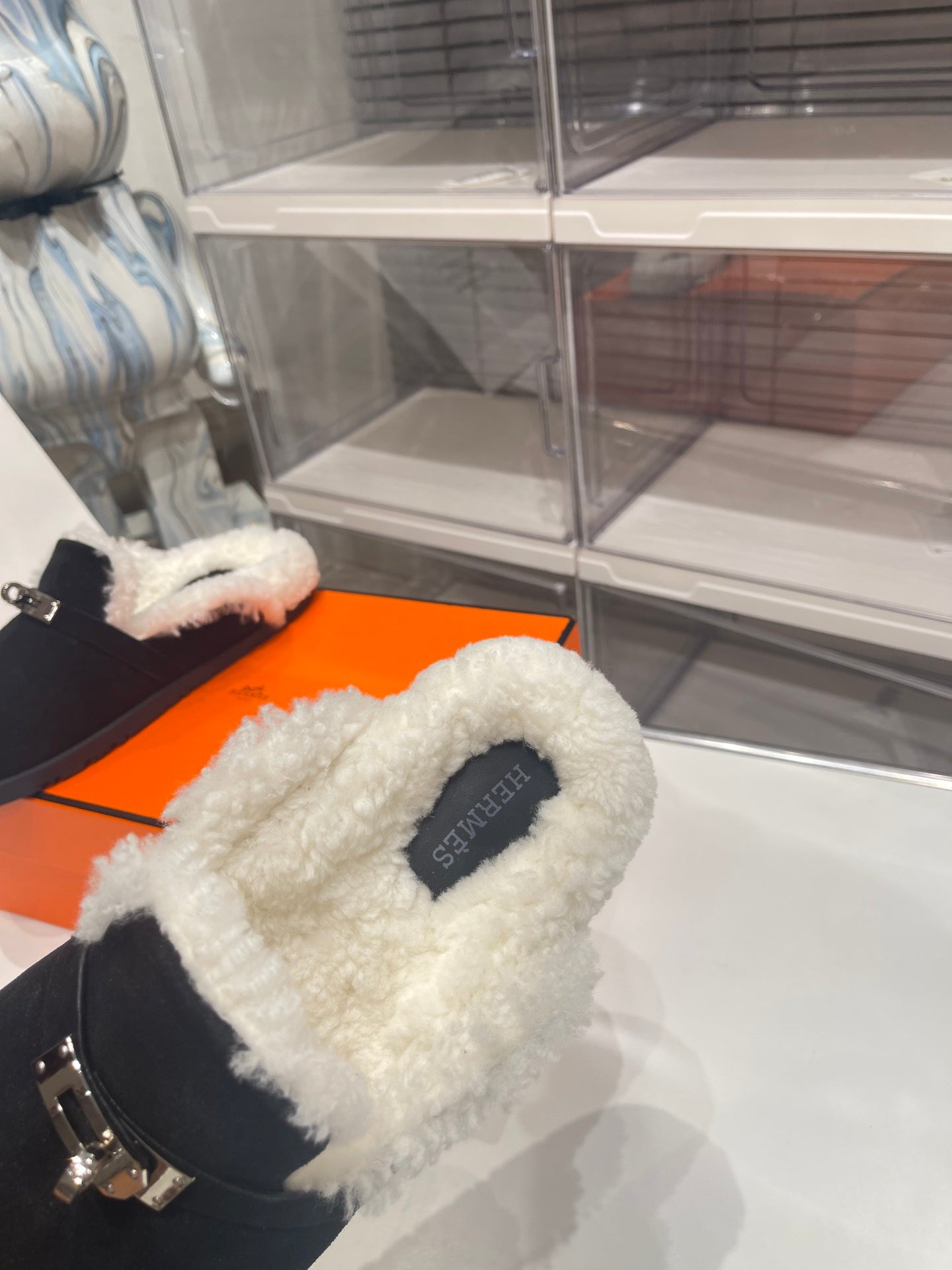 SLIP-ON MULE IN BLACK SUEDE AND SHEARLING LINING