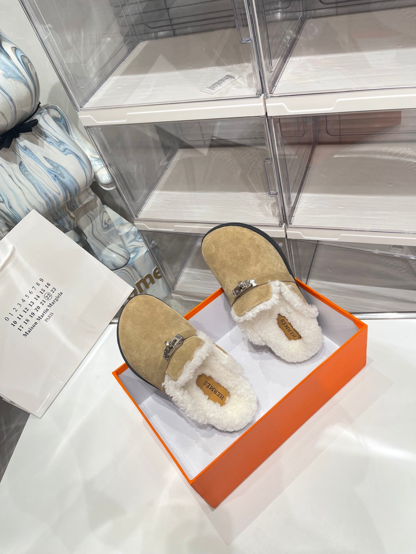SLIP-ON MULE IN TORTILLA BROWN SUEDE AND SHEARLING LINING