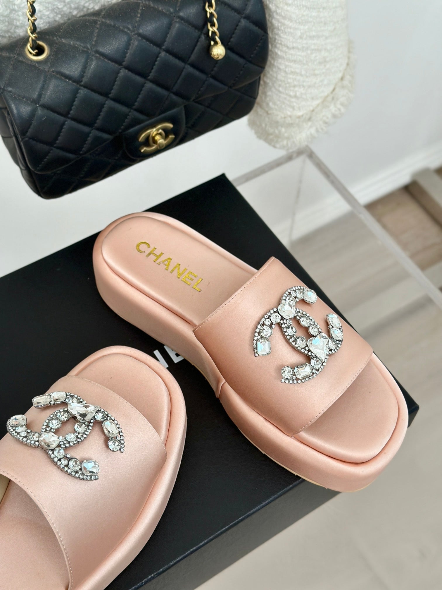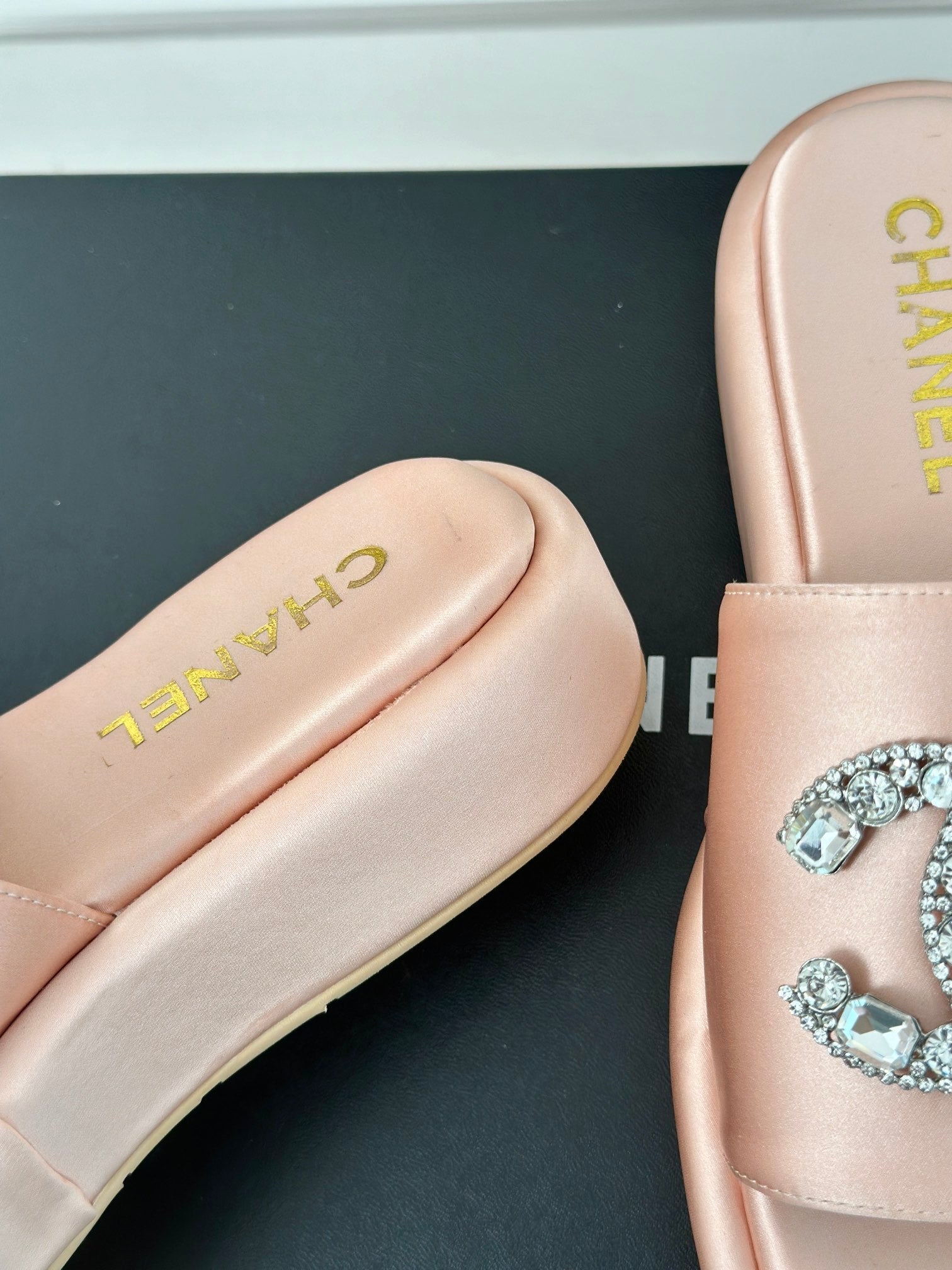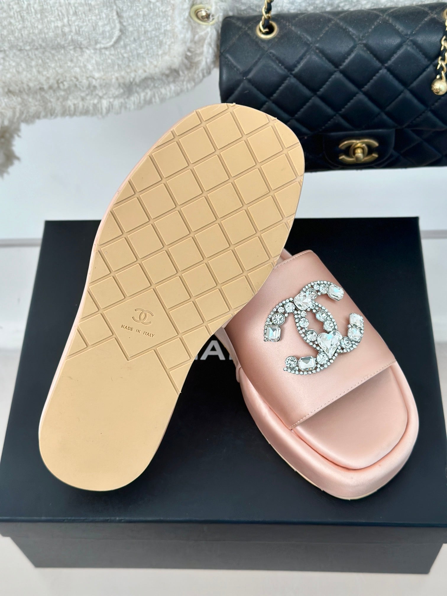SLIPPERS THICK SOLE IN LIGHT PINK SATIN
