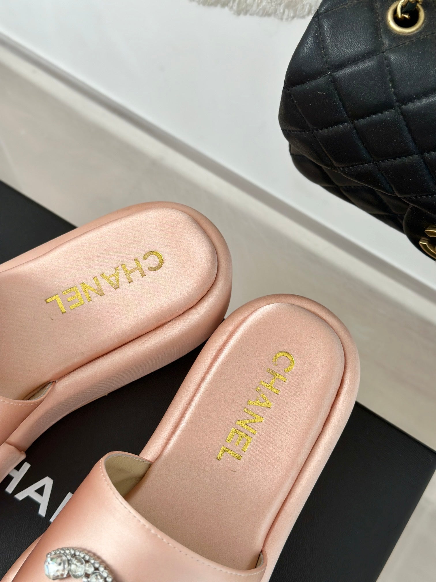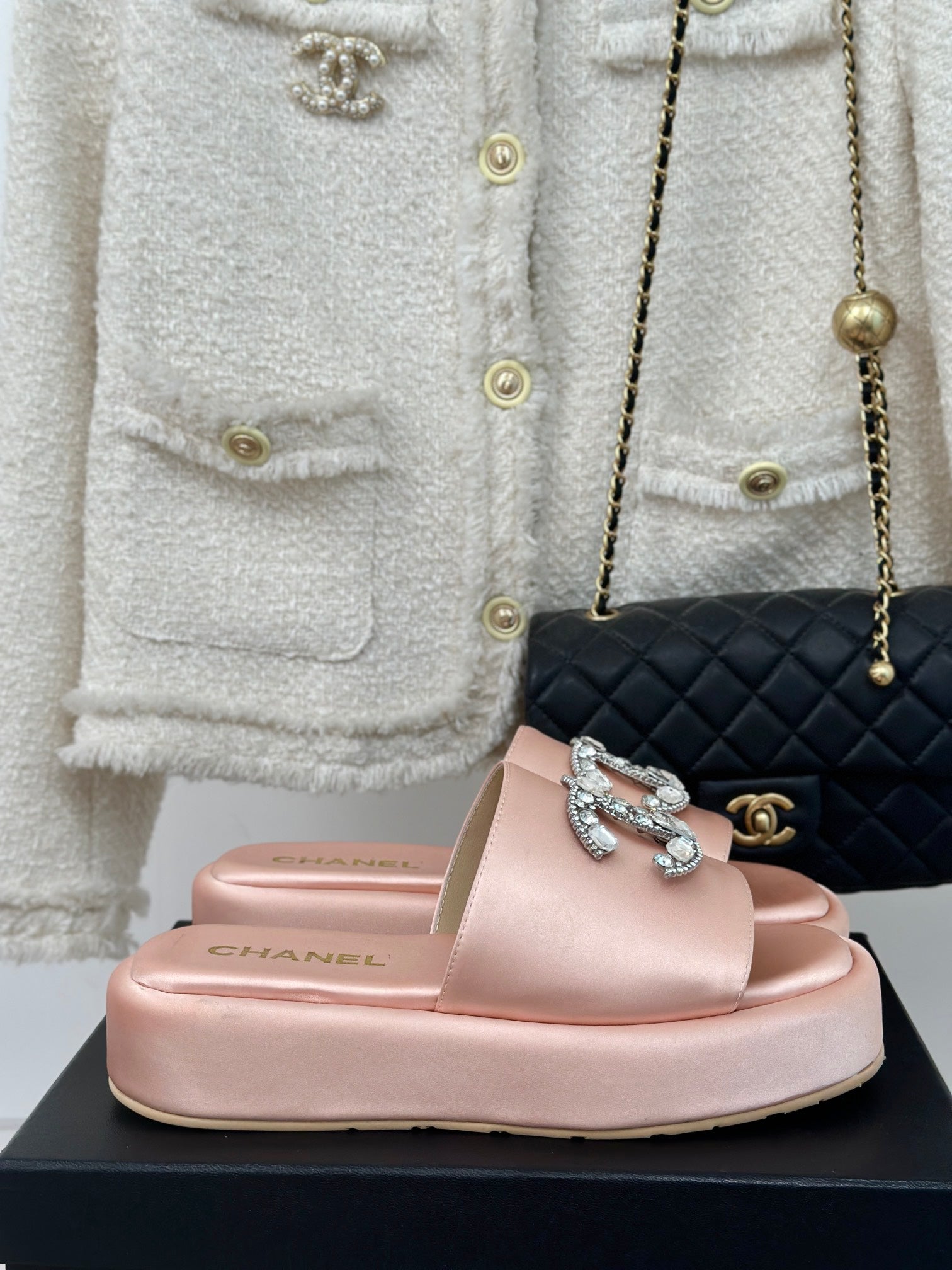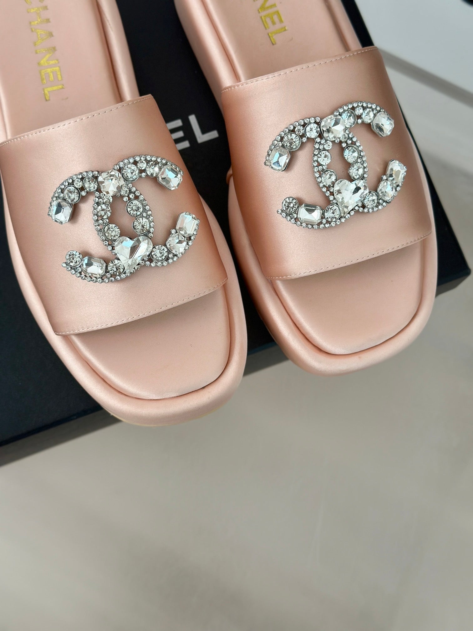 SLIPPERS THICK SOLE IN LIGHT PINK SATIN