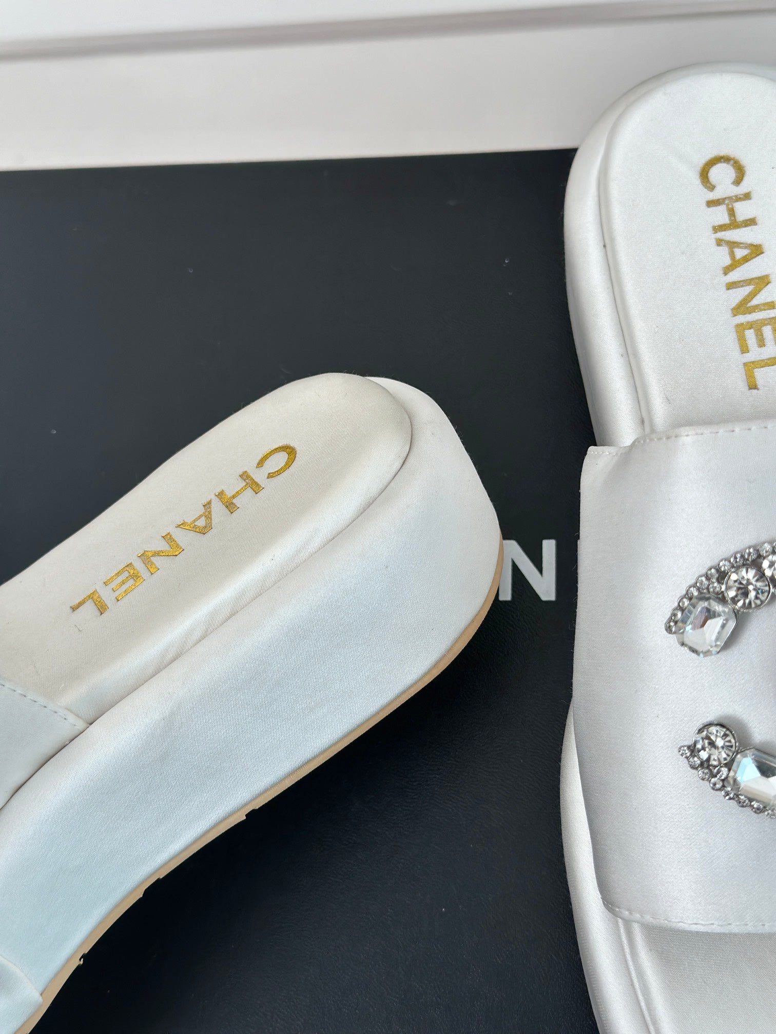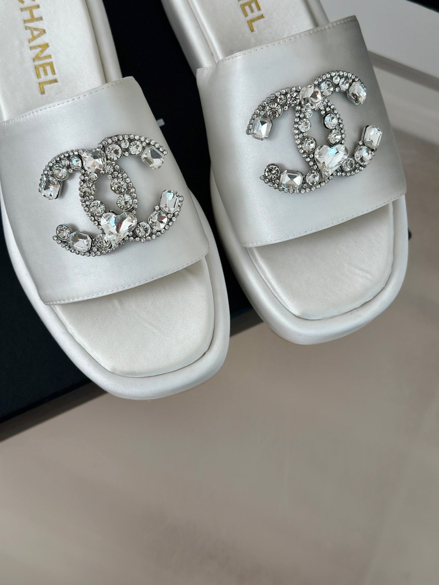 SLIPPERS THICK SOLE IN WHITE SATIN
