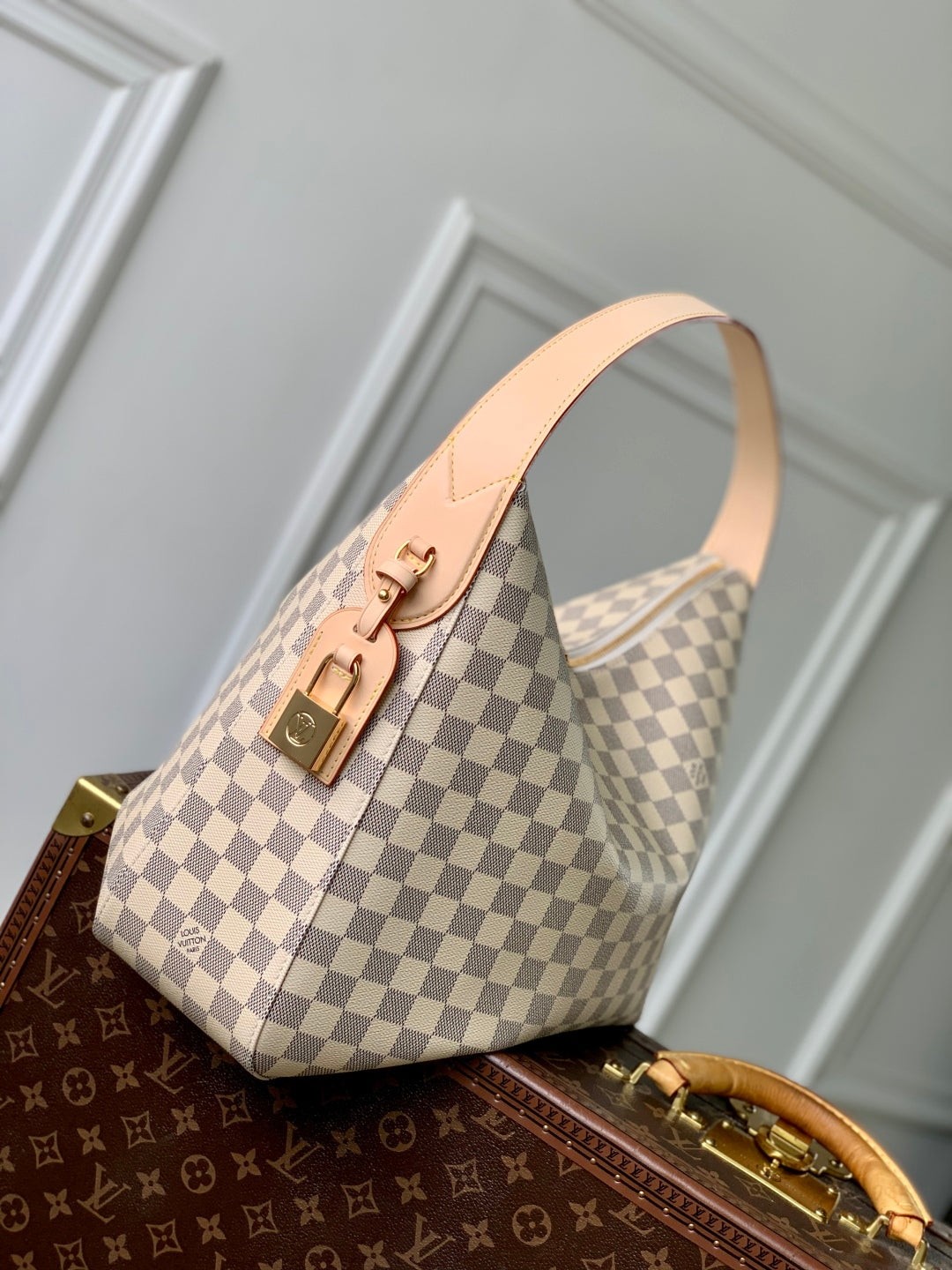 SLOUCHY PM 40 IN WHITE GREY CHECKERBOARD PATTERN DAMIER AZUR COATED CANVAS