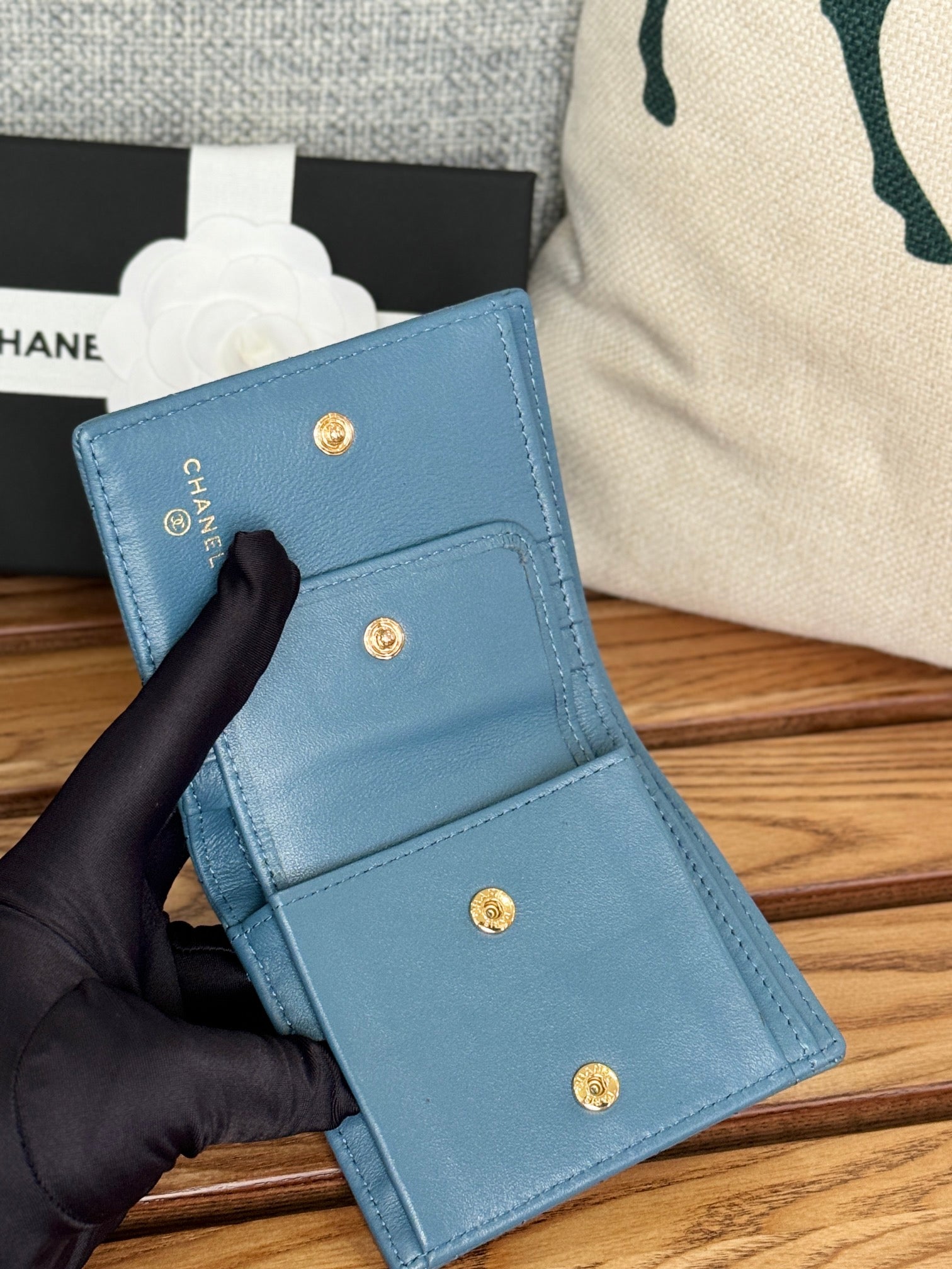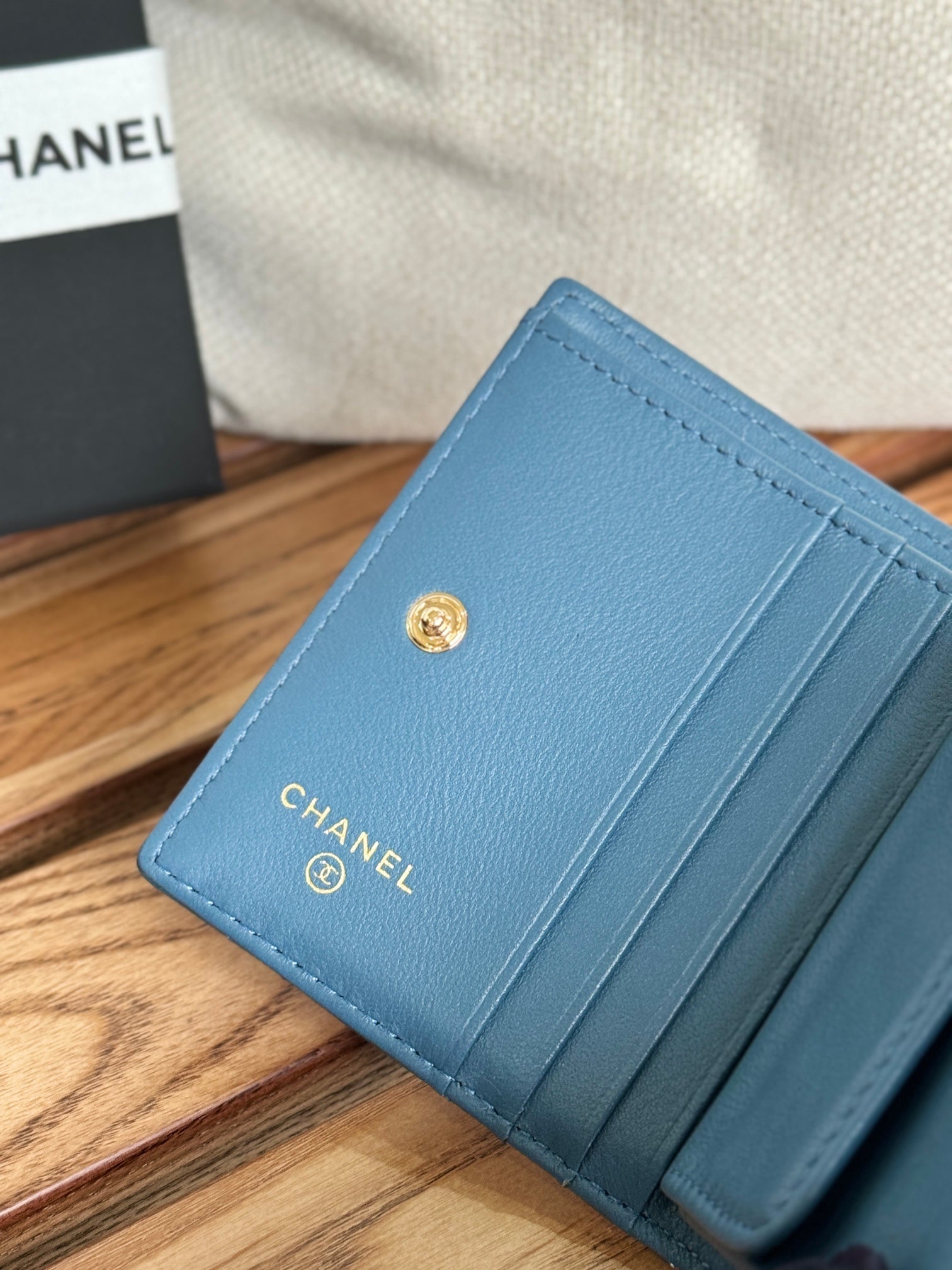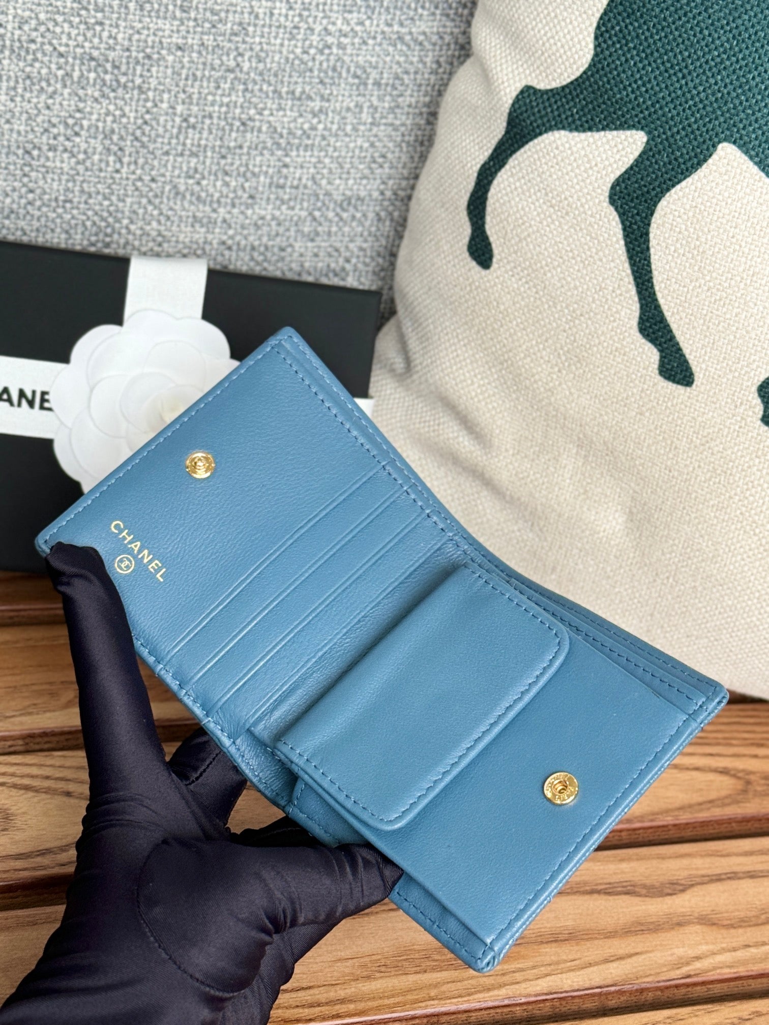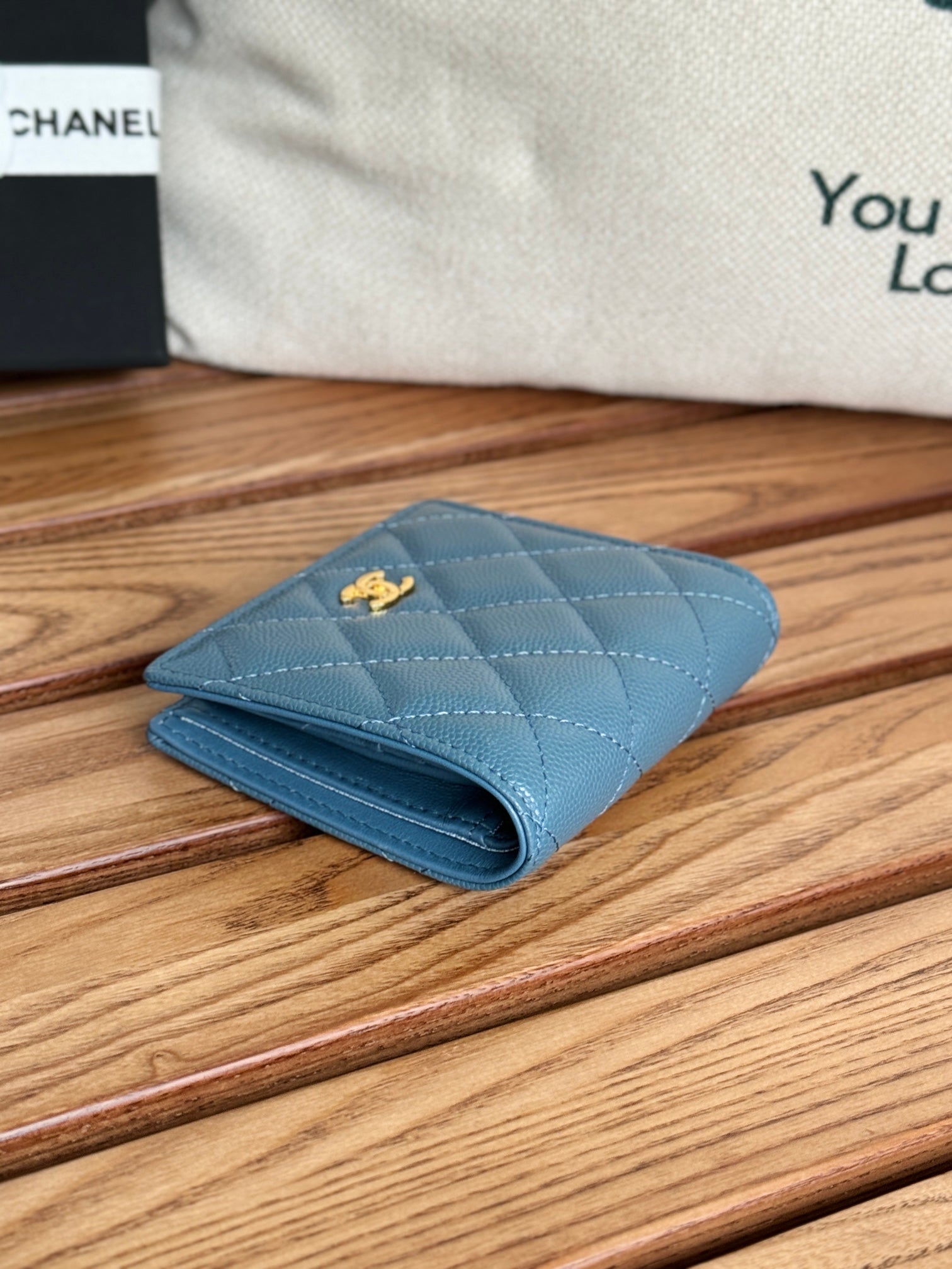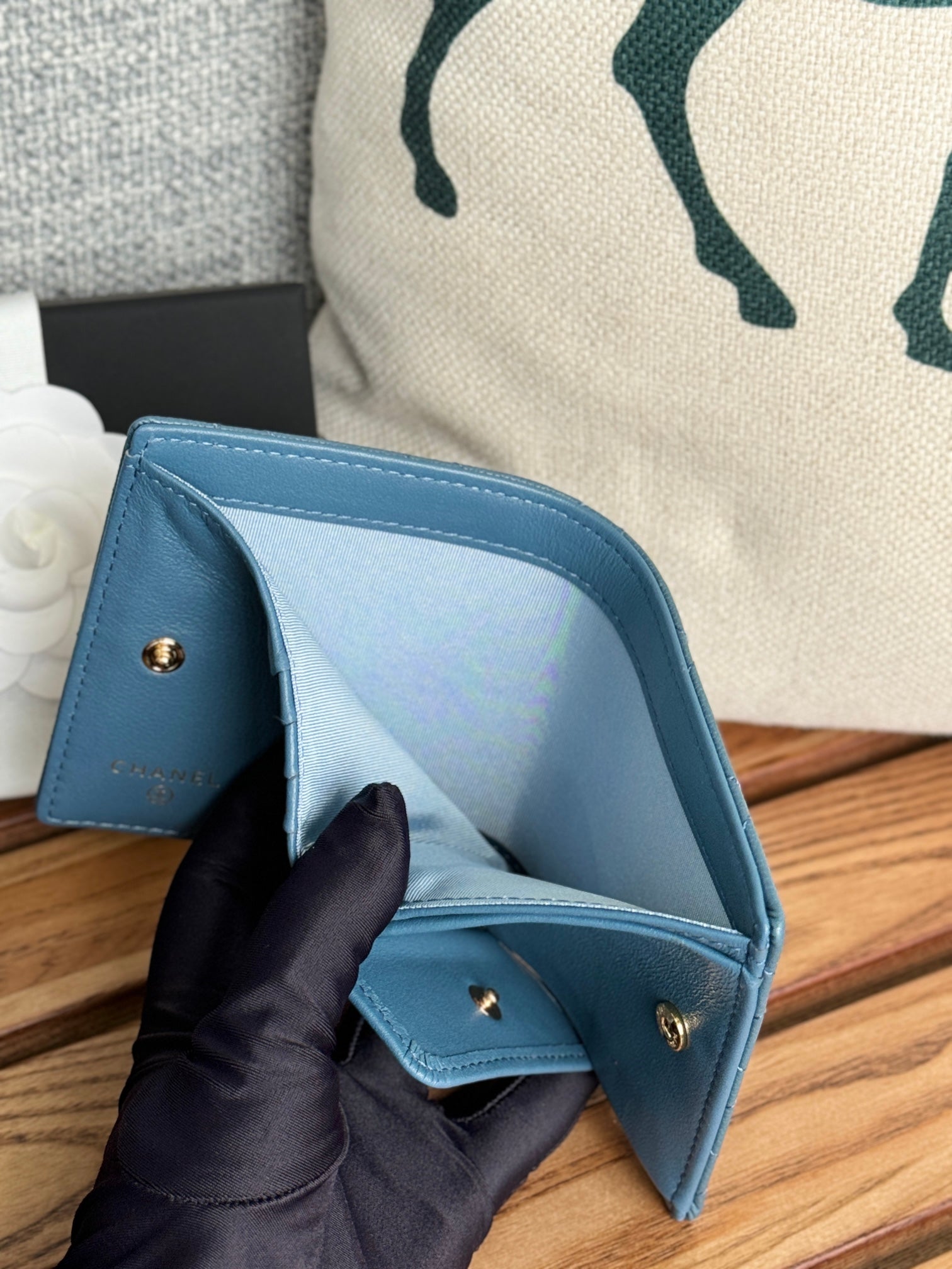 SMALL FLAP WALLET 12 IN NEPAL BLUE GRAINED CALFSKIN GOLD-TONE HARDWARE
