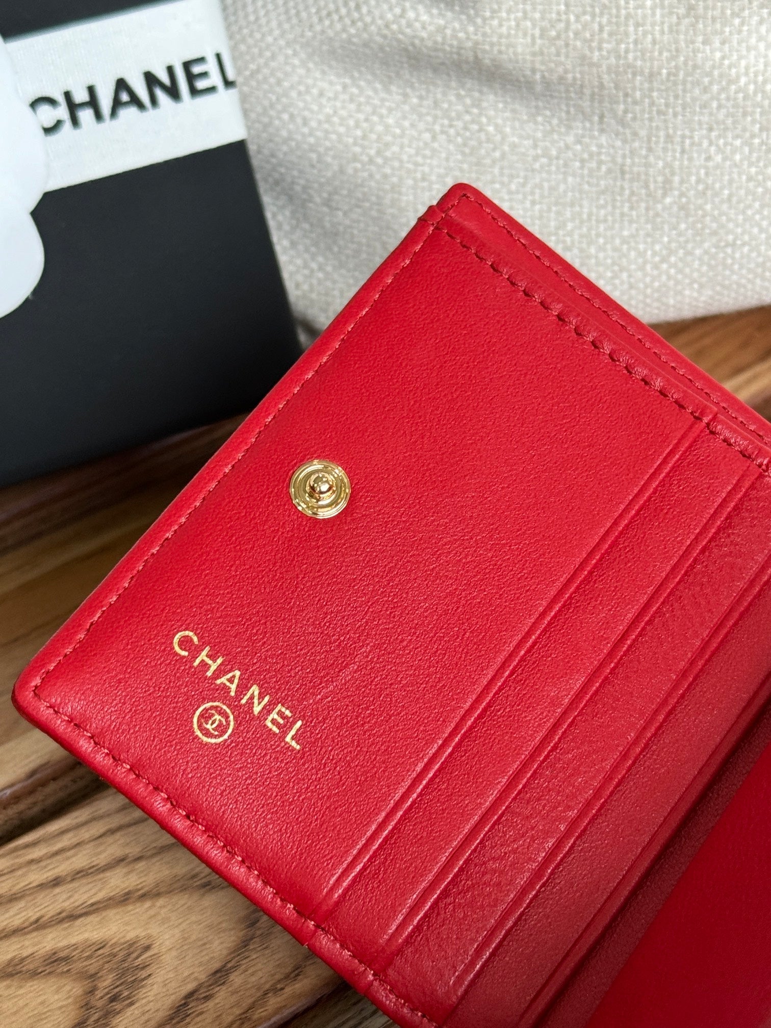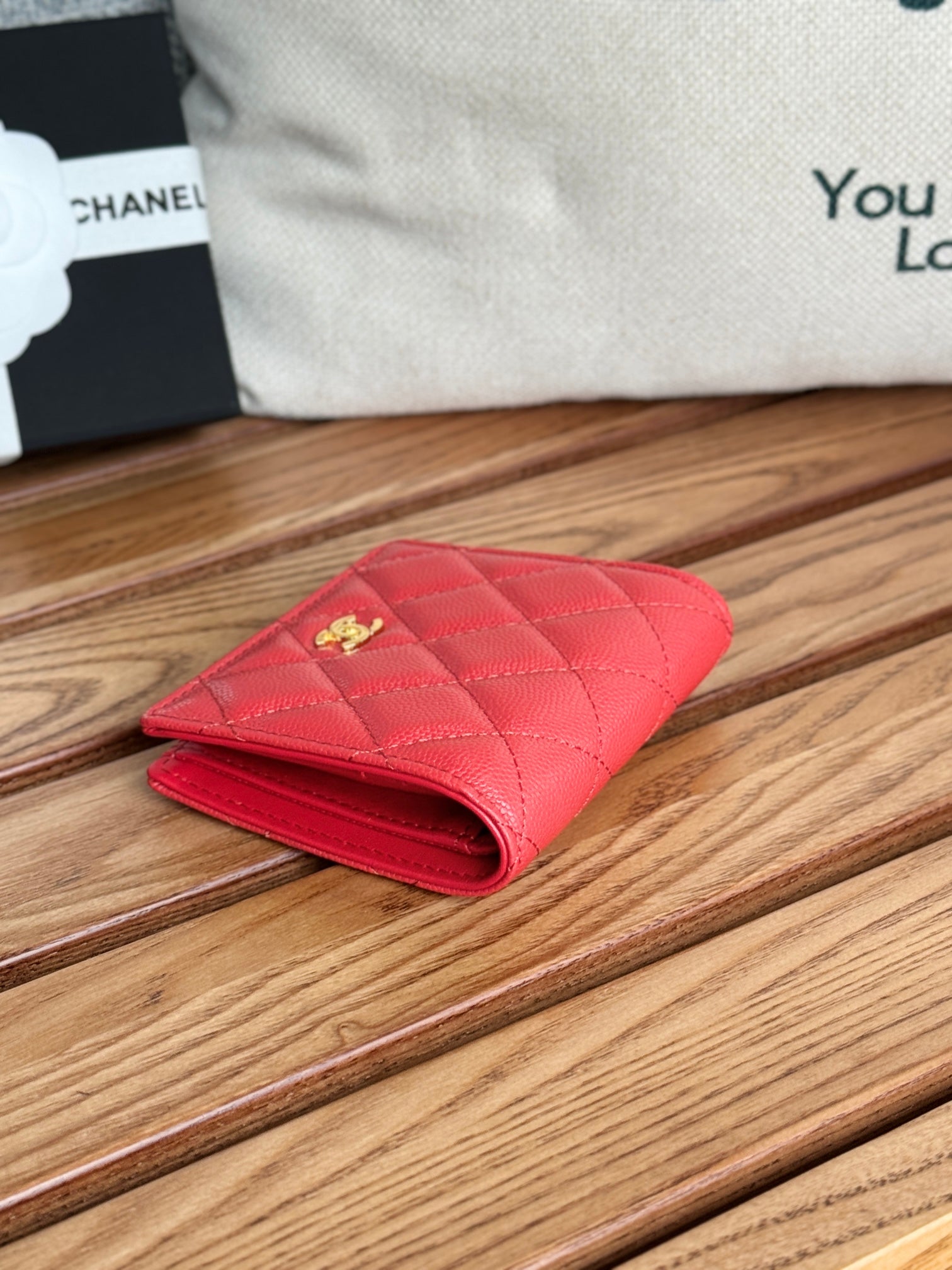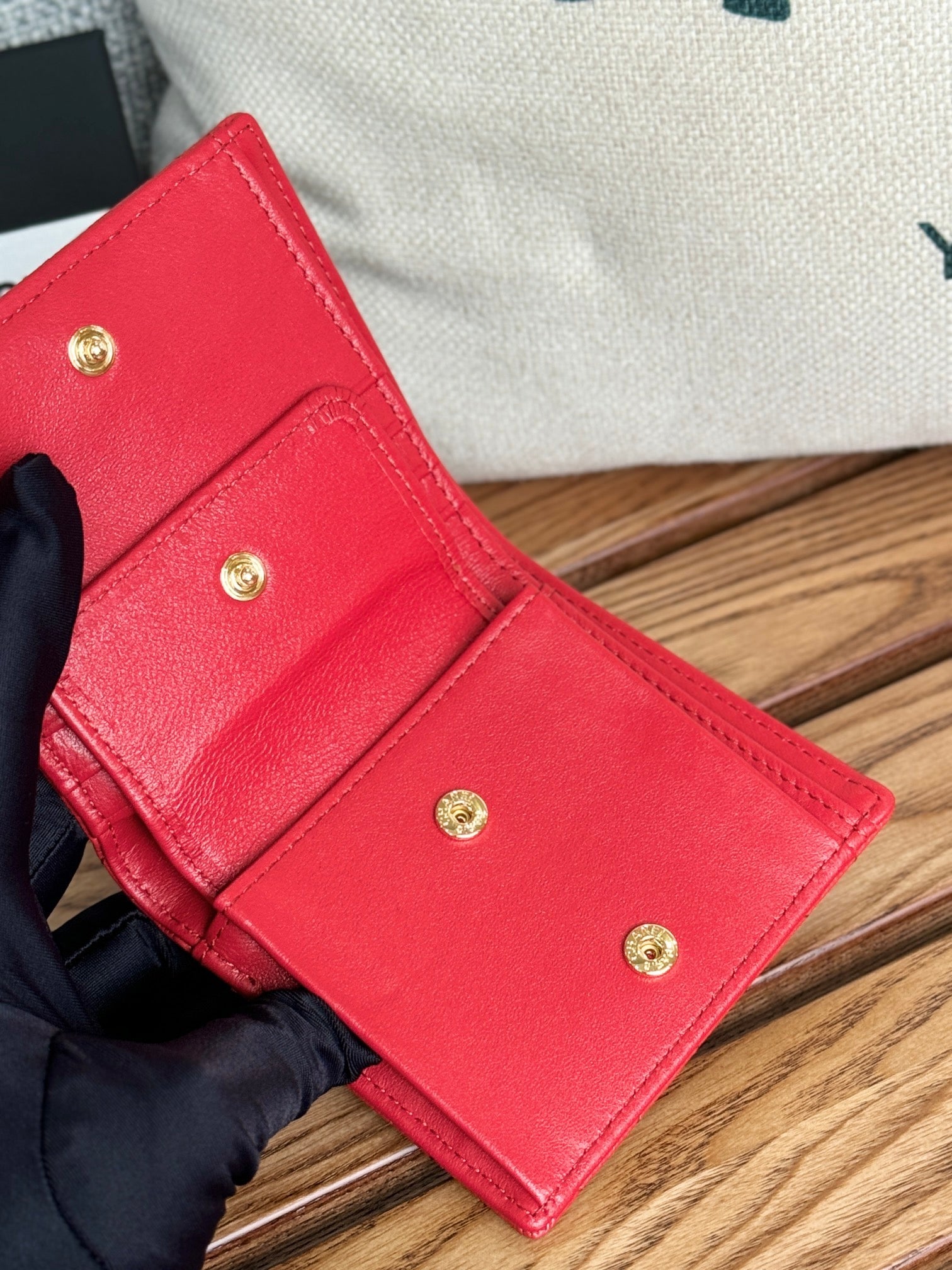 SMALL FLAP WALLET 12 IN RED GRAINED CALFSKIN GOLD-TONE HARDWARE