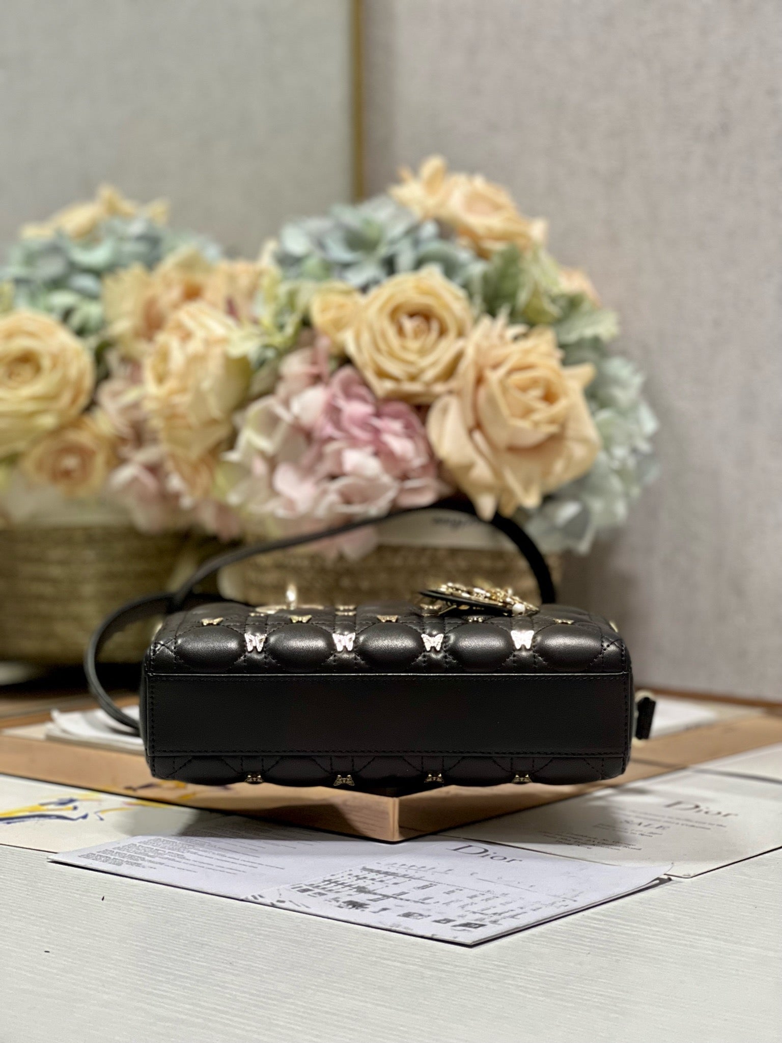 SMALL LADY D-JOY 22 BUTTERFLY STUD BLACK LAMBSKIN