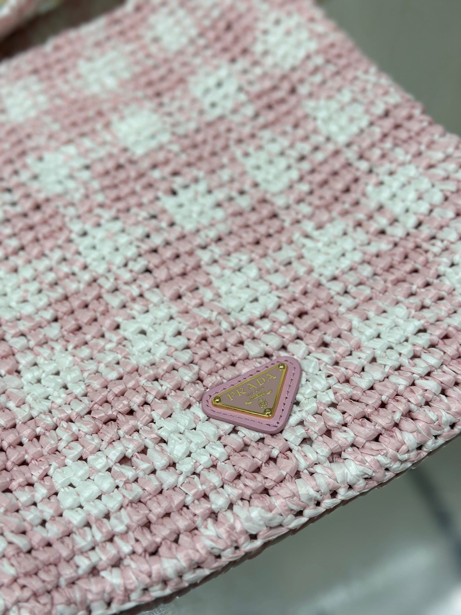 SMALL TOTE BAG 29 IN PINK MIX WHITE AND BLACK WOVEN RAFFIA