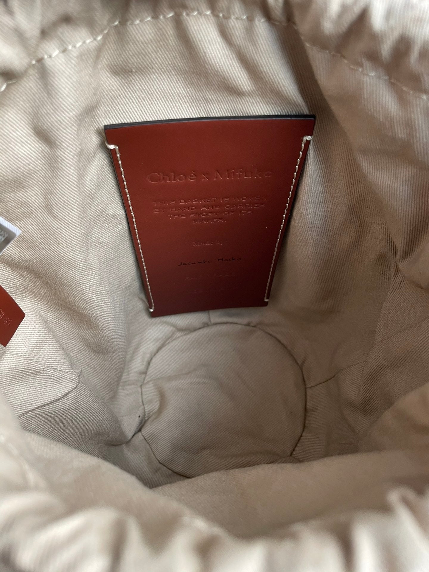 SMALL WOODY BASKET 17 IN NATURAL FIBERS BEIGE WEBBING DARK BROWN CALFSKIN