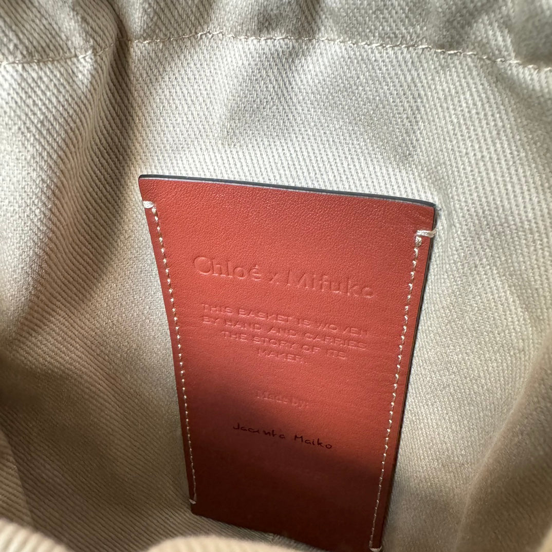 SMALL WOODY BASKET 17 IN NATURAL FIBERS BLACK WEBBING BROWN CALFSKIN