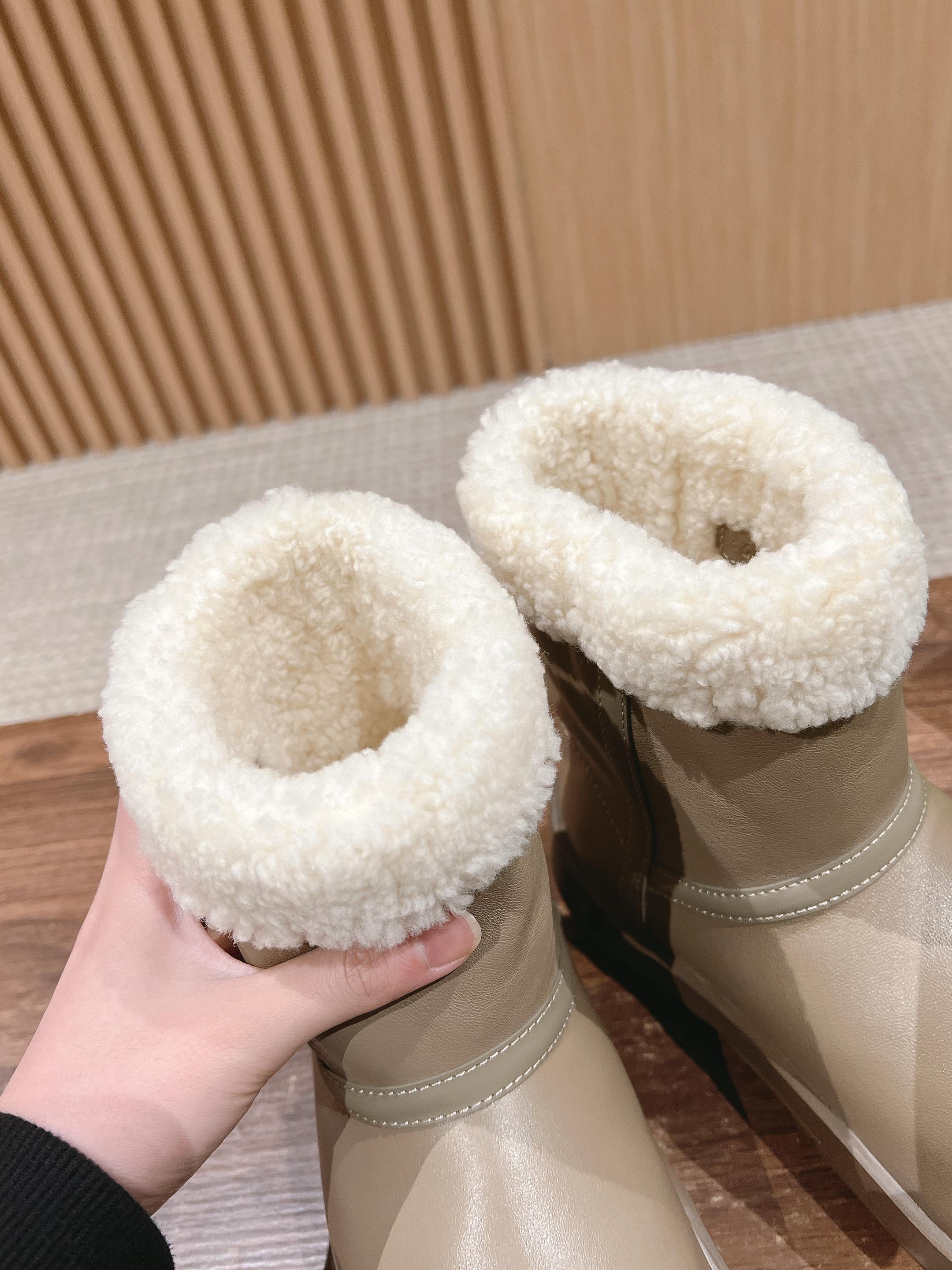SNAP ANKLE BOOT IN KHAKI BROWN LAMBSKIN AND SHEARLING LINING