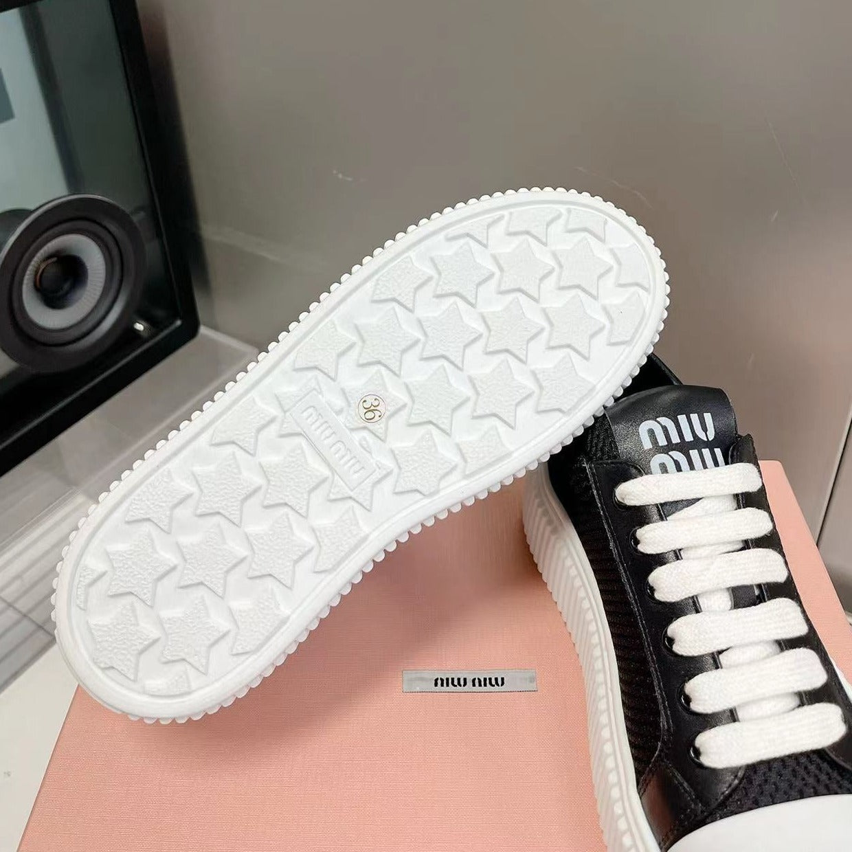 SNEAKERS THICK-SOLED BLACK MESH COWHIDE