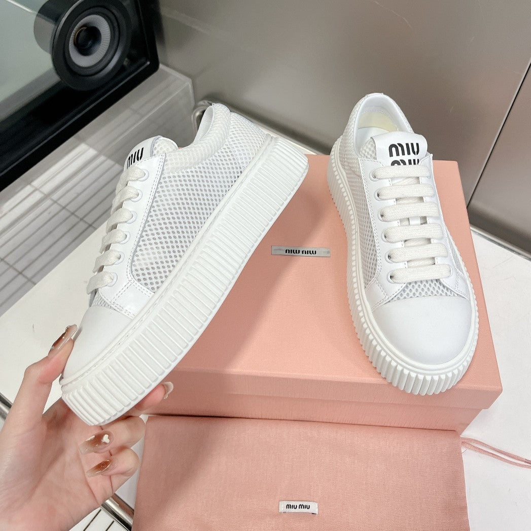 SNEAKERS THICK-SOLED LIGHT GRAY MESH COWHIDE