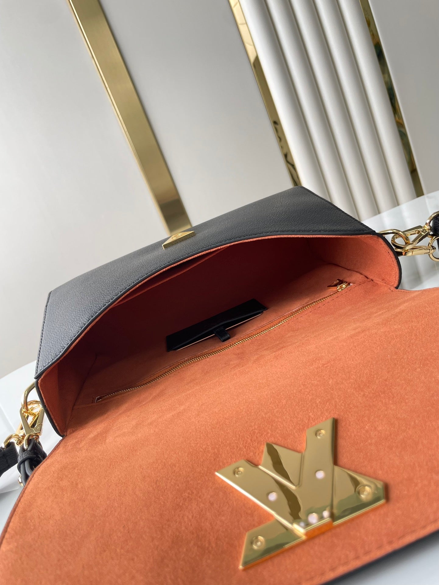 SOFT TWIST 27 IN BLACK CALFSKIN GOLD LOGO