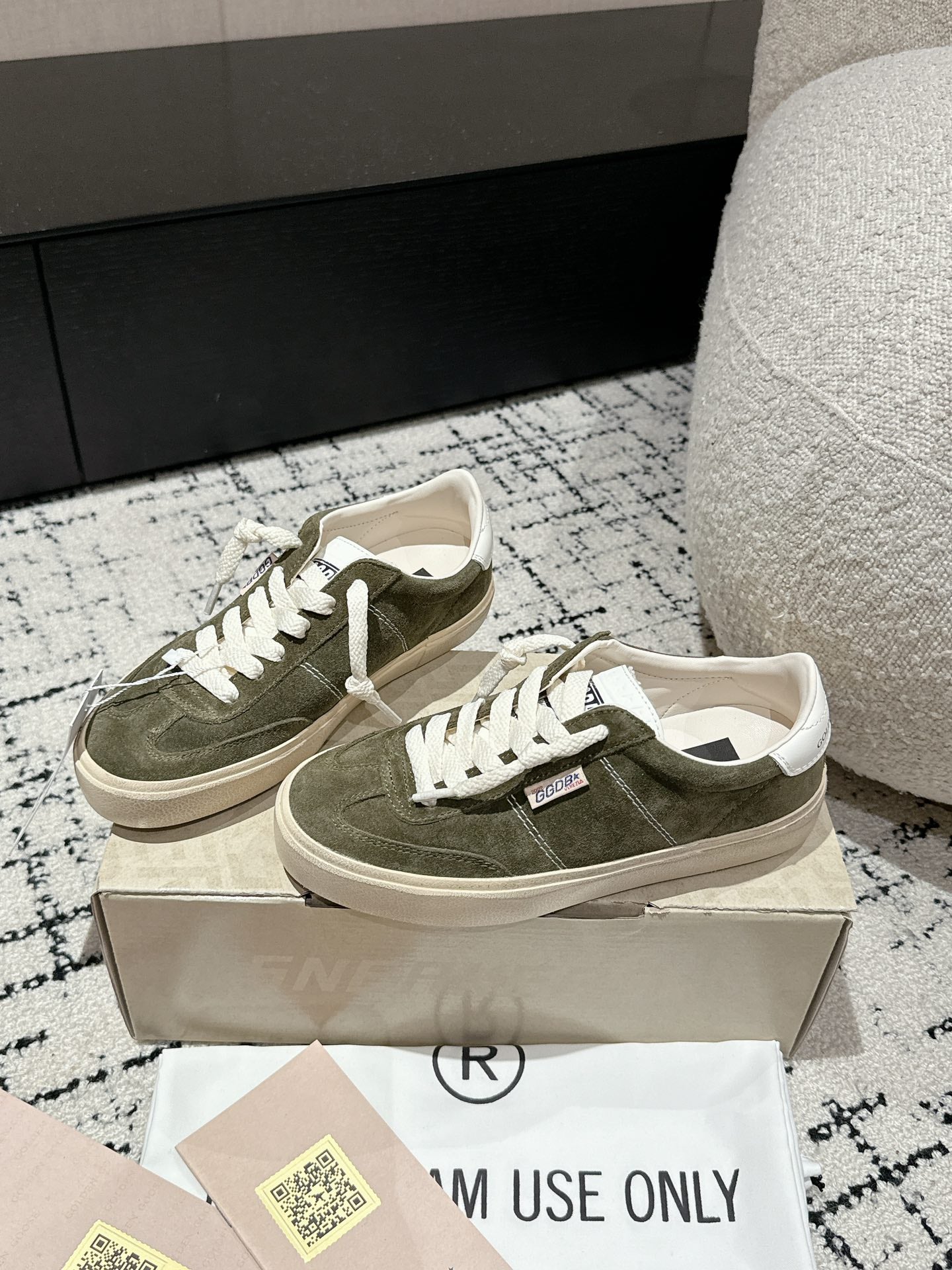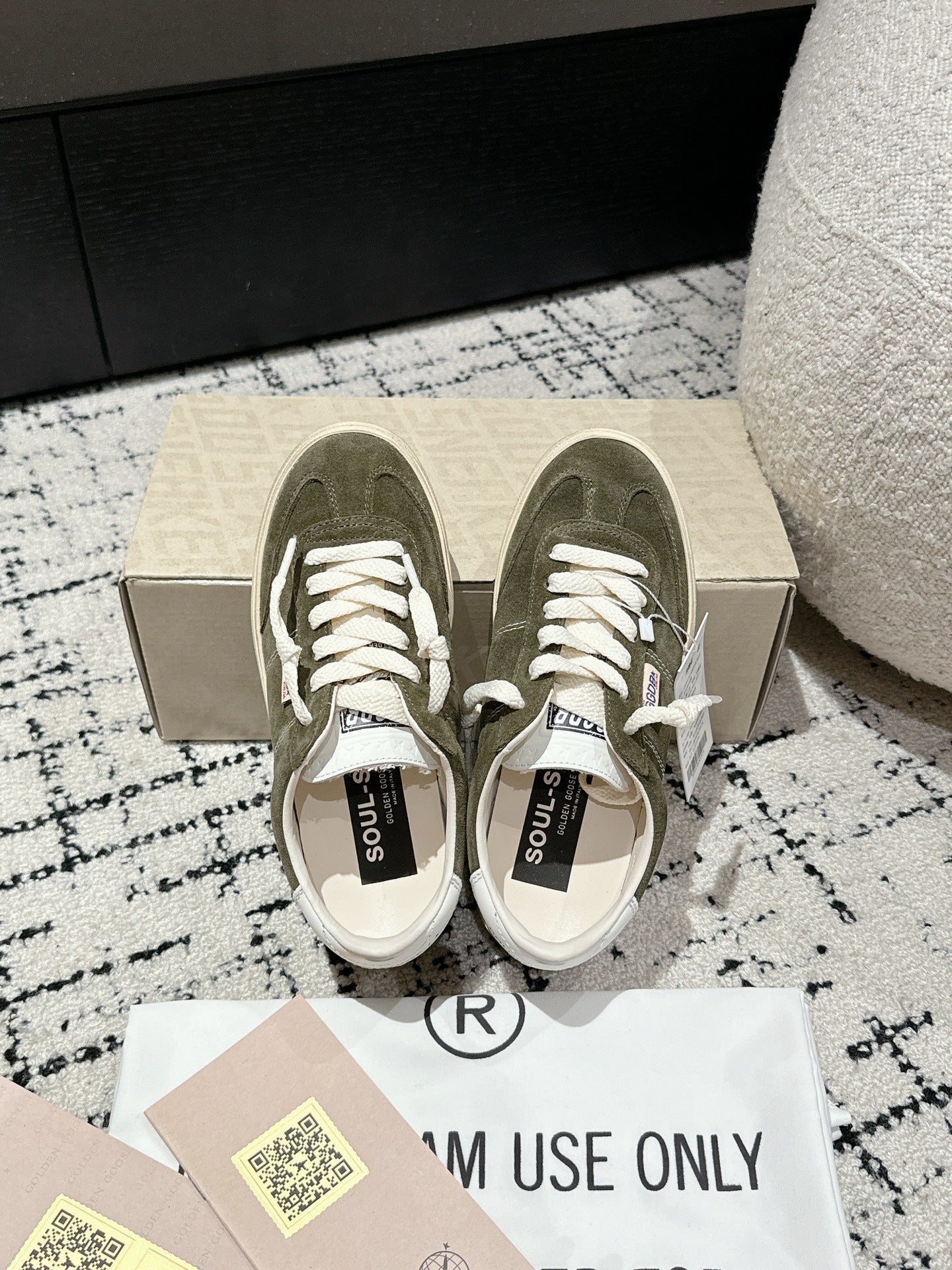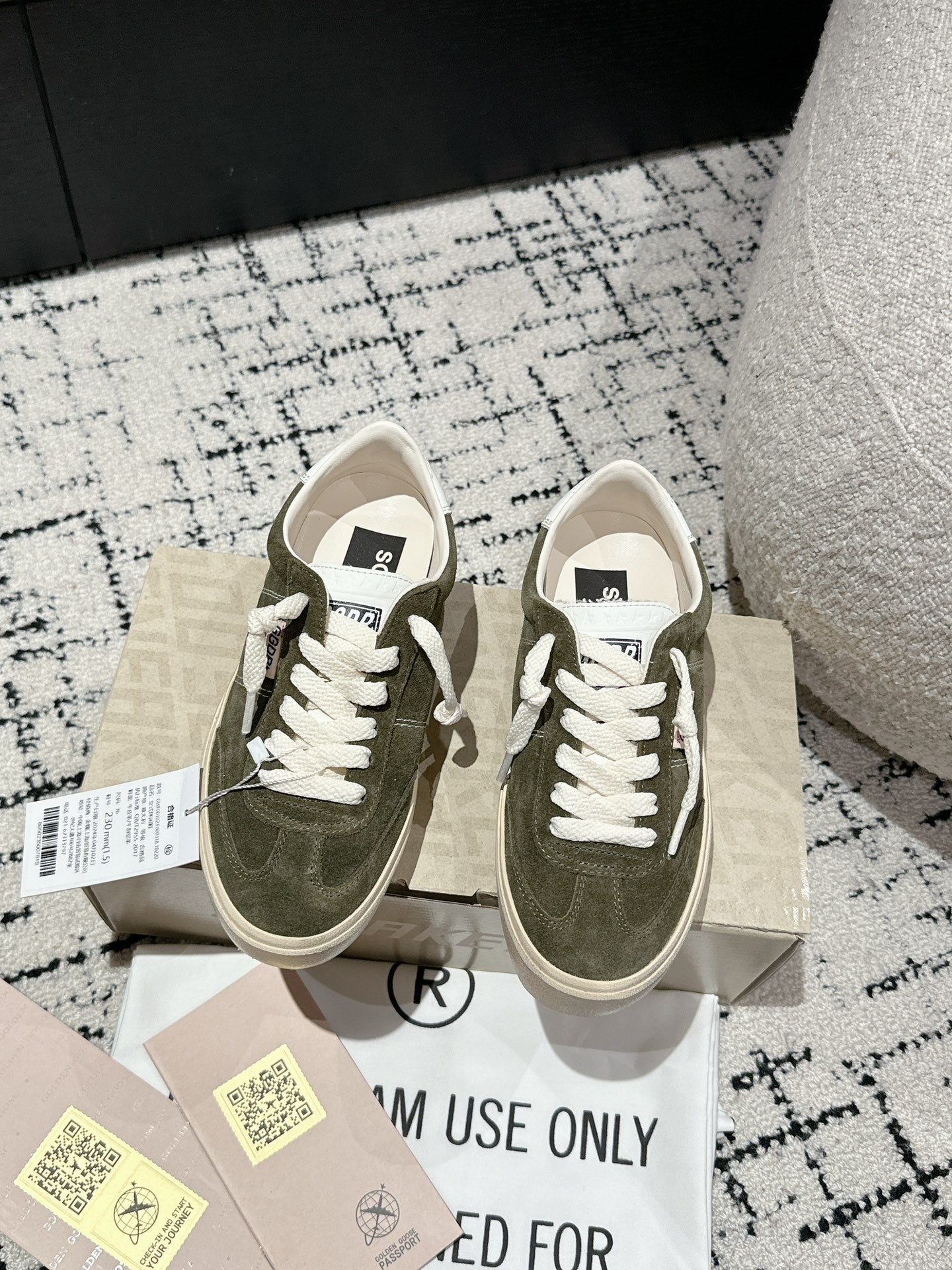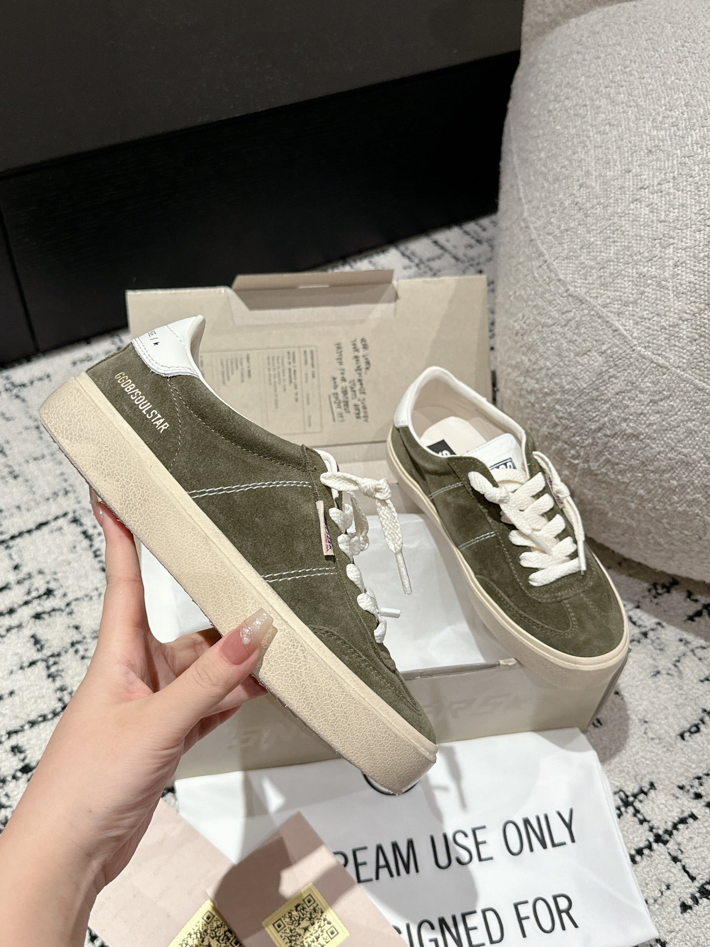 SOUL STAR SNEAKERS IN KELP GREEN SUEDE WHITE HEEL TAB