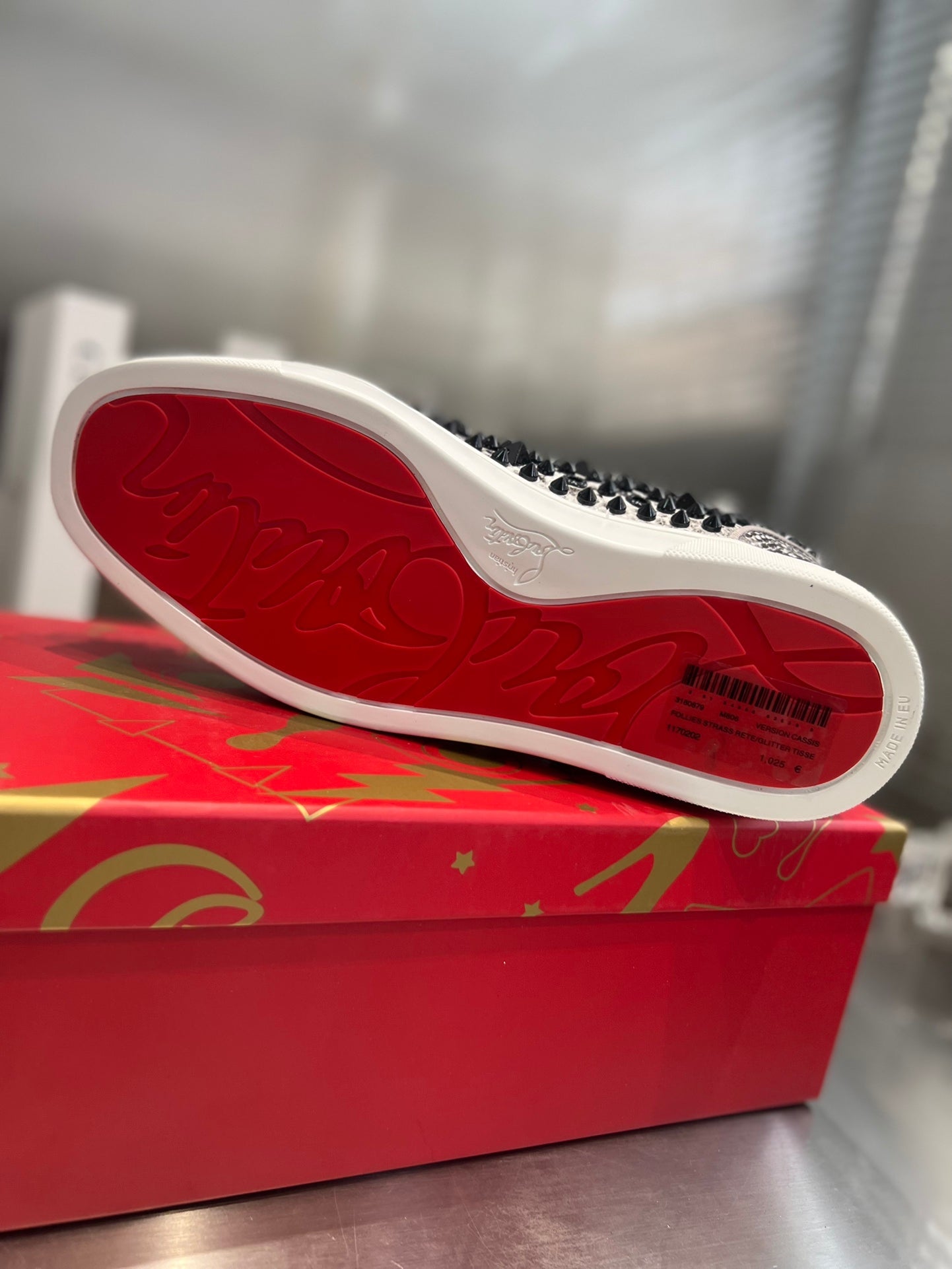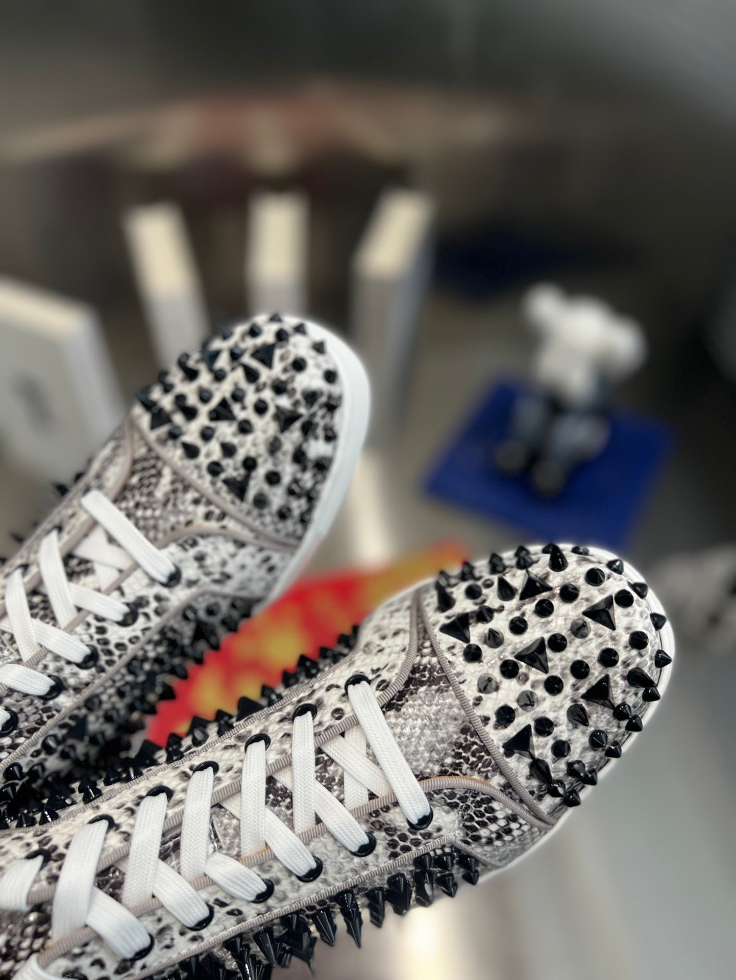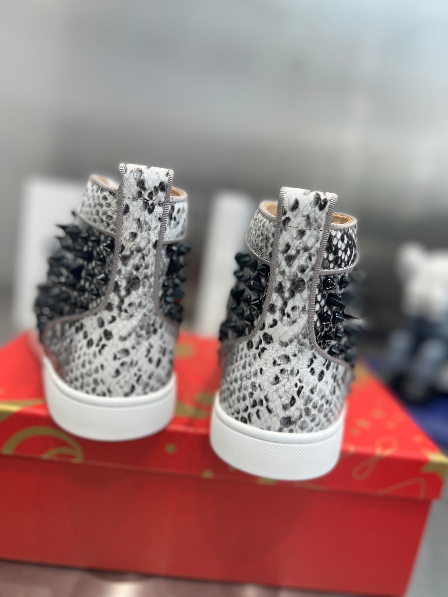 SPIKE STUDDED HIGH-TOP SNEAKERS IN WHITE MIX BLACK CALFSKIN