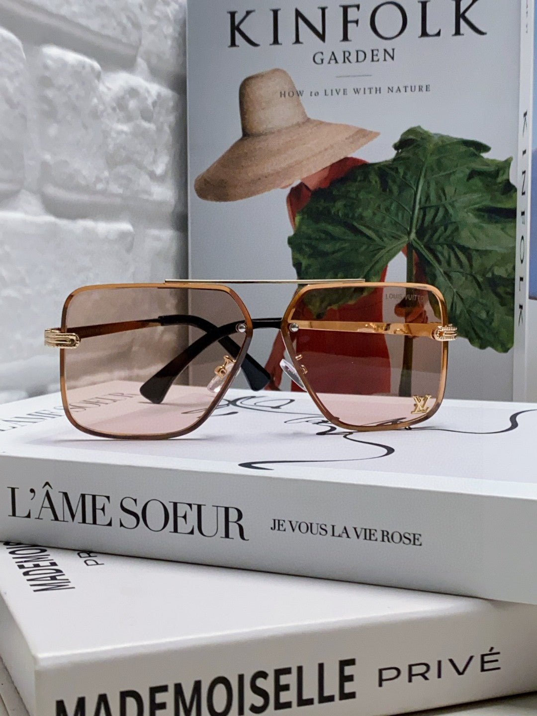 SQUARE SUNGLASSES 570262 IN GOLD METAL LIGHT BROWN LENS