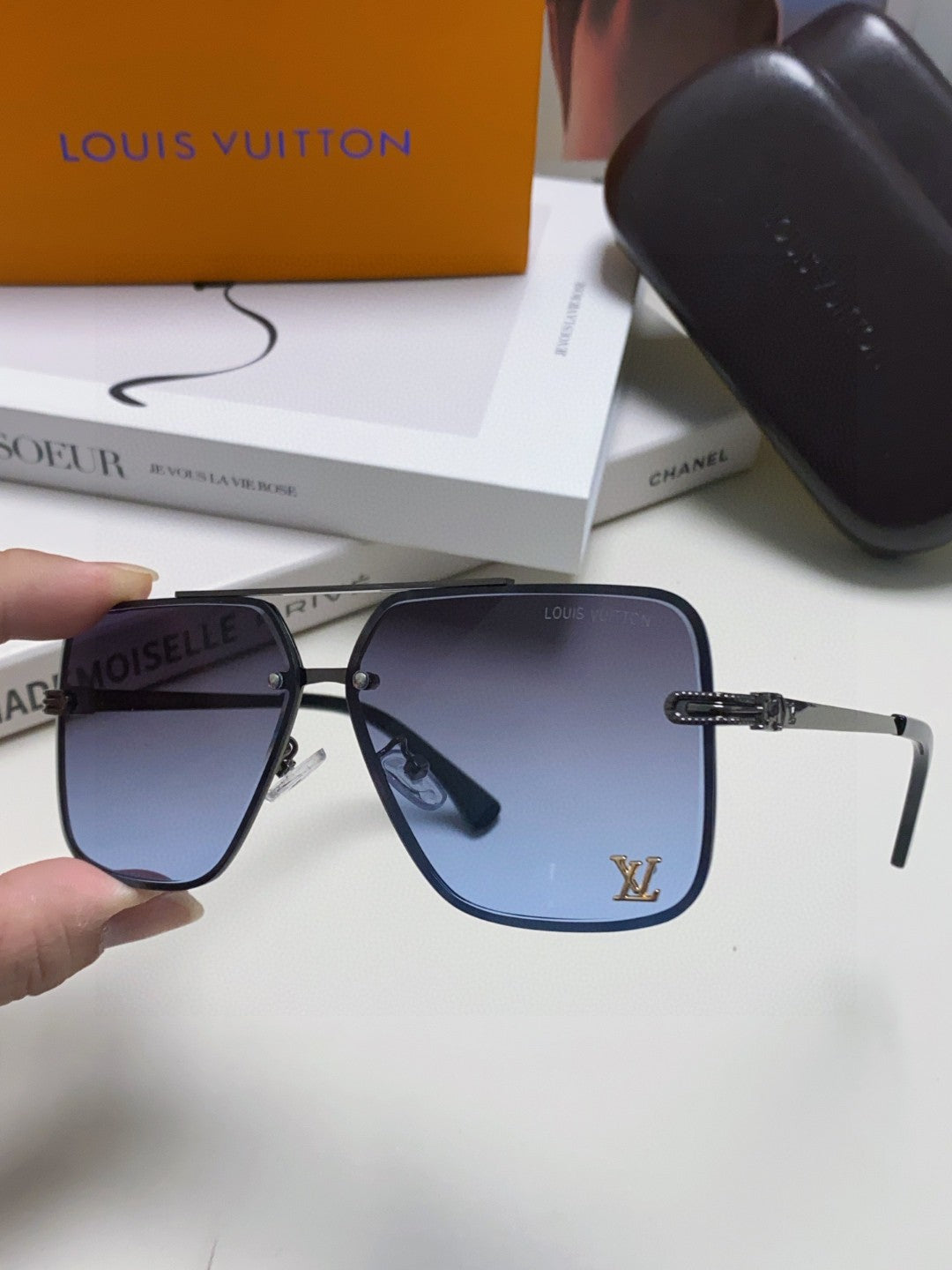 SQUARE SUNGLASSES 570263 IN BLACK METAL GREY SMOKE LENS