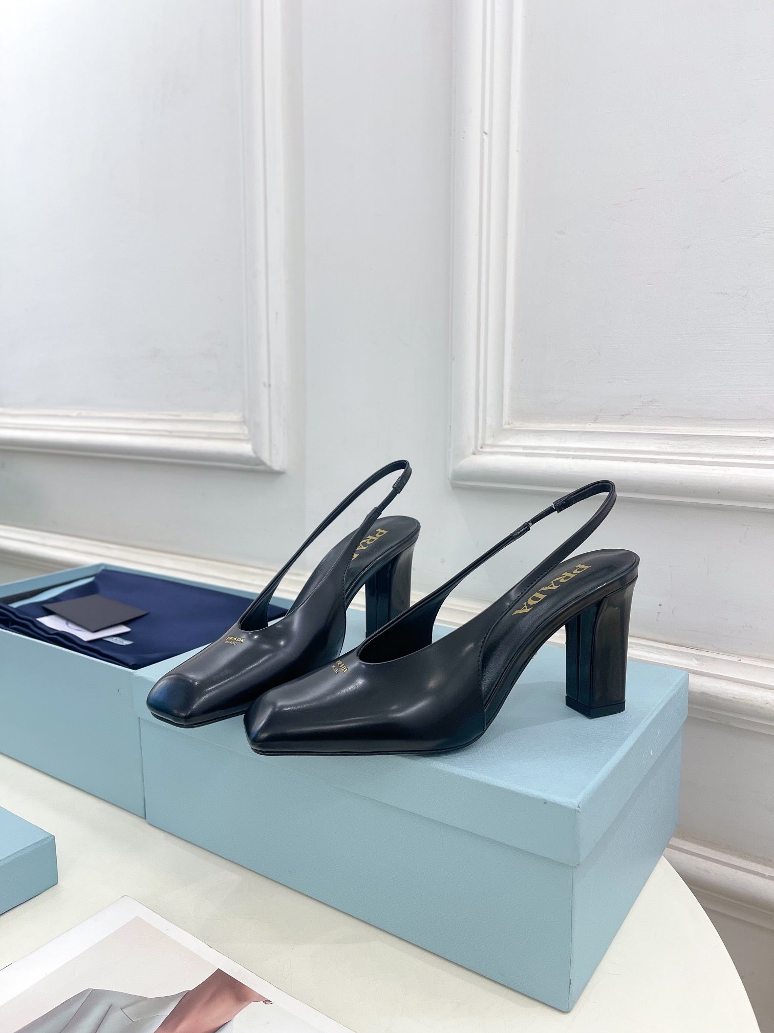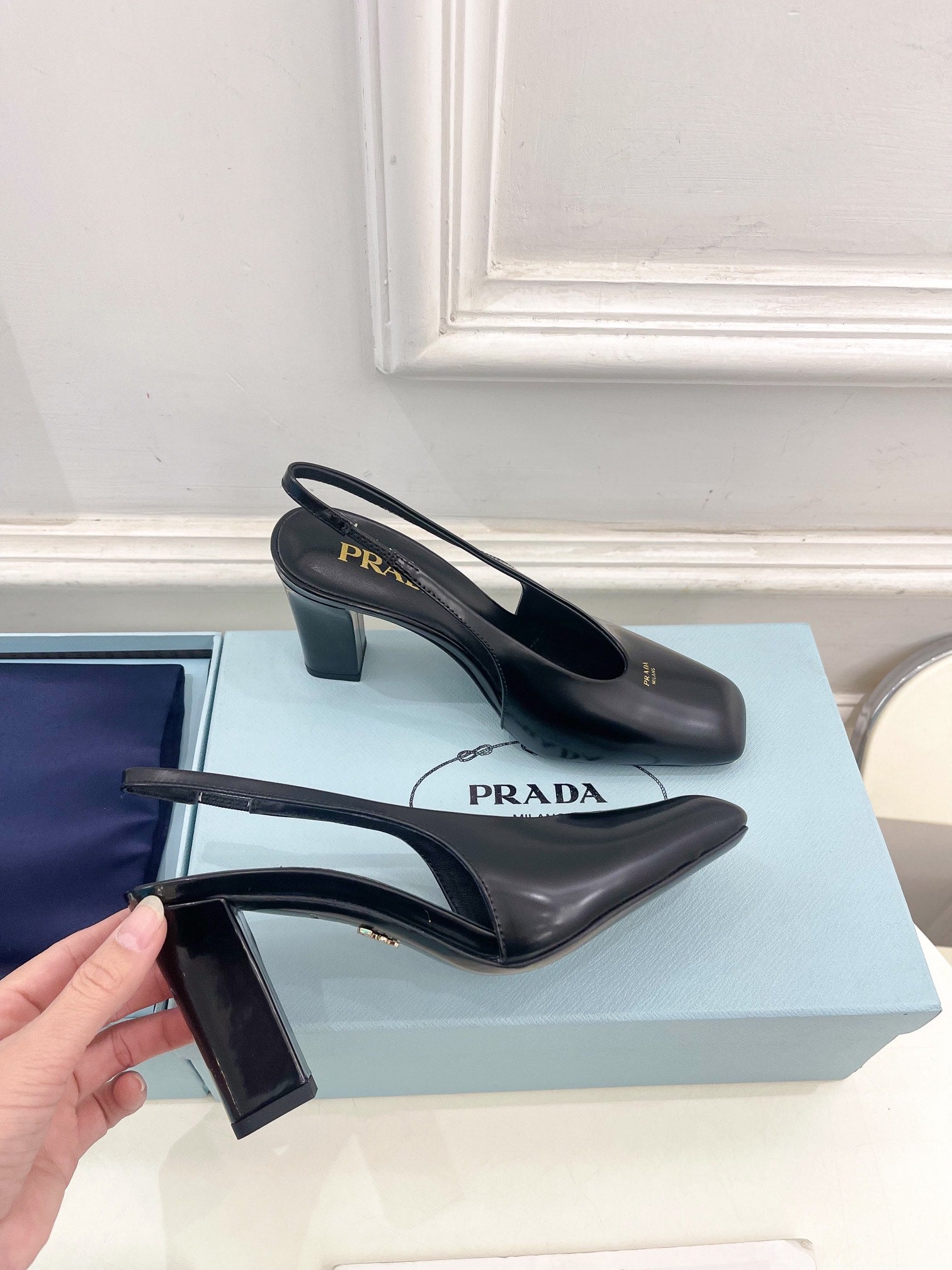 SQUARE TOE SLINGBACK PUMPS IN BLACK SMOOTH LAMBSKIN