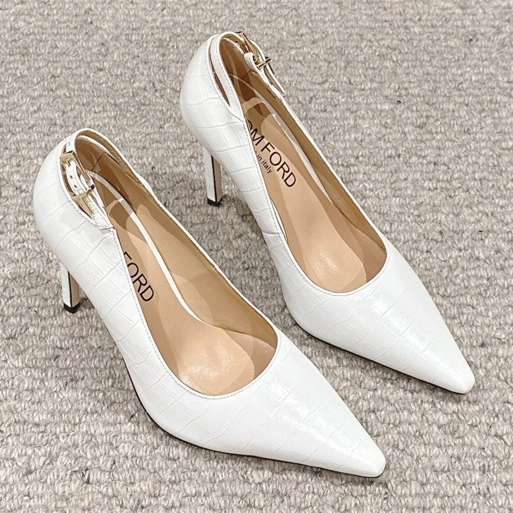 STAMPED CROCODILE LEATHER ANGELINA PUMP WHITE