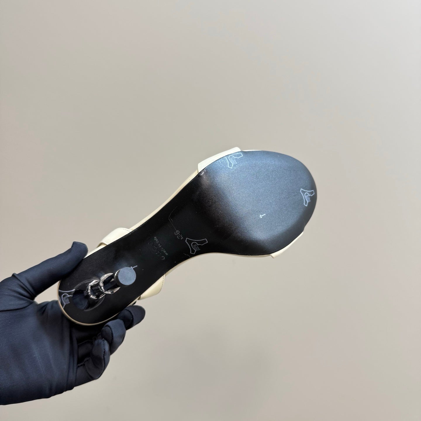 STRAP HIGH BAMBOO-EFFECT HEEL SANDAL IN CREAM PATENT CALFSKIN