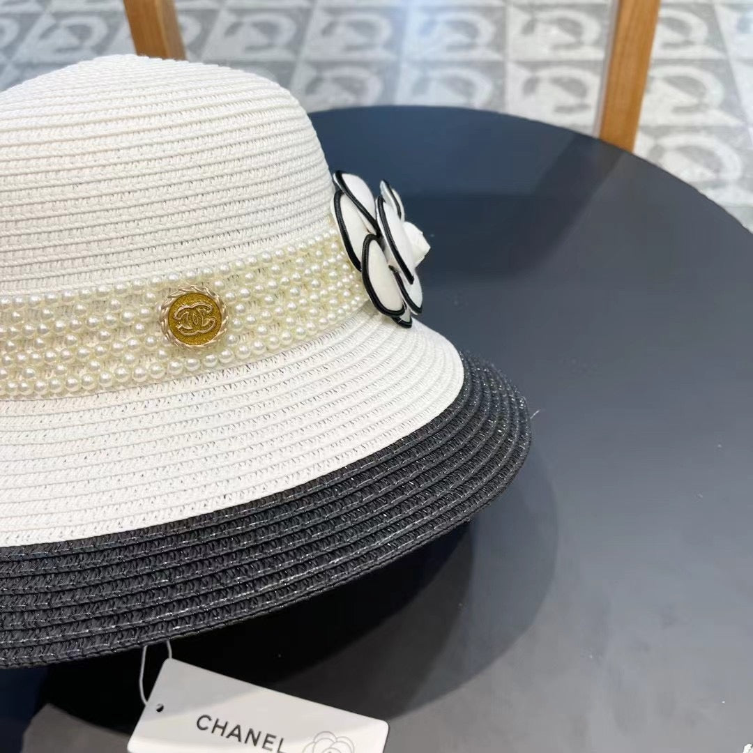 STRAW BUCKET HAT WHITE WITH PEARLS 672764