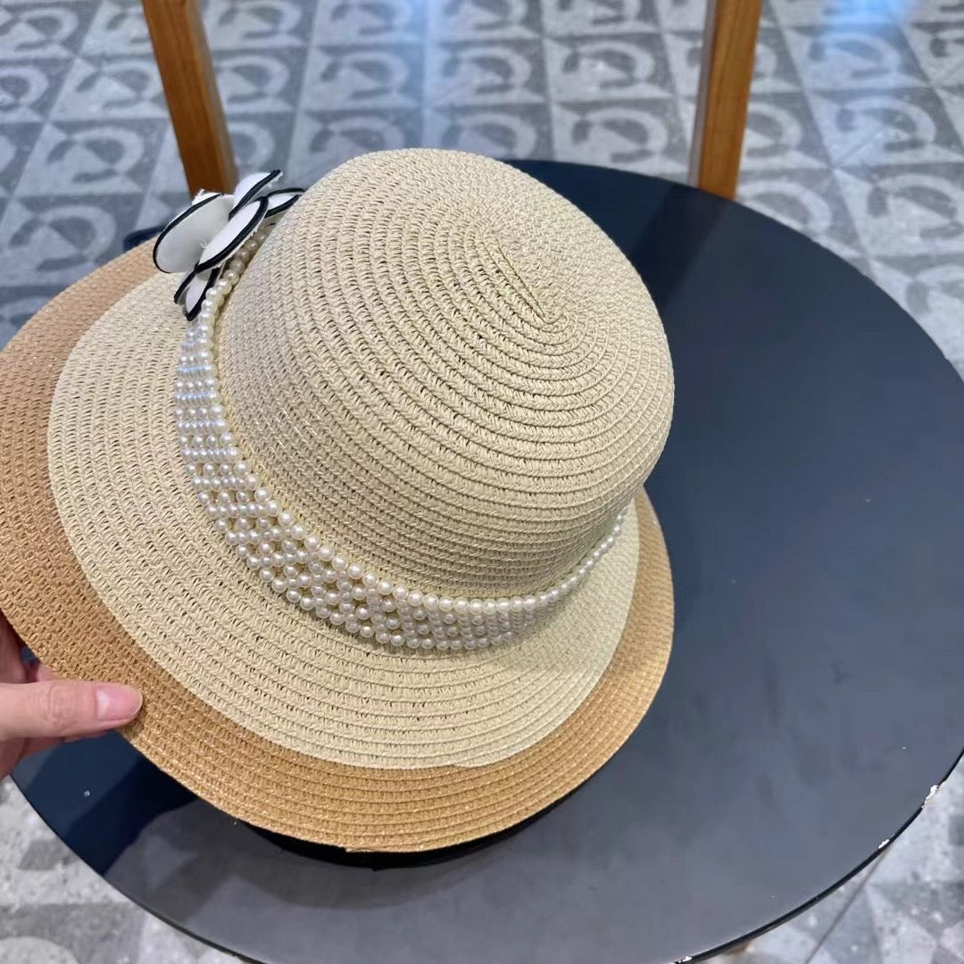 STRAW BUCKET HAT WINDSOR GREIGE WITH PEARLS 672763
