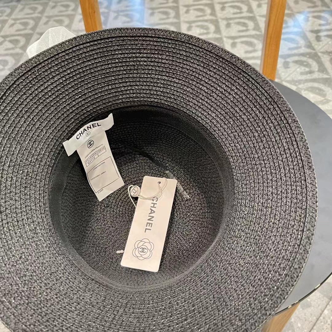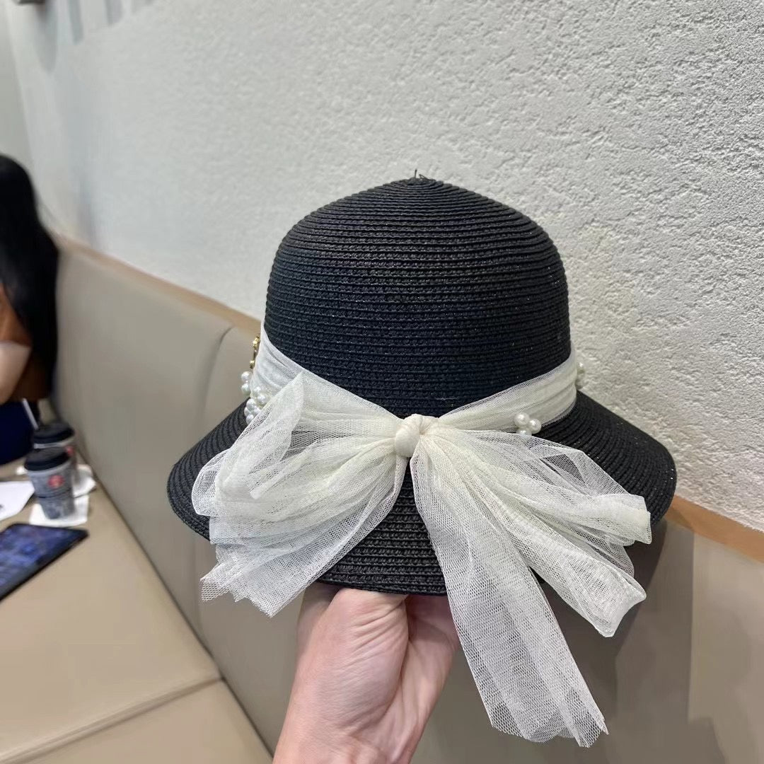 STRAW HAT BOW WITH PEARL BLACK 672699