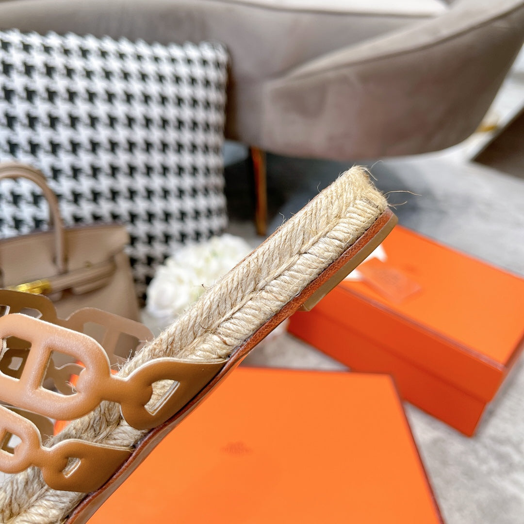 STRAW SOLE SLIPPERS TAWNY LAMBSKIN